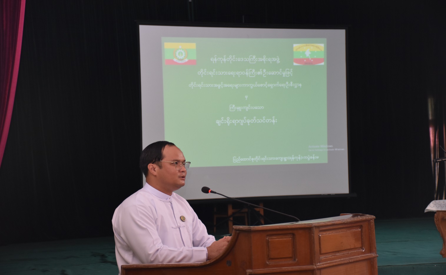ရန်ကုန်တိုင်းဒေသကြီးအစိုးရအဖွဲ့၊ တိုင်းရင်းသားရေးရာဝန်ကြီး ဦးစောဂျက်ကော့ထူး၏ ဦးဆောင်မှုဖြင့် တိုင်းရင်းသားအခွင့်အရေးများကာကွယ်စောင့်ရှောက်ရေးဦးစီးဌာန၊ ရန်ကုန်တိုင်းဒေသကြီး၊ ညွှန်ကြားရေးမှူးရုံးမှ ကြီးမှူး၍ “ရိုးရာဂျက်ခုတ်ရက်ကန်းသင်တန်းဖွင့်ပွဲ” အခမ်းအနားကို (၂၀-၃-၂၀၂၃) ရက်နေ့ နံနက် (၀၉:၃၀) နာရီအချိန်တွင် ရန်ကုန်တိုင်းဒေသကြီး၊ ပြည်ထောင်စု တိုင်းရင်းသားကျေးရွာ၊ ကပွဲခန်းမ၌ ကျင်းပပြုလုပ်ခဲ့ပါသည်။ အခမ်းအနားသို့ ရန်ကုန်တိုင်းဒေသကြီးအစိုးရအဖွဲ့၊ တိုင်းရင်းသားလူမျိုးများရေးရာဝန်ကြီး ဦးစောဂျက်ကော့ထူး၊ ဗိုလ်တထောင်ခရိုင်၊ အုပ်ချုပ်ရေးမှူး ဦးအောင်လွင်၊ တိုင်းရင်းသားစာပေနှင့်ယဉ်ကျေးမှုဦးစီးဌာနမှ ညွှန်ကြားရေးမှူး ဦးပြေဟိန်းနိုင်၊ ပြည်ထောင်စုတိုင်းရင်းသားကျေးရွာ(ရန်ကုန်)မှ ညွှန်ကြားရေးမှူး ဦးမျိုးဝင်း၊ ဒုတိယညွှန်ကြားရေးမှူး ဦးစန်းလှိုင်၊ မြို့နယ်ရဲတပ်ဖွဲ့မှူး ရဲမှူးညွန့်ဝင်း၊ တိုင်းရင်းသား အခွင့်အရေးများကာကွယ်စောင့်ရှောက်ရေးဦးစီးဌာနမှ ဒုတိယညွှန်ကြားရေးမှူး ဒေါ်ဖြူဖြူဝင်း၊ မြို့နယ်စီမံအုပ်ချုပ်ရေးအဖွဲ့ဥက္ကဋ္ဌ ဦးကျော်သူ၊ မြို့နယ်စီမံအုပ်ချုပ်ရေးအဖွဲ့၊ အဖွဲ့ဝင်(၁) ဗိုလ်မှူး သူရိန်ဇော်၊ မြို့နယ်စီမံအုပ်ချုပ်ရေးအဖွဲ့၊ အဖွဲ့ဝင်(၂) ဦးညွန့်ဝေ၊ ရန်ကုန်တိုင်းဒေသကြီးတိုင်းရင်း သားစာပေနှင့်ယဉ်ကျေးမှုအသင်းတို့မှ ဥက္ကဋ္ဌနှင့် တာဝန်ရှိသူများ၊ သင်တန်းဆရာနှင့်နည်းပြများ၊ သင်တန်းသားများ၊ ဒေသခံတိုင်းရင်းသားများ အပါအဝင် စုစုပေါင်း(၉၀)ဦး တက်ရောက်ခဲ့ကြပါသည်။