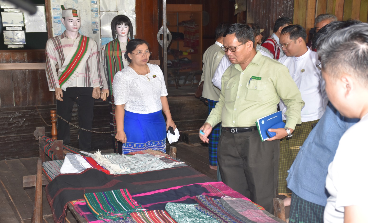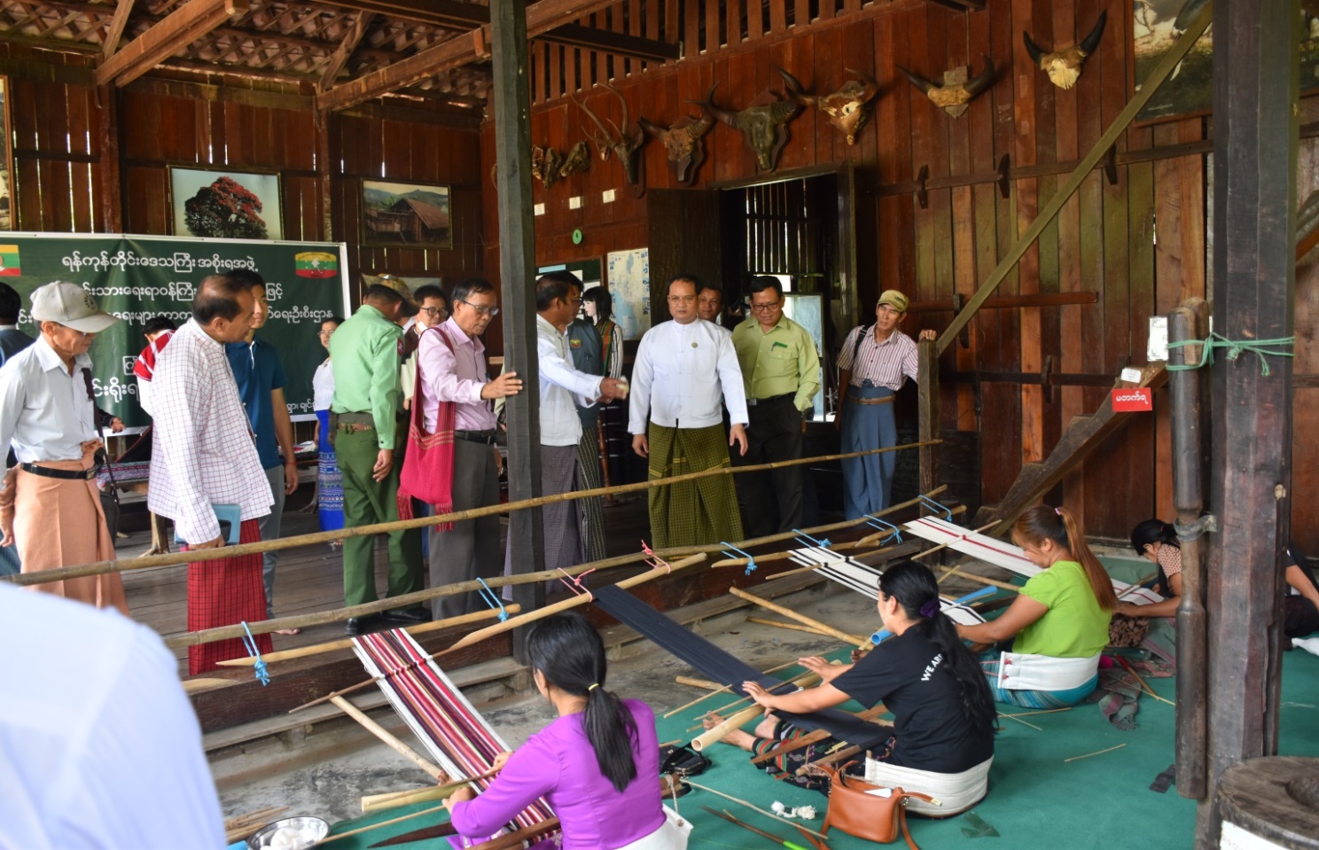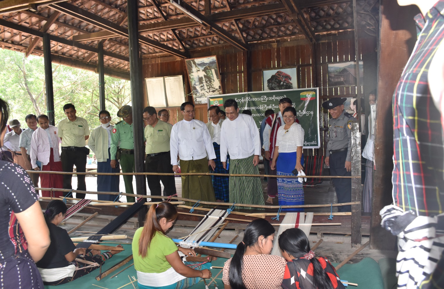 ဆက်လက်၍ တိုင်းရင်းသားအခွင့်အရေးများကာကွယ်စောင့်ရှောက်ရေးဦးစီးဌာနမှ ဒုတိယ ညွှန်ကြားရေးမှူးဒေါ်ဖြူဖြူဝင်းက ဝန်ကြီးဌာနအကြောင်းမိတ်ဆက်ခြင်း၊ တိုင်းရင်းသား အခွင့်အရေးများကာကွယ်စောင့်ရှောက်ရေးဦးစီးဌာန၏ လုပ်ငန်းတာဝန်များ၊ ရိုးရာဂျက်ခုတ်ရက်ကန်းသင်တန်း ဖွင့်လှစ်ပေးရခြင်း၏ ရည်ရွယ်ချက်တို့ကို ရှင်းလင်းပြောကြားခဲ့ပြီးနောက် အခမ်းအနားသို့ တက်ရောက်လာကြသူများနှင့် စုပေါင်းမှတ်တမ်းတင်ဓါတ်ပုံများ ရိုက်ကူးခဲ့ကြပါသည်။ ထို့နောက် ရန်ကုန်တိုင်းဒေသကြီးအစိုးရအဖွဲ့၊ တိုင်းရင်းသားရေးရာဝန်ကြီးနှင့်အဖွဲ့သည် ချင်းရိုးရာအိမ်၌ ပြသထားသည့် ရက်ကန်းစင်နှင့် လိုအပ်သည့်ပစ္စည်းတို့ကို ကြည့်ရှုပြီး သင်တန်းသားများနှင့် ရင်းရင်းနှီးနှီးတွေ့ဆုံကာ လိုအပ်သည်များကို မှာကြားခဲ့ပါသည်။