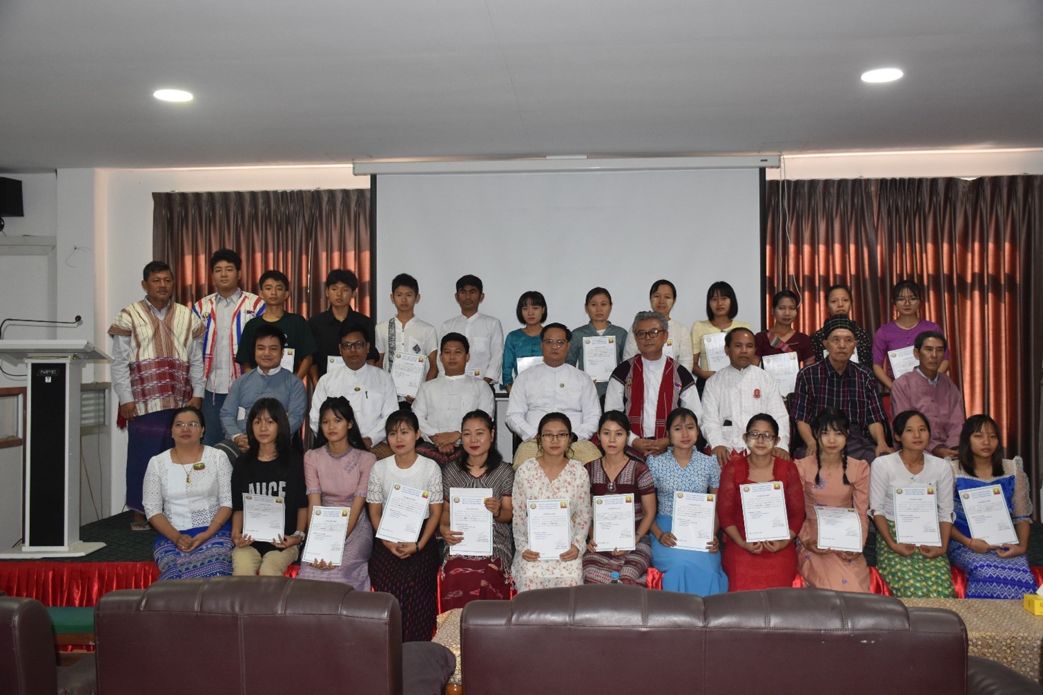 ထို့နောက် တိုင်းရင်းသားရေးရာဝန်ကြီး ဦးစောဂျက်ကော့ထူးက သင်တန်းနည်းပြ ဦးထွန်းတိမ်လွှာစိုးအား နည်းပြဂုဏ်ပြုငွေကို လည်းကောင်း၊ သင်တန်းသူ/ သင်တန်းသားများ ကိုယ်စား သင်တန်းသူတစ်ဦးအား သင်တန်းဆင်း လက်မှတ်များအား လည်းကောင်း ပေးအပ်ခဲ့ပါသည်။