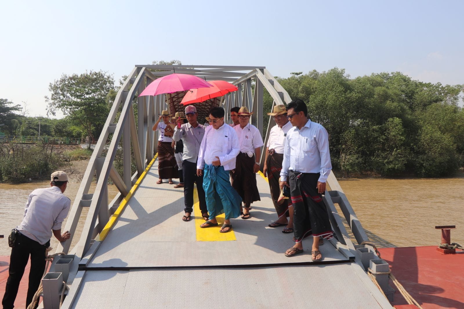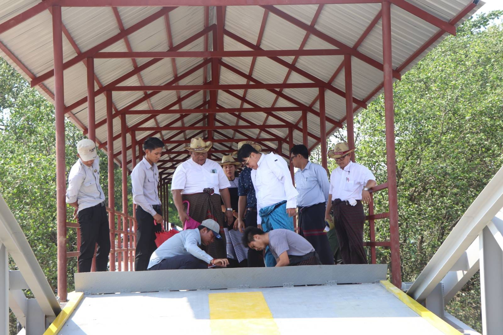 တိုင်းရင်းသားလူမျိုးများရေးရာဝန်ကြီးဌာန၊ ဒုတိယဝန်ကြီး ဦးဇော်အေးမောင် ပြည်ထောင်စုတိုင်းရင်းသားကျေးရွာ(ရန်ကုန်)ရှိ ဆိပ်ခံဗောတံတား တည်ဆောက်ပြီးစီးမှုကို ကြည့်ရှုစစ်ဆေးခြင်း ဧပြီလ(၈)ရက်၊ ရန်ကုန်