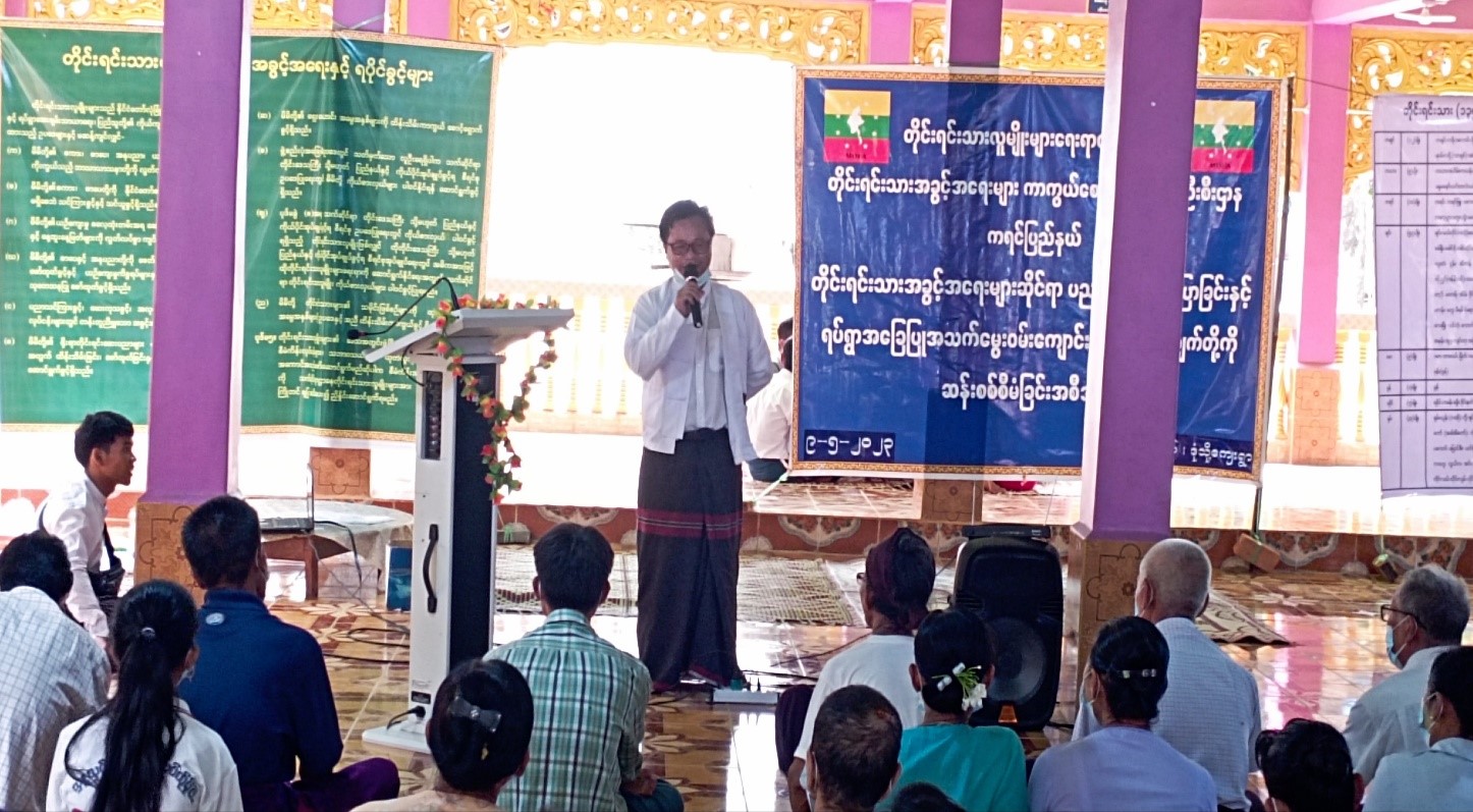 “တိုင်းရင်းသားအခွင့်အရေးဆိုင်ရာ ပညာပေးဟောပြောခြင်းနှင့် ရပ်ရွာအခြေပြုအသက်မွေးဝမ်းကျောင်း လိုအပ်ချက်တို့ကို ဆန်းစစ်စီမံခြင်း အစီအစဉ်” ကရင်ပြည်နယ်၊ ဘားအံမြို့တွင် ကျင်းပပြုလုပ် ကရင်၊ မေ ၉
