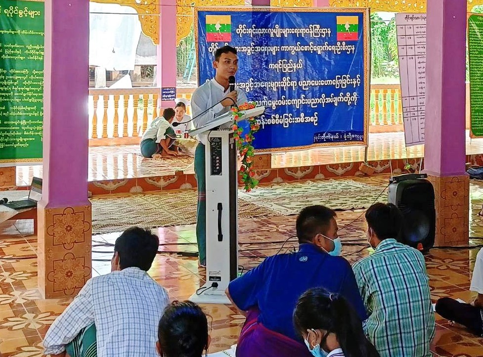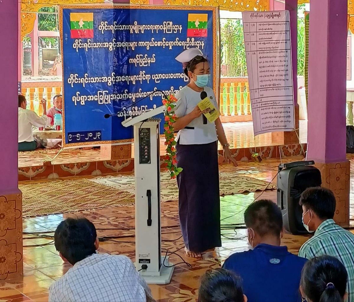 ထို့နောက် ကျေးလက်ကျန်းမားရေးဌာနခွဲမှ ဆရာမ ဒေါ်နန်းနှင်းသွယ်တာ က COVID – 19 ရောဂါကာကွယ်တားဆီးရေးဆိုင်ရာ ကိစ္စရပ်များ၊ သွေးလွန်တုတ်ကွေးရောဂါ ကြိုတင်တားဆီး ကာကွယ်ခြင်းဆိုင်ရာ ကိစ္စရပ်များကိုလည်းကောင်း၊ တိုင်းရင်းသားအခွင့်အရေးများကာကွယ် စောင့်ရှောက်ရေးဦးစီးဌာန၊ ကရင်ပြည်နယ်၊ ညွှန်ကြားရေးမှူးရုံးမှ အငယ်တန်းစာရေး ဦးအောင်ဖြိုးသော် က အမုန်းစကားနှင့်အကြမ်းဖက်လှုံ့ဆော်မှုကို တားဆီးခြင်းဆိုင်ရာ အသိပညာ ပေးကိစ္စရပ်များနှင့် ရပ်ရွာအခြေပြု အသက်မွေးဝမ်းကျောင်းပညာလိုအပ်ချက်တို့ကို ဆန်းစစ်စီမံခြင်း စစ်တမ်းကောက်ယူရခြင်း ရည်ရွယ်ချက်နှင့် စစ်တမ်းဖြေဆိုပုံ မေးခွန်းများကို ရှင်းလင်းပြောကြား ခဲ့ပါသည်။