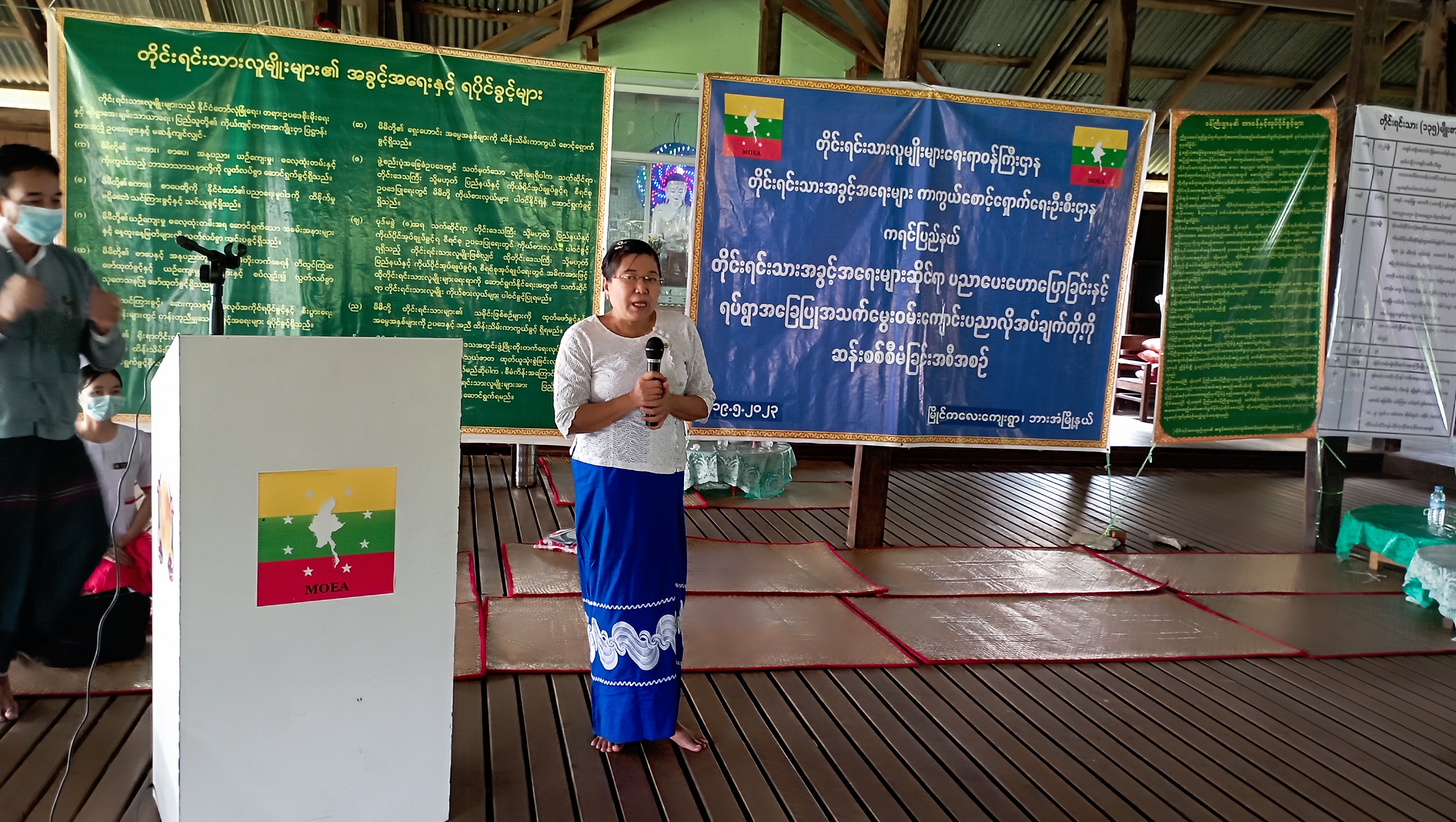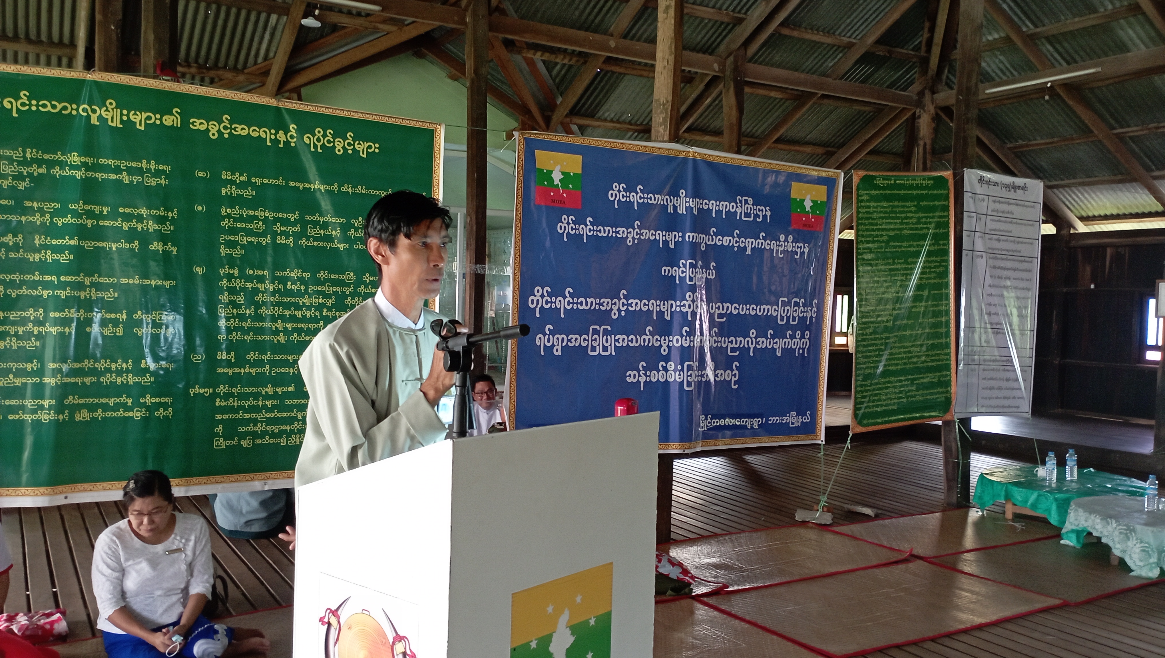 အခမ်းအနားတွင် ကရင်ပြည်နယ် တိုင်းရင်းသားရေးရာဝန်ကြီး ဦးစန်းကိုက အဖွင့်အမှာ စကားပြောကြားခဲ့ပြီး တိုင်းရင်းသားအခွင့်အရေးများကာကွယ်စောင့်ရှောက်ရေးဦးစီးဌာန၊ ကရင်ပြည်နယ်၊ ညွှန်ကြားရေးမှူးရုံးမှ ဒုတိယညွှန်ကြားရေးမှူး၊ ဦးကျော်စိုးက တိုင်းရင်းသားလူမျိုးများ၏ အခွင့်အရေးကာကွယ်စောင့်ရှောက်သည့် ဥပဒေ၊ နည်းဥပဒေများနှင့် ဝန်ကြီးဌာန၏ ရှေ့လုပ်ငန်းစဉ် များအကြောင်းကို ရှင်းလင်းပြောကြားခဲ့ပါသည်။