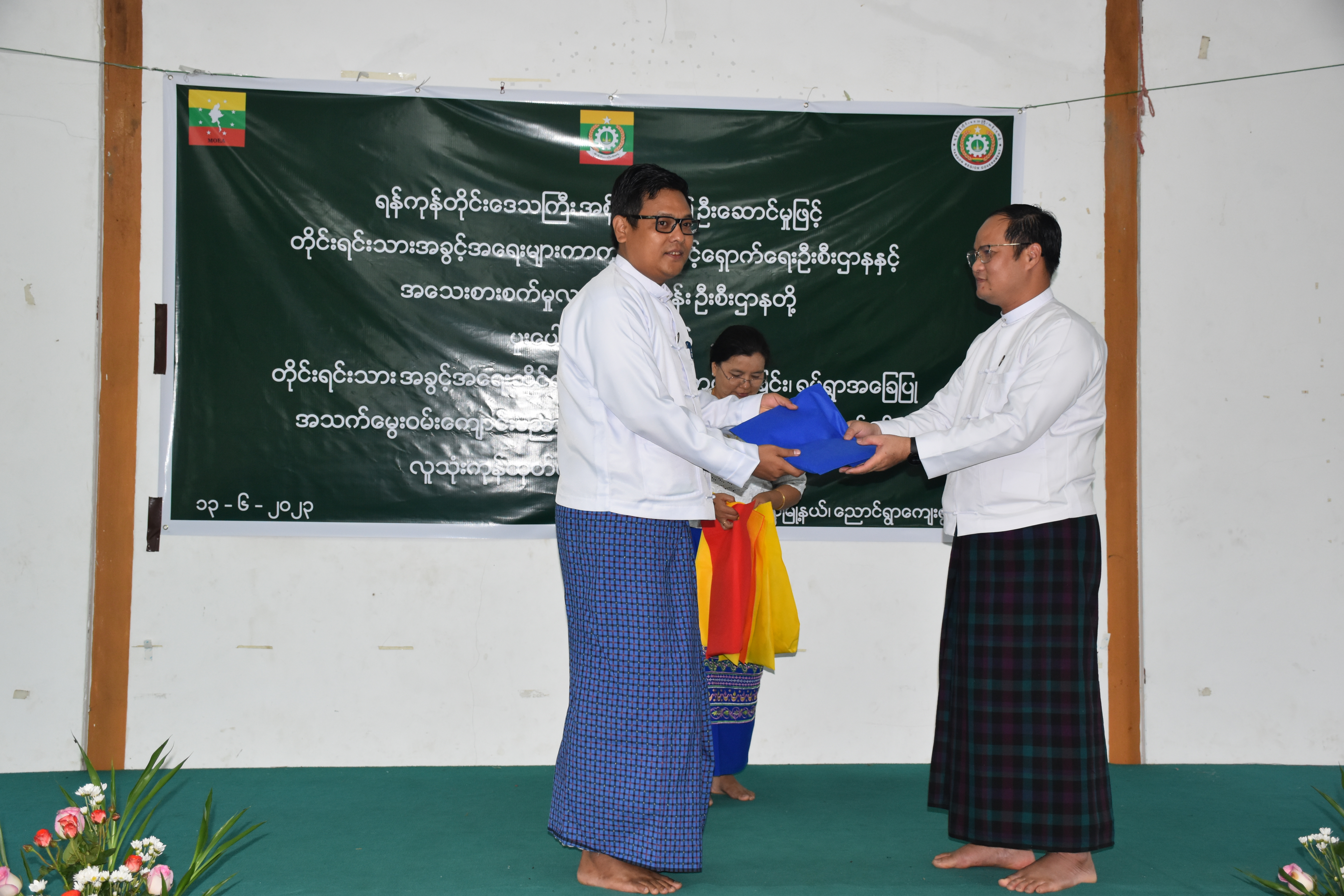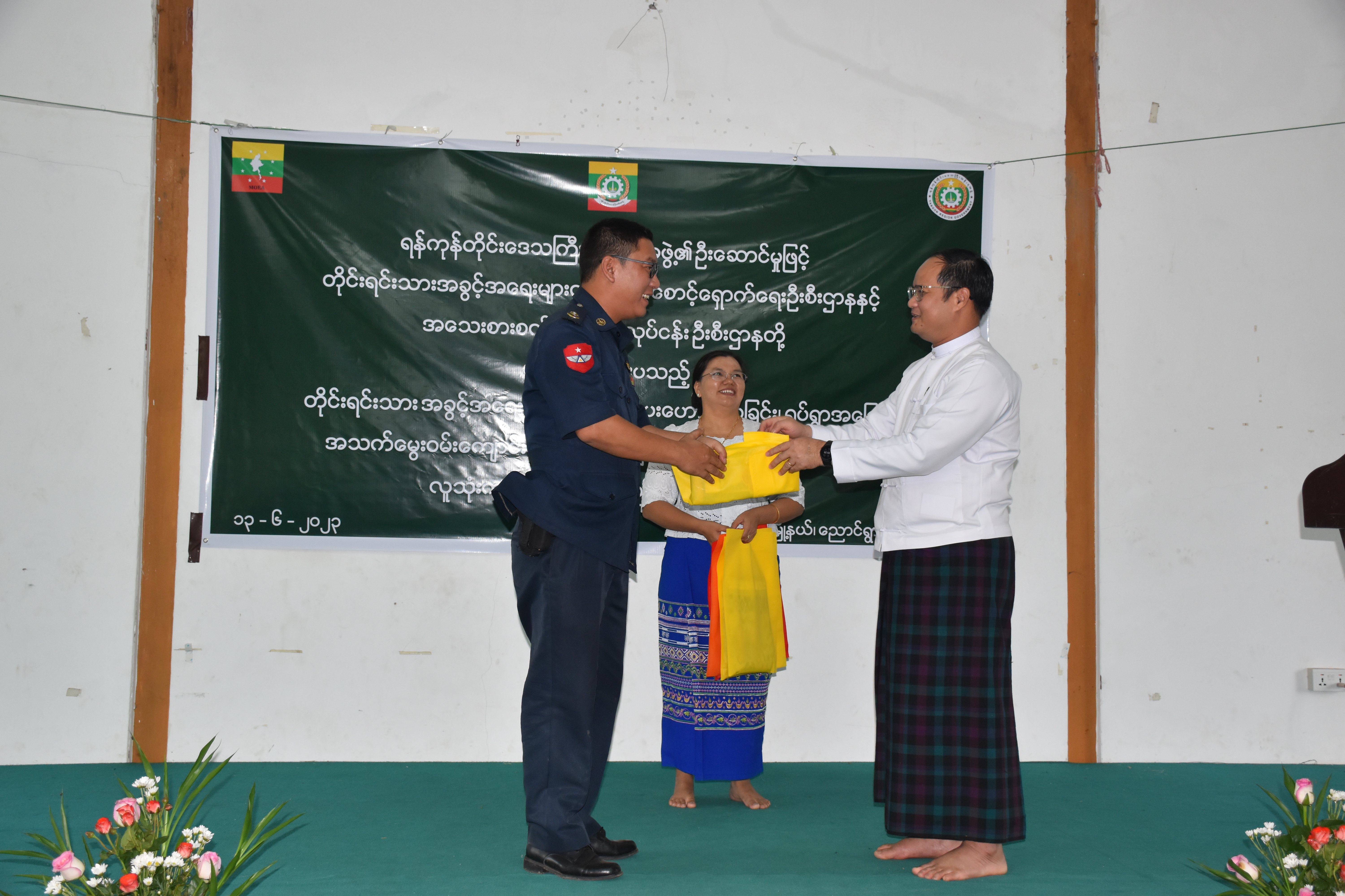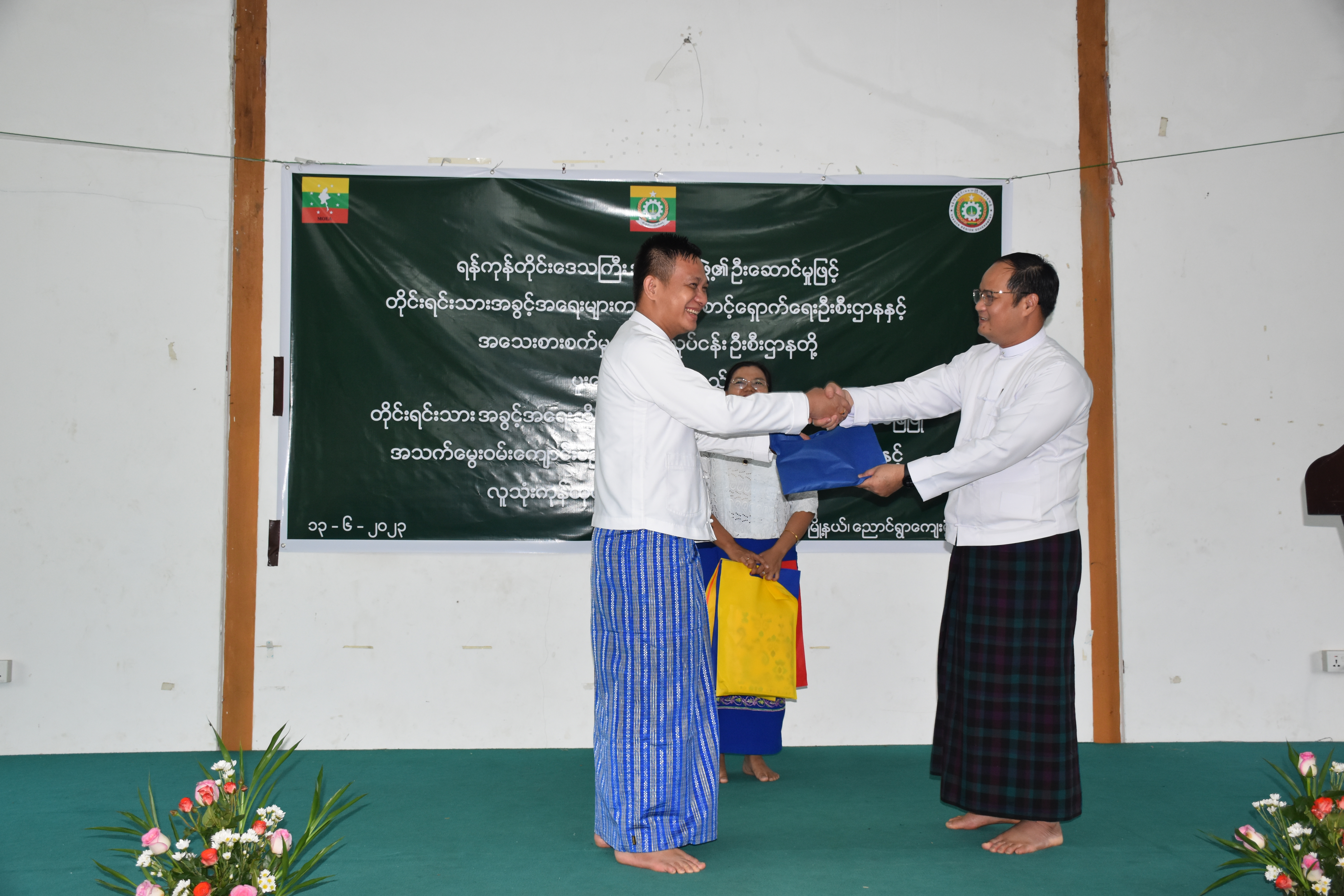 ရန်ကုန်တိုင်းဒေသကြီးအစိုးရအဖွဲ့၊ တိုင်းရင်းသားရေးရာဝန်ကြီး၏ ဦးဆောင်မှုဖြင့် တိုင်းရင်းသားအခွင့်အရေးများကာကွယ်စောင့်ရှောက်ရေးဦးစီးဌာန၊ ရန်ကုန်တိုင်းဒေသကြီး၊ ညွှန်ကြားရေးမှူးရုံးမှ ကြီးမှူးကျင်းပသော “တိုင်းရင်းသားအခွင့်အရေးဆိုင်ရာအသိပညာပေးဟောပြောခြင်းနှင့် ရပ်ရွာအခြေပြုအသက်မွေးဝမ်းကျောင်းပညာလိုအပ်ချက်တို့ကို ဆန်းစစ်စီမံခြင်း အစီအစဉ်” နှင့် “ဆပ်ပြာရည်၊ ခေါင်းလျှော်ရည်၊ ဆပ်ပြာခဲ၊ လက်သန့်ဆေးရည် လူသုံးကုန်ထုတ်လုပ်မှုနည်း ပညာသင်တန်းဖွင့်ပွဲအခမ်းအနား” ကို (၁၃-၆-၂၀၂၃) ရက်နေ့တွင် ရန်ကုန်တိုင်းဒေသကြီး၊ မှော်ဘီမြို့နယ်၊ ညောင်ရွာကျေးရွာ၊ မင်္ဂလာခန်းမ၌ ကျင်းပပြုလုပ်ခဲ့ပါသည်။