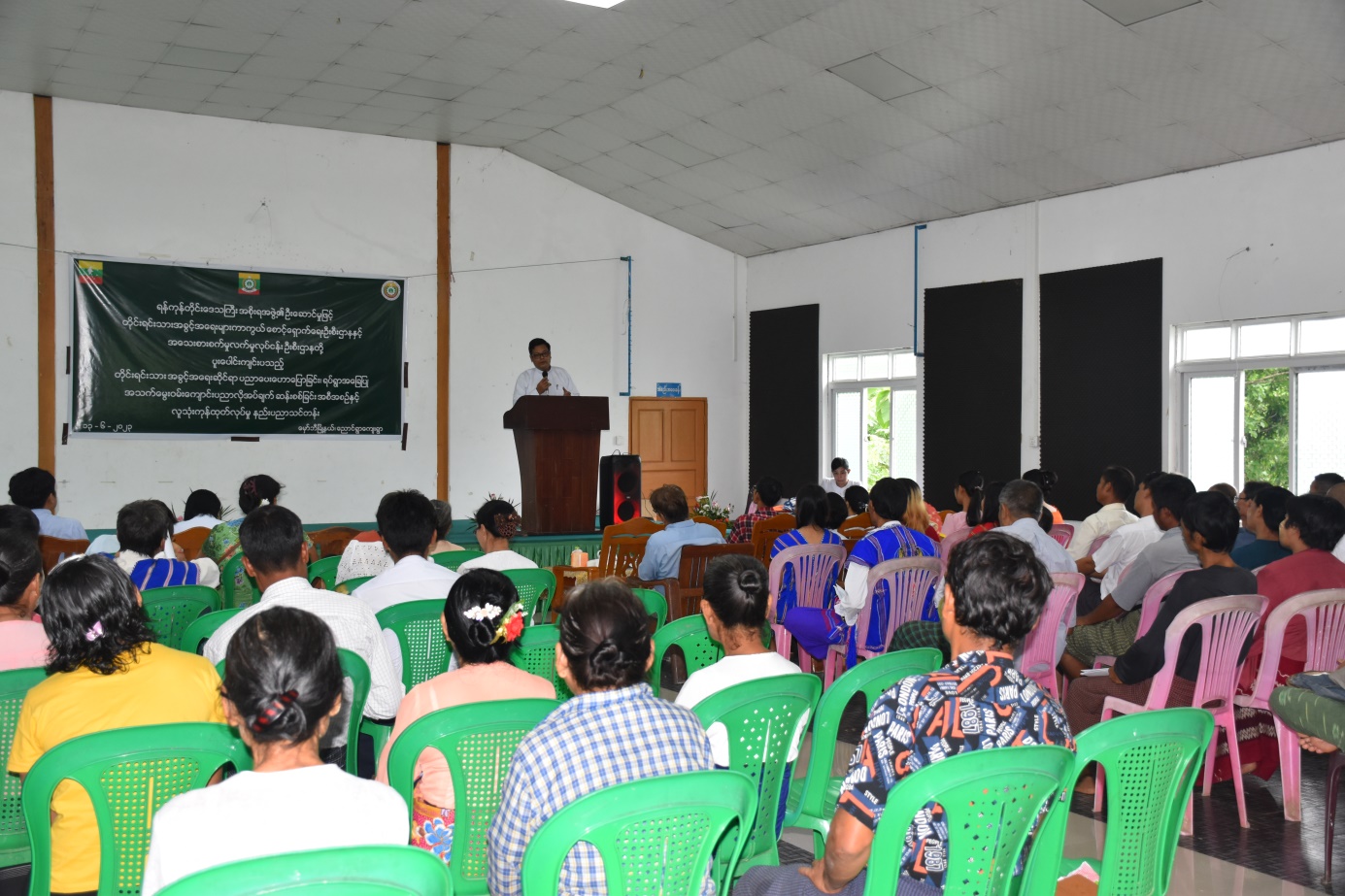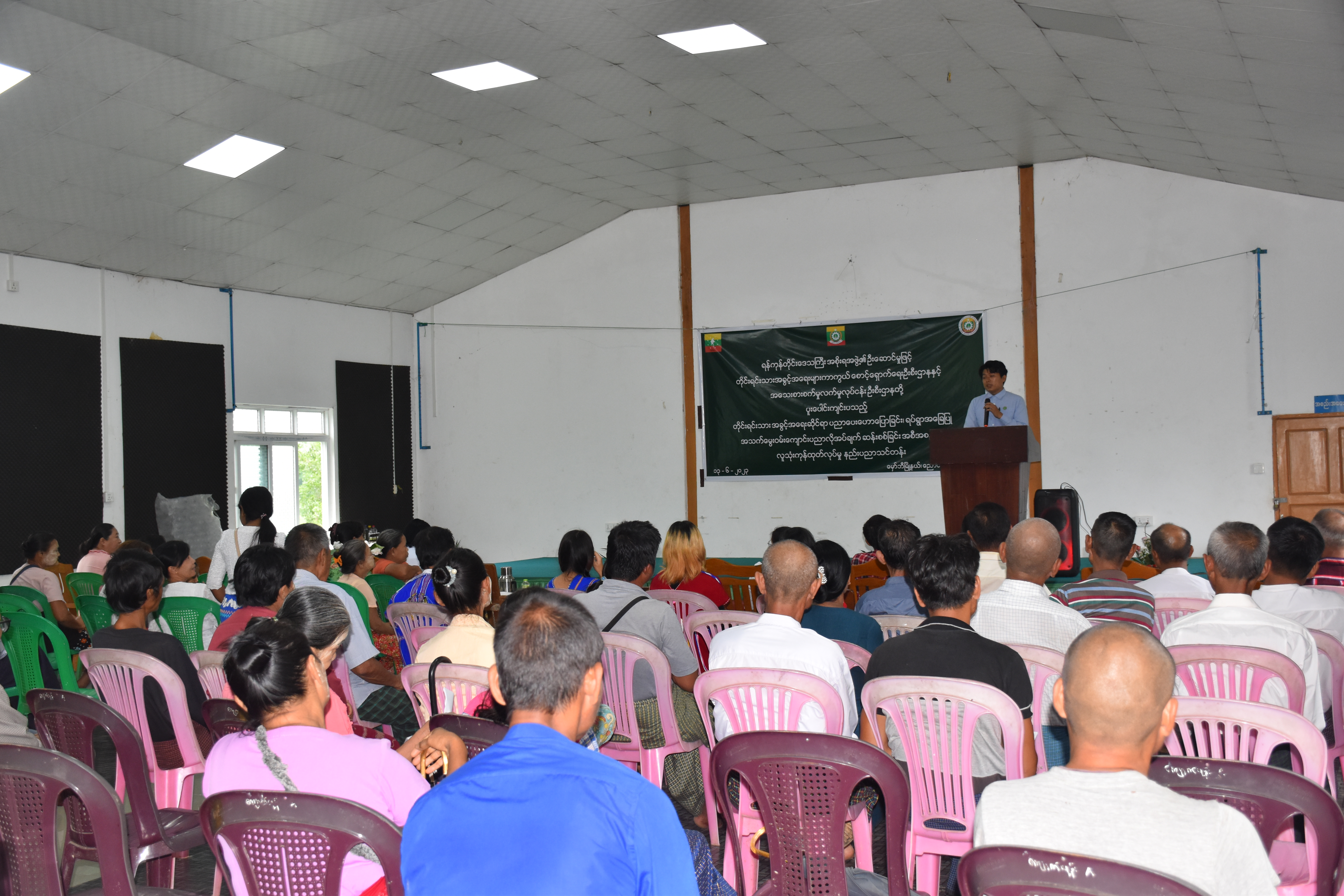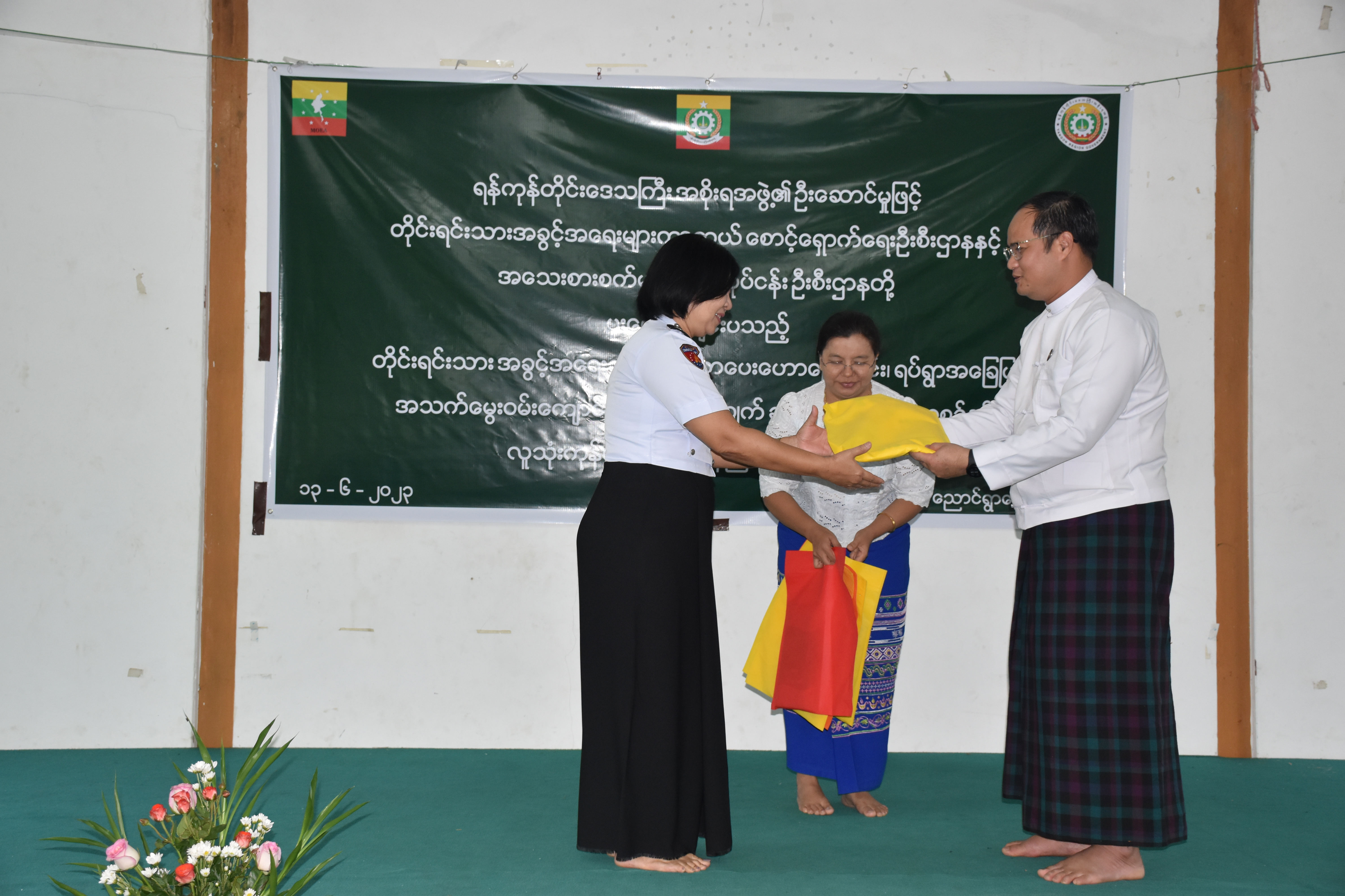 ရန်ကုန်တိုင်းဒေသကြီးအစိုးရအဖွဲ့၊ တိုင်းရင်းသားရေးရာဝန်ကြီး၏ ဦးဆောင်မှုဖြင့် တိုင်းရင်းသားအခွင့်အရေးများကာကွယ်စောင့်ရှောက်ရေးဦးစီးဌာန၊ ရန်ကုန်တိုင်းဒေသကြီး၊ ညွှန်ကြားရေးမှူးရုံးမှ ကြီးမှူးကျင်းပသော “တိုင်းရင်းသားအခွင့်အရေးဆိုင်ရာအသိပညာပေးဟောပြောခြင်းနှင့် ရပ်ရွာအခြေပြုအသက်မွေးဝမ်းကျောင်းပညာလိုအပ်ချက်တို့ကို ဆန်းစစ်စီမံခြင်း အစီအစဉ်” နှင့် “ဆပ်ပြာရည်၊ ခေါင်းလျှော်ရည်၊ ဆပ်ပြာခဲ၊ လက်သန့်ဆေးရည် လူသုံးကုန်ထုတ်လုပ်မှုနည်း ပညာသင်တန်းဖွင့်ပွဲအခမ်းအနား” ကို (၁၃-၆-၂၀၂၃) ရက်နေ့တွင် ရန်ကုန်တိုင်းဒေသကြီး၊ မှော်ဘီမြို့နယ်၊ ညောင်ရွာကျေးရွာ၊ မင်္ဂလာခန်းမ၌ ကျင်းပပြုလုပ်ခဲ့ပါသည်။