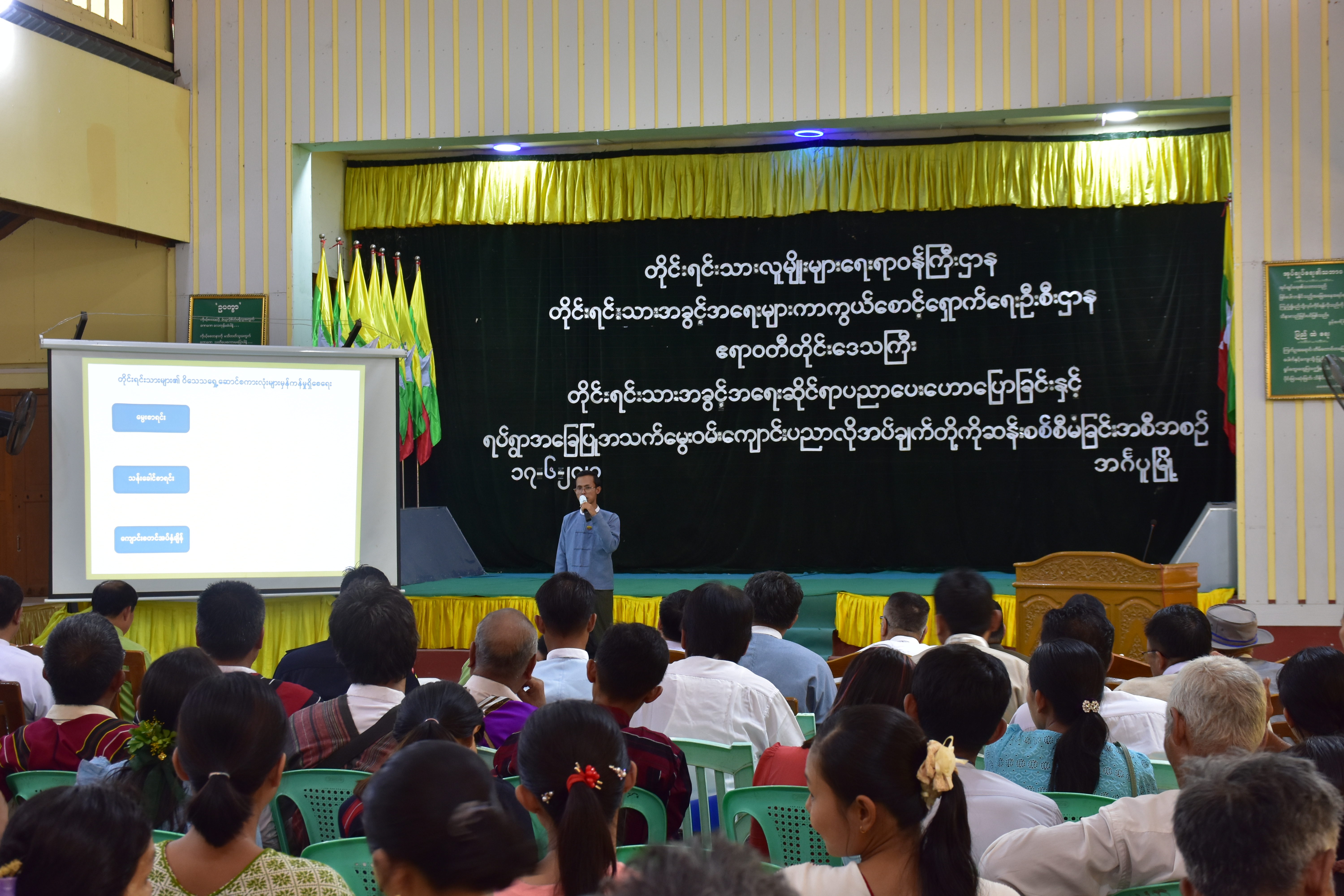 တိုင်းရင်းသားအခွင့်အရေးဆိုင်ရာ အသိပညာပေးဟောပြောခြင်းနှင့် ရပ်ရွာအခြေပြုအသက်မွေးဝမ်းကျောင်းပညာ လိုအပ်ချက်တို့ကို ဆန်းစစ်စီမံခြင်းအစီအစဉ်ကို ဧရာဝတီတိုင်းဒေသကြီးတွင် ကျင်းပပြုလုပ် ဧရာဝတီ၊ ဇွန် ၁၇ ရက်