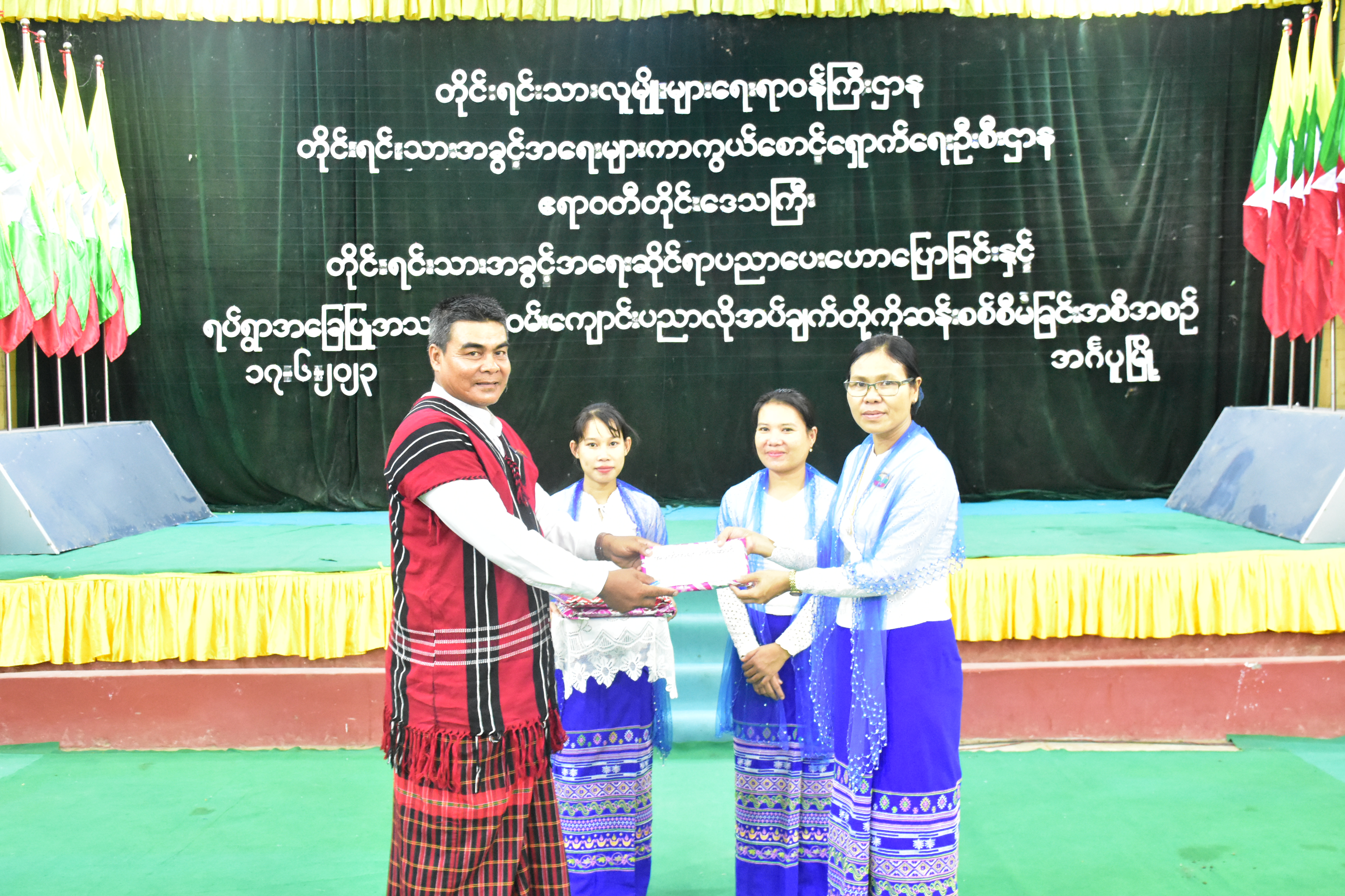 ထို့နောက် ဒုတိယညွှန်ကြားရေးမှူးဦးဆောင်၍ ရပ်ရွာအခြေပြုအသက်မွေးဝမ်းကျောင်းပညာ လိုအပ်မှုဆန်းစစ်ချက်စစ်တမ်းများကို ကောက်ယူခဲ့ရာ ဒေသခံတိုင်းရင်းသား(၇၃)ဦးတို့မှ ဖြေဆိုခဲ့ ကြပြီး တိုင်းရင်းသားအခွင့်အရေးများကာကွယ်စောင့်ရှောက်ရေးဦးစီးဌာနမှ တက်ရောက်လာကြသူများအား တိုင်းရင်းသားအခွင့်အရေးများကာကွယ်စောင့်ရှောက်သည့် ဥပဒေ၊ နည်းဥပဒေ စာအုပ်များ၊ လက်ကမ်းစာစောင်များနှင့် အမှတ်တရလက်ဆောင်ပစ္စည်းများ ပေးအပ်ခဲ့ပြီးနောက် အခမ်းအနားကို ရုပ်သိမ်းခဲ့ပါသည်။ အခမ်းအနားသို့ တိုင်းဒေသကြီး ချင်းစာပေနှင့်ယဉ်ကျေးမှု ကော်မတီဝင်များ၊ မြို့နယ် ကရင်စာပေနှင့်ယဉ်ကျေးမှုကော်မတီဝင်များလည်း တက်ရောက်ခဲ့ကြပါသည်။