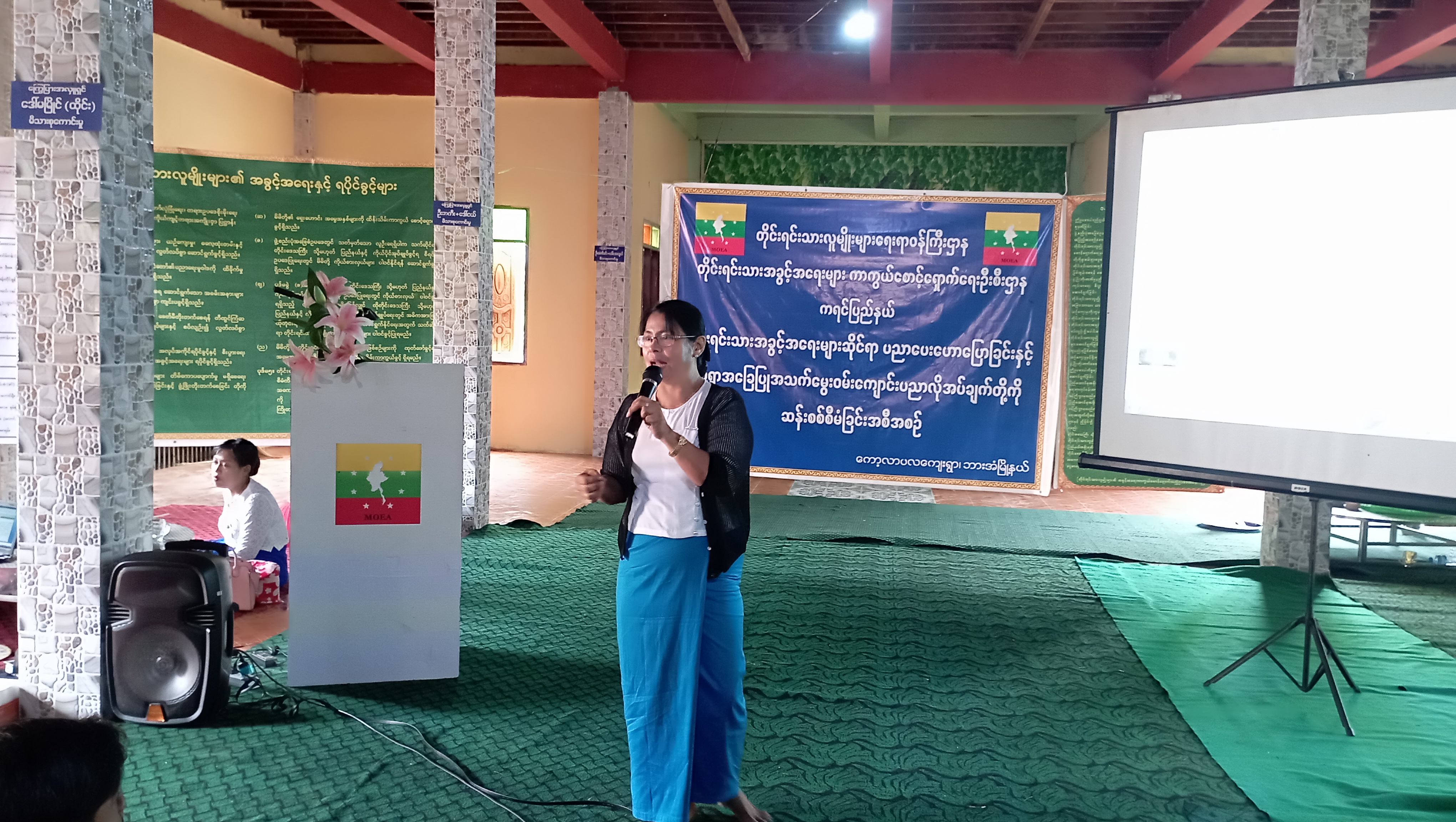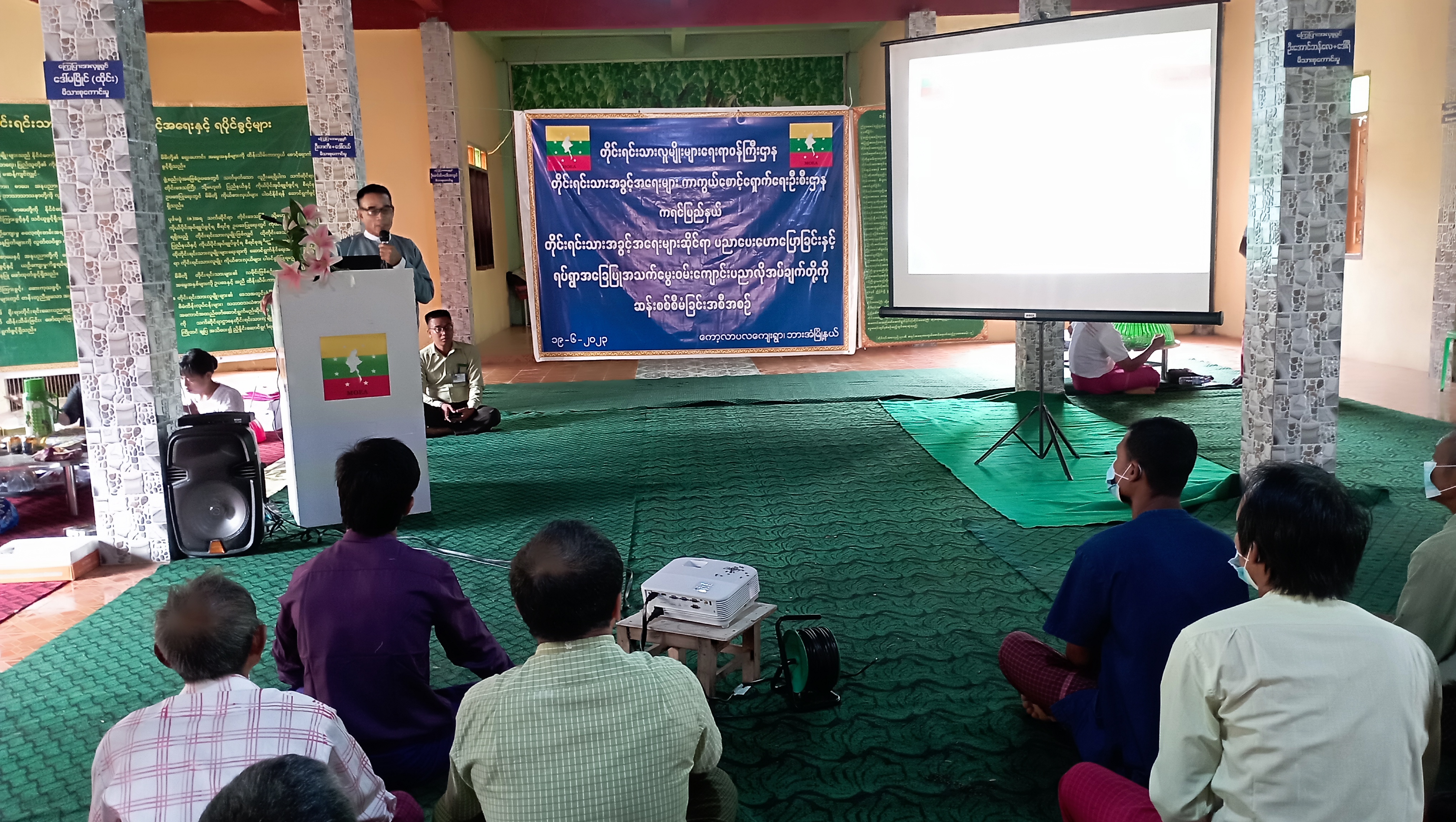ဆက်လက်၍ တိုင်းရင်းသားအခွင့်အရေးများကာကွယ်စောင့်ရှောက်ရေးဦးစီးဌာန၊ ကရင်ပြည်နယ်၊ ညွှန်ကြားရေးမှူးရုံးမှ ဒုတိယဦးစီးမှူး ဦးဟိန်းထက်ကျော်က အမုန်းစကားနှင့် အကြမ်းဖက်မှုဖြစ်စေရန် လှုံ့ဆော်မှုကို တားဆီးခြင်းဆိုင်ရာ အသိပညာပေးခြင်းကိစ္စရပ်များအား ဆွေးနွေးပြောကြားခဲ့ပါသည်။ ထို့နောက် ရပ်ရွာအခြေပြုအသက်မွေးဝမ်းကျောင်းပညာလိုအပ်ချက်တို့ကို စစ်တမ်းကောက်ယူရခြင်း ရည်ရွယ်ချက်နှင့် စစ်တမ်းဖြေဆိုပုံမေးခွန်းများကို ရှင်းလင်း ပြောကြားပြီးနောက် စစ်တမ်းကောက်ယူခဲ့ရာ တက်ရောက်လာကြသော ဒေသခံတိုင်းရင်းသား (၈၀) ဦးတို့မှ ဖြေဆိုခဲ့ကြပါသည်။