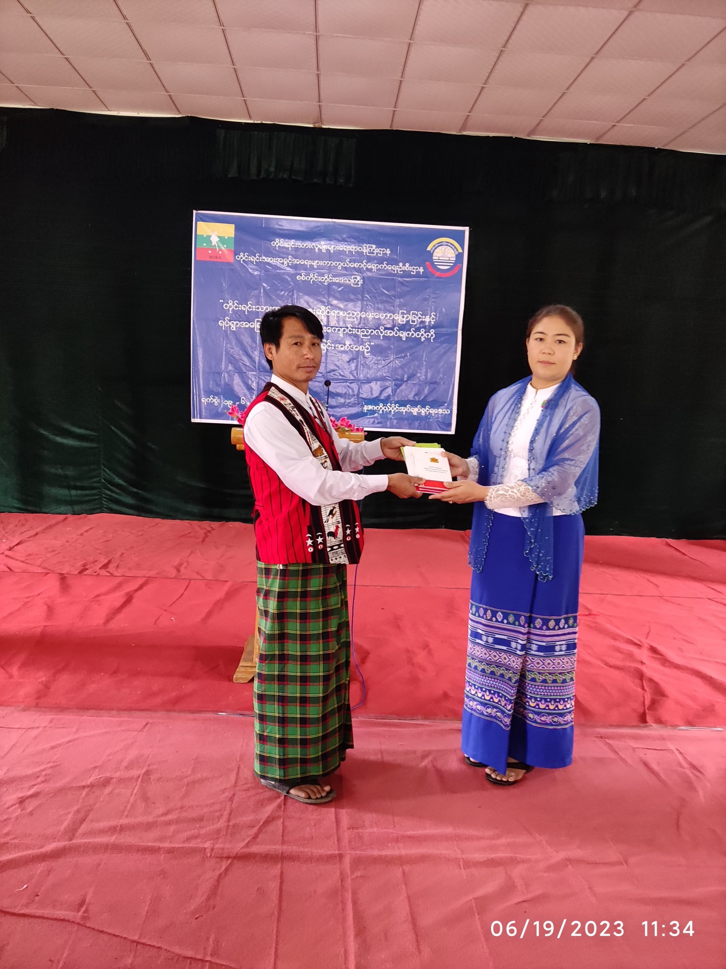 ထို့နောက် တိုင်းရင်းသားအခွင့်အရေးများကာကွယ်စောင့်ရေှာက်ရေးဦးစီးဌာနမှ တက်ရောက်လာကြသော တိုင်းရင်းသားစာပေနှင့်ယဉ်ကျေးမှုအဖွဲ့များသို့ တိုင်းရင်းသားလူမျိုးများ၏ အခွင့်အရေးကာကွယ်စောင့်ရှောက်သည့် ဥပဒေ၊ နည်းဥပဒေစာအုပ်များ၊ လက်ကမ်းစာစောင်များ ပေးအပ်ခဲ့ပြီးနောက် တက်ရောက်လာကြသူများနှင့် စုပေါင်းမှတ်တမ်းတင် ဓါတ်ပုံရိုက်ကူးကာ အခမ်းအနားကို ရုတ်သိမ်းခဲ့ပါသည်။