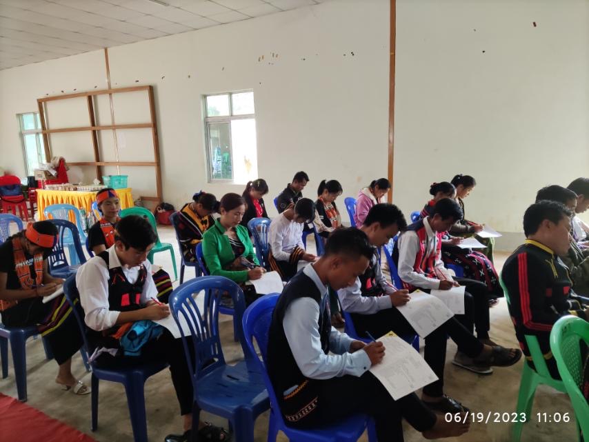 ဆက်လက်၍ တိုင်းရင်းသားအခွင့်အရေးများ ကာကွယ်စောင့်ရှောက်ရေးဦးစီးဌာန၊ စစ်ကိုင်း တိုင်းဒေသကြီး၊ ညွှန်ကြားရေးမှူးရုံးမှ ဒုတိယညွှန်ကြားရေးမှူး ဒေါက်တာဝင့်မြတ်သီက “ရပ်ရွာ အခြေပြုအသက်မွေးဝမ်းကျောင်း ပညာလိုအပ်ချက်တို့ကို ဆန်းစစ်စီမံခြင်း စစ်တမ်းကောက်ယူ ရခြင်းရည်ရွယ်ချက်နှင့် စစ်တမ်းဖြေဆိုပုံမေးခွန်းများ”ကိုရှင်းလင်းပြောကြားခဲ့ပြီးနောက် စစ်တမ်း ကောက်ယူခဲ့ရာ တက်ရောက်လာကြသောဒေသခံတိုင်းရင်းသား (၆၆) ဦးတို့မှ ဖြေဆိုခဲ့ကြပါသည်။