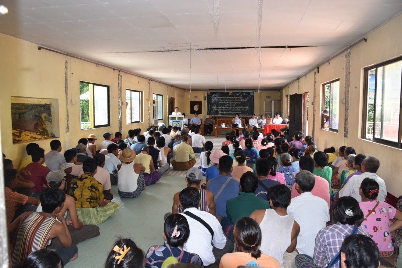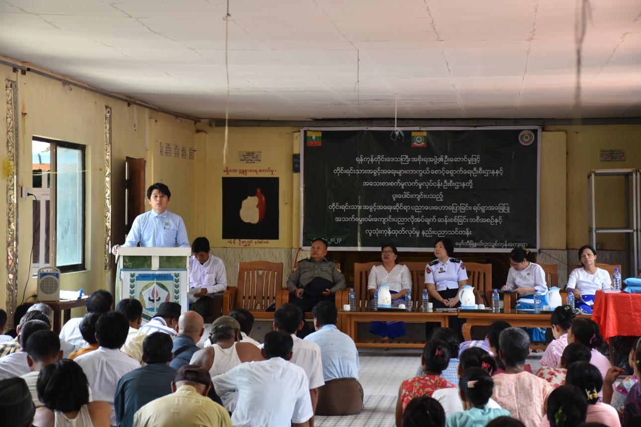 တိုင်းရင်းသားအခွင့်အရေးများကာကွယ်စောင့်ရှောက်ရေးဦးစီးဌာန၊ ရန်ကုန်တိုင်း ဒေသကြီး၊ ညွှန်ကြားရေးမှူးရုံးမှ ကြီးမှူး၍ “တိုင်းရင်းသားအခွင့်အရေးဆိုင်ရာအသိပညာပေး ဟောပြောခြင်းနှင့် ရပ်ရွာအခြေပြုအသက်မွေးဝမ်းကျောင်းပညာလိုအပ်ချက်တို့ကို ဆန်းစစ် စီမံခြင်း အစီအစဉ်”နှင့် “ဆပ်ပြာရည်၊ ခေါင်းလျှော်ရည်၊ ဆပ်ပြာခဲ၊ လက်သန့်ဆေးရည် လူသုံးကုန်ထုတ်လုပ်မှုနည်းပညာသင်တန်းဖွင့်ပွဲအခမ်းအနား”ကို (၂၁-၈-၂၀၂၃) ရက်နေ့ နံနက် (၁၀:၀၀) နာရီအချိန်တွင် ရန်ကုန်တိုင်းဒေသကြီး၊ မှော်ဘီမြို့နယ်၊ ဥသျှစ်ကုန်းကျေးရွာ၊ ဘုရား ကျောင်းခန်းမ၌ ကျင်းပပြုလုပ်ခဲ့ပါသည်။