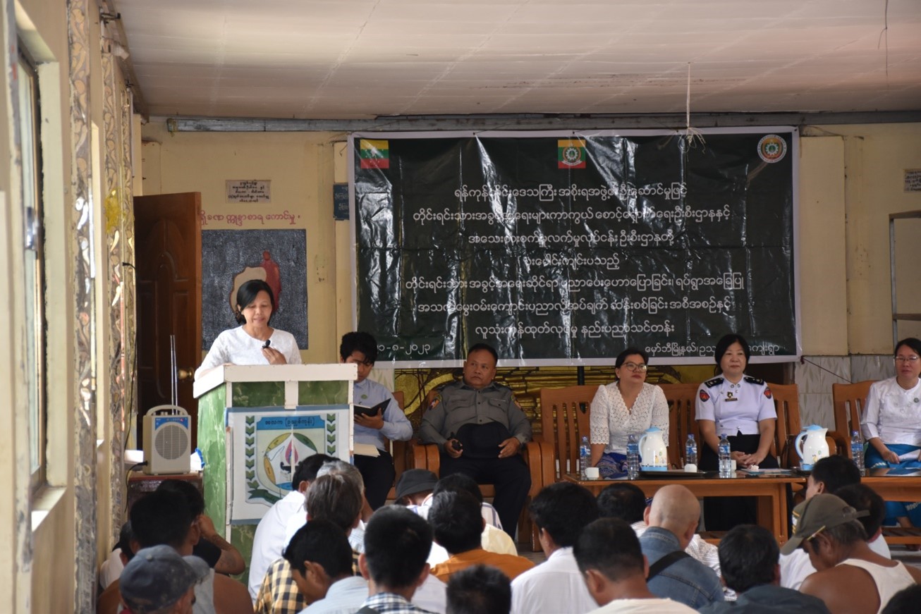 ပထမဦးစွာ တိုင်းရင်းသားအခွင့်အရေးများကာကွယ်စောင့်ရှောက်ရေးဦးစီးဌာန ရန်ကုန် တိုင်းဒေသကြီး ညွှန်ကြားရေးမှူးရုံးမှ ဒုတိယညွှန်ကြားရေးမှူး ဒေါ်ဖြူဖြူဝင်းက တိုင်းရင်းသား လူမျိုးများရေးရာဝန်ကြီးဌာနအကြောင်းမိတ်ဆက်ခြင်း၊ တိုင်းရင်းသားလူမျိုးများ၏ အခွင့်အရေး ကာကွယ်စောင့်ရှောက်သည့် ဥပဒေ၊ နည်းဥပဒေများအကြောင်း၊ တိုင်းရင်းသားအချင်းချင်း အမုန်းစကားနှင့် အကြမ်းဖက်မှုဖြစ်စေရန် လှုံ့ဆော်မှုကို တားဆီးရေးဆိုင်ရာ သိကောင်း စရာများကိုလည်းကောင်း၊ တိုင်းရင်းသားလူမျိုးများ၏ အခွင့်အရေးကာကွယ်စောင့်ရှောက်သည့် ဥပဒေတွင်ပါရှိသည့် တိုင်းရင်းသားလူမျိုးများ၏ အခွင့်အရေးဆိုင်ရာများ၊ စစ်တမ်းများ ကောက်ယူ ရခြင်းရည်ရွယ်ချက်နှင့် တိုင်းရင်းသားဘာသာသင် TA/LT ဆရာများခန့်ထားခြင်းဆိုင်ရာ ကိစ္စများကို ရှင်းလင်းပြောကြားခဲ့ပါသည်။