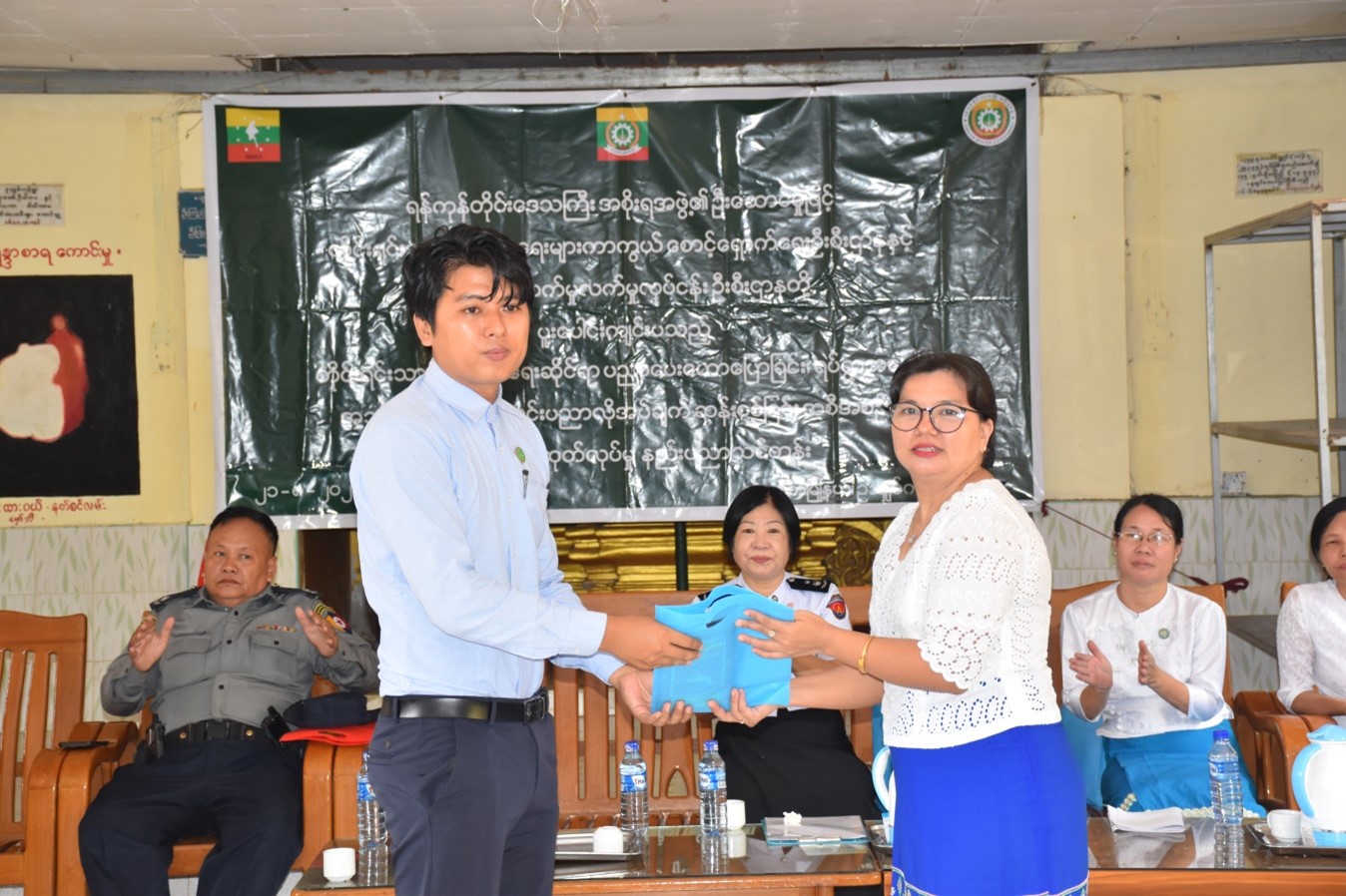ထို့နောက် သမဝါယမဦးစီးဌာနမှ မြို့နယ်ဦးစီးမှူး ဦးကျော်သူစိုးက သမဝါယမ ဦးစီးဌာန၏ လုပ်ငန်းစဉ်များနှင့် သမဝါယမအသင်းချေးငွေအကြောင်း၊ အခြေခံစားသောက်ကုန် ရောင်းချပေးနေမှု အခြေအနေများကိုလည်းကောင်း၊ အသေးစားစက်မှုလက်မှုဦးစီးဌာနမှ ဦးစီးအရာရှိ ဒေါ်စန်းထွေး က အသေးစားစက်မှုလက်မှုဦးစီးဌာန၏ သင်တန်းဖွင့်လှစ်ပေးနေမှုအခြေအနေနှင့် သင်တန်း ဖွင့်လှစ်ရခြင်း၏ ရည်ရွယ်ချက်၊ သင်တန်းတွင် သင်ကြားပေးမည့် အကြောင်းအရာများနှင့် အမျိုးအစားတို့ကိုလည်းကောင်း ရှင်းလင်းပြောကြားခဲ့ပြီးနောက် တက်ရောက်လာကြသူများနှင့် မှတ်တမ်းတင်ဓာတ်ပုံရိုက်ကူးခဲ့ပါသည်။