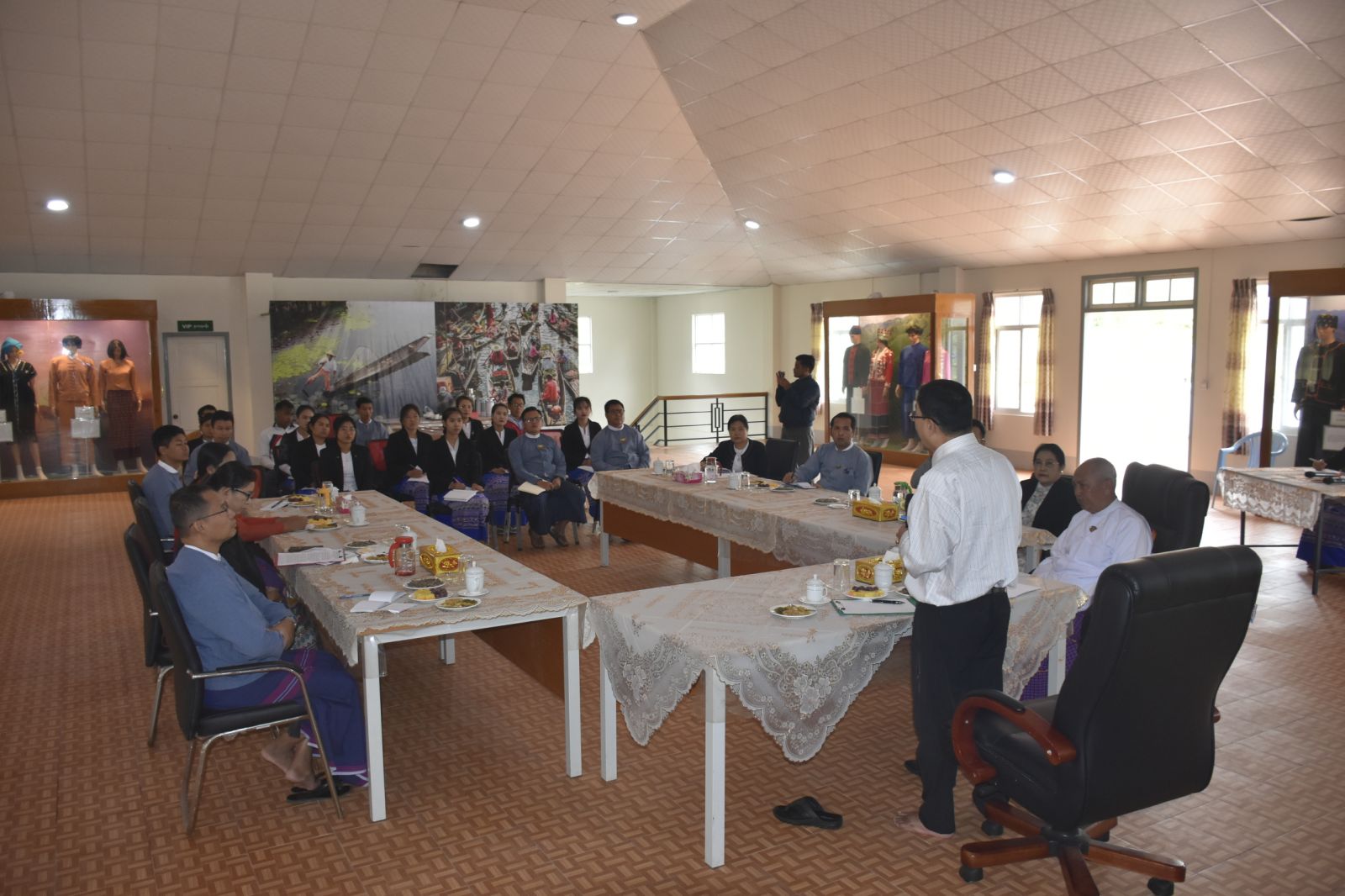ဆက်လက်ပြီး ဩဂုတ်လ(၃၀)ရက်နေ့ နံနက်ပိုင်းတွင် တိုင်းရင်းသားလူမျိုးများရေးရာ ဝန်ကြီးဌာန၊ ဒုတိယဝန်ကြီးနှင့် ရှမ်းပြည်နယ်အစိုးရအဖွဲ့ဝင် တိုင်းရင်းသားရေးရာဝန်ကြီး တို့သည် တိုင်းရင်းသားလူမျိုးများရေးရာဝန်ကြီးဌာန၊ ရှမ်းပြည်နယ်ညွှန်ကြားရေးမှူးရုံးရှိ ဝန်ထမ်းများနှင့်တွေ့ဆုံ၍ လမ်းညွှန်အမှာစကားပြောကြားခဲ့ကြပါသည်။
