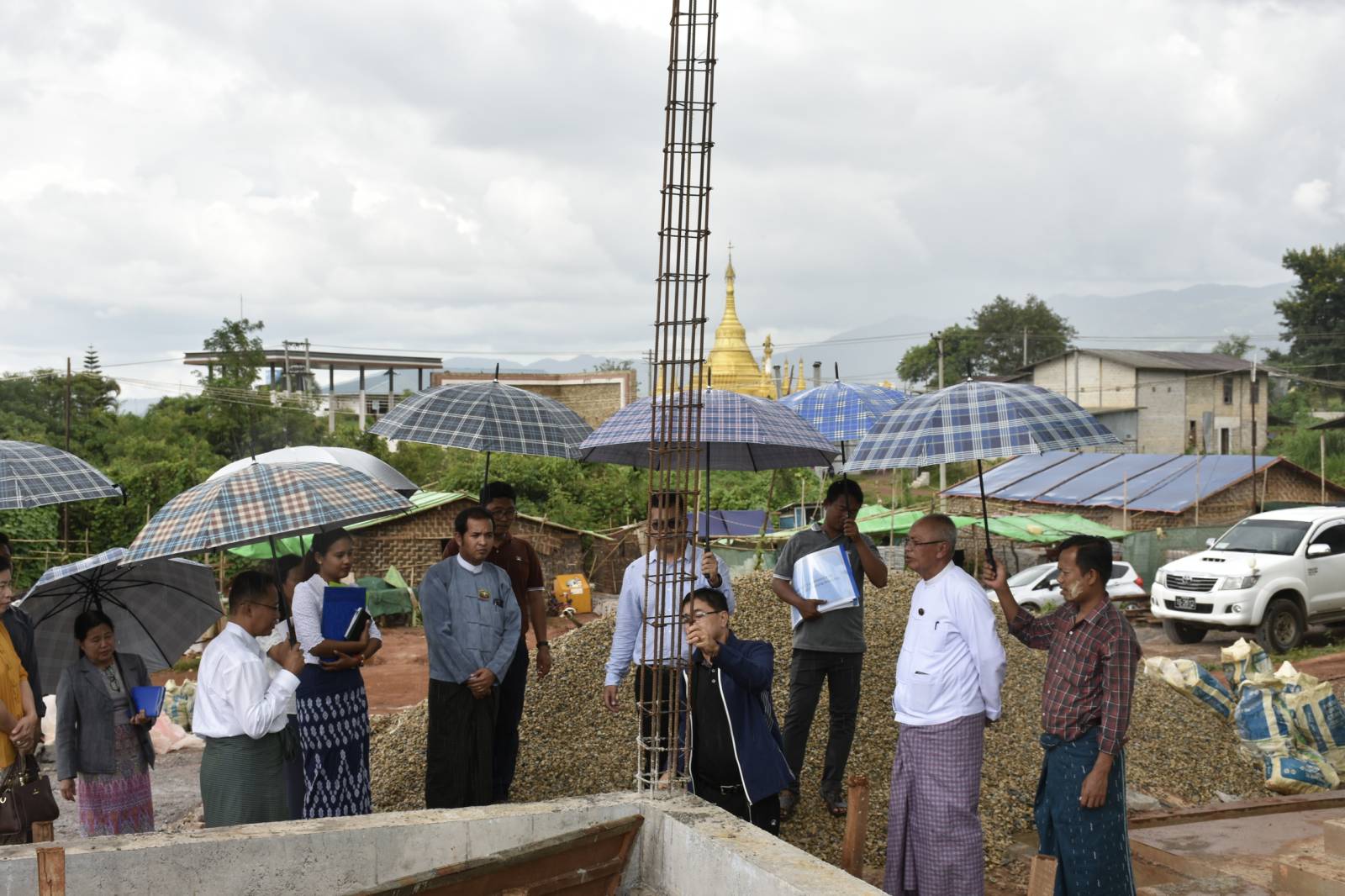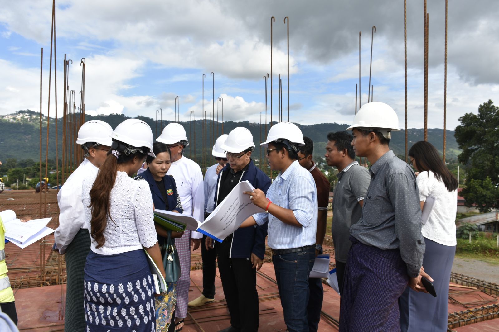 ပထမဦးစွာ ဒုတိယဝန်ကြီးနှင့်အဖွဲ့သည် ဆောင်ရွက်လျက်ရှိသည့် တည်ဆောက်ရေး လုပ်ငန်းဖြစ်သည့် အလုပ်ရုံဆောင်၊ ဝင်းခြံစည်းရိုး၊ ထမင်းစားဆောင်၊ မြေထိန်းနံရံနှင့် ပင်မအဆောက်အဦ ထပ်တိုးဆောင်ရွက်သည့်လုပ်ငန်းများကို လိုက်လံကြည့်ရှုစစ်ဆေးခဲ့ပြီး မြေညီထပ်ရှင်းလင်းဆောင်တွင် တည်ဆောက်ရေးကိုတာဝန်ယူ ဆောင်ရွက်နေသည့် မိုးယံဝင့်ချီ ကုမ္ပဏီလီမိတက်မှ တာဝန်ရှိသူတစ်ဦးက လုပ်ငန်းဆောင်ရွက်ပြီးစီးမှုအခြေအနေများကို လည်းကောင်း၊ ဆောက်လုပ်ရေးဝန်ကြီးဌာန၊ အရည်အသွေးထိန်းချုပ်စိစစ်ရေးအဖွဲ့မှ တာဝန်ရှိသူများမှ တွေ့ရှိသုံးသပ်ချက်များကိုလည်းကောင်း၊ ရှမ်းပြည်နယ်အစိုးရအဖွဲ့ဝင် တိုင်းရင်းသားရေးရာဝန်ကြီးမှ စိစစ်တွေ့ရှိချက်များကိုလည်းကောင်း အသီးသီးရှင်းလင်း တင်ပြ ခဲ့ကြပါသည်။ ရှင်းလင်းတင်ပြချက်များအပေါ် ဒုတိယဝန်ကြီးက သက်မှတ်ကာလအတွင်း စံချိန်စံညွှန်းနှင့်အညီ တည်ဆောက်သွားရန်၊ လျှပ်စစ်မီးများကို တပ်ဆင်သည့်အခါ မီးဘေး အန္တရာယ်ကင်းရှင်းရေးအတွက် အထူးဂရုပြုဆောင်ရွက်သွားရန်၊ စက်ရေတွင်းမှ ရရှိသည့် ရေအပြင် သဘာဝရေအရင်းအမြစ်များ အသုံးပြု၍ ရေအလုံအလောက် ရရှိရေးဆောင်ရွက်ရန်၊ ရေလှောင်ကန်ရေယိုစိမ့်မှုမရှိစေရေးဆောင်ရွက်သွားရန်နှင့် သင်တန်းစင်တာဖွင့်သည့်အချိန်တွင် သင်တန်းများပါဖွင့်လှစ်နိုင်ရေးအတွက် ကြိုတင်စီမံဆောင်ရွက်သွားရန် လမ်းညွှန်မှာကြား ခဲ့ပါသည်။