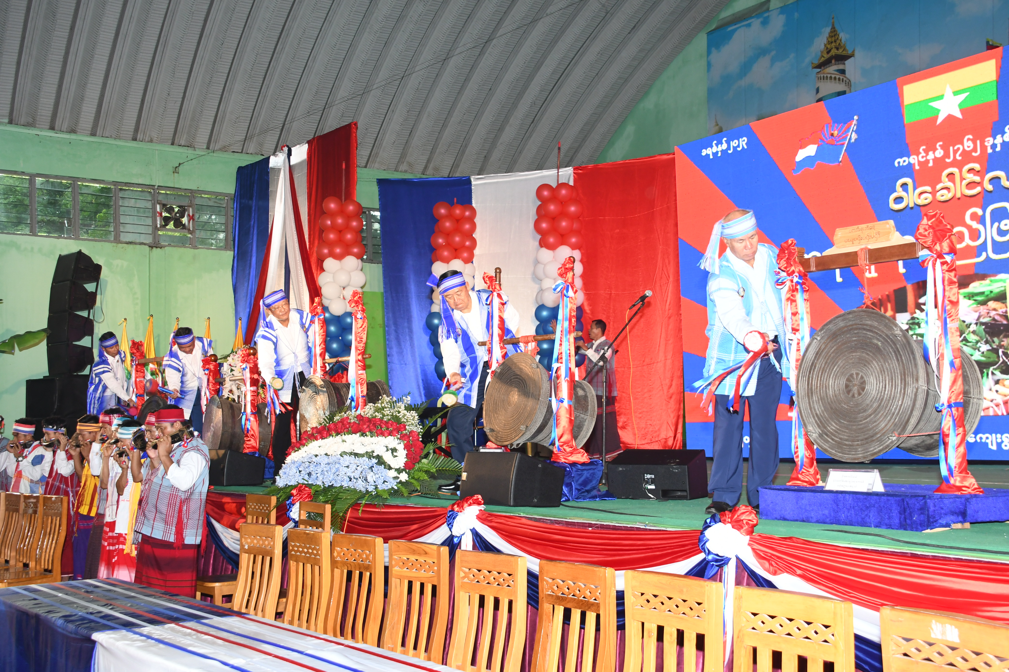 ပထမဦးစွာ အခမ်းအနားကို နိုင်ငံတော်စီမံအုပ်ချုပ်ရေးကောင်စီ ဗဟိုအကြံပေး အဖွဲ့ခေါင်းဆောင် ဦးစောထွန်းအောင်မြင့်၊ တိုင်းရင်းသားလူမျိုးများရေးရာဝန်ကြီးဌာန၊ ပြည်ထောင်စုဝန်ကြီး Jeng Phang နော်တောင်၊ နိုင်ငံတော်စီမံအုပ်ချုပ်ရေးကောင်စီ ဗဟိုအကြံပေးအဖွဲ့ဝင် ဦးစောဒယ်နီရယ်၊ ရန်ကုန်တိုင်း စစ်ဌာနချုပ် တိုင်းမှူး ဗိုလ်ချုပ်ဇော်ဟိန်း၊ ရန်ကုန်တိုင်းဒေသကြီး အစိုးရအဖွဲ့ဝင် လုံခြုံရေးနှင့်နယ်စပ်ရေးရာဝန်ကြီး ဗိုလ်မှူးကြီး ဝင်းတင့်နှင့် တိုင်းရင်းသားရေးရာဝန်ကြီး ဦးစောဂျက်ကော့ထူးတို့က ဖားစည် (၉) ချက်တီးပြီး ကရင်လူငယ် (၉) ဦးတို့က ကျွဲချိုမှုတ်၍ အခမ်းအနားကို ဖွင့်လှစ်ခဲ့ပါသည်။