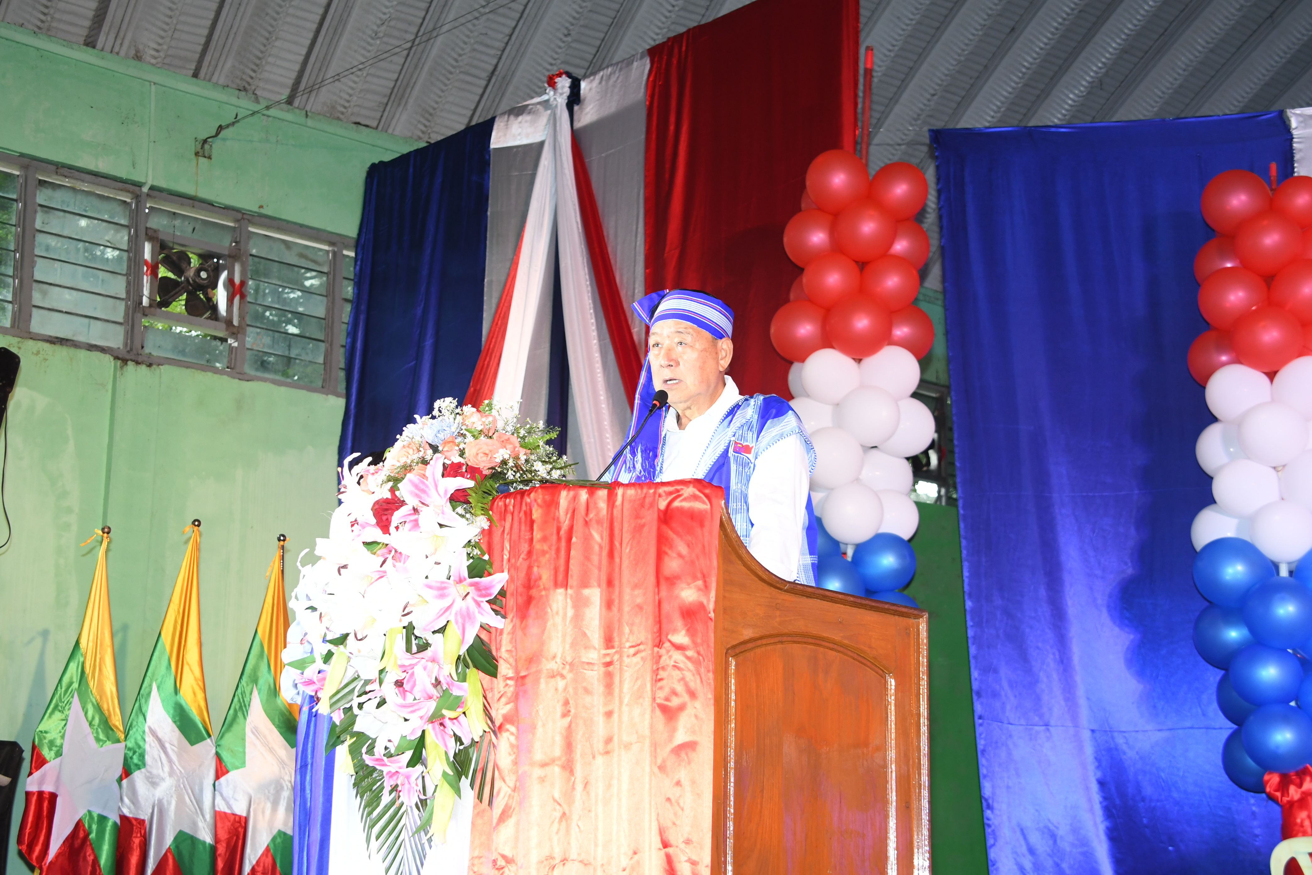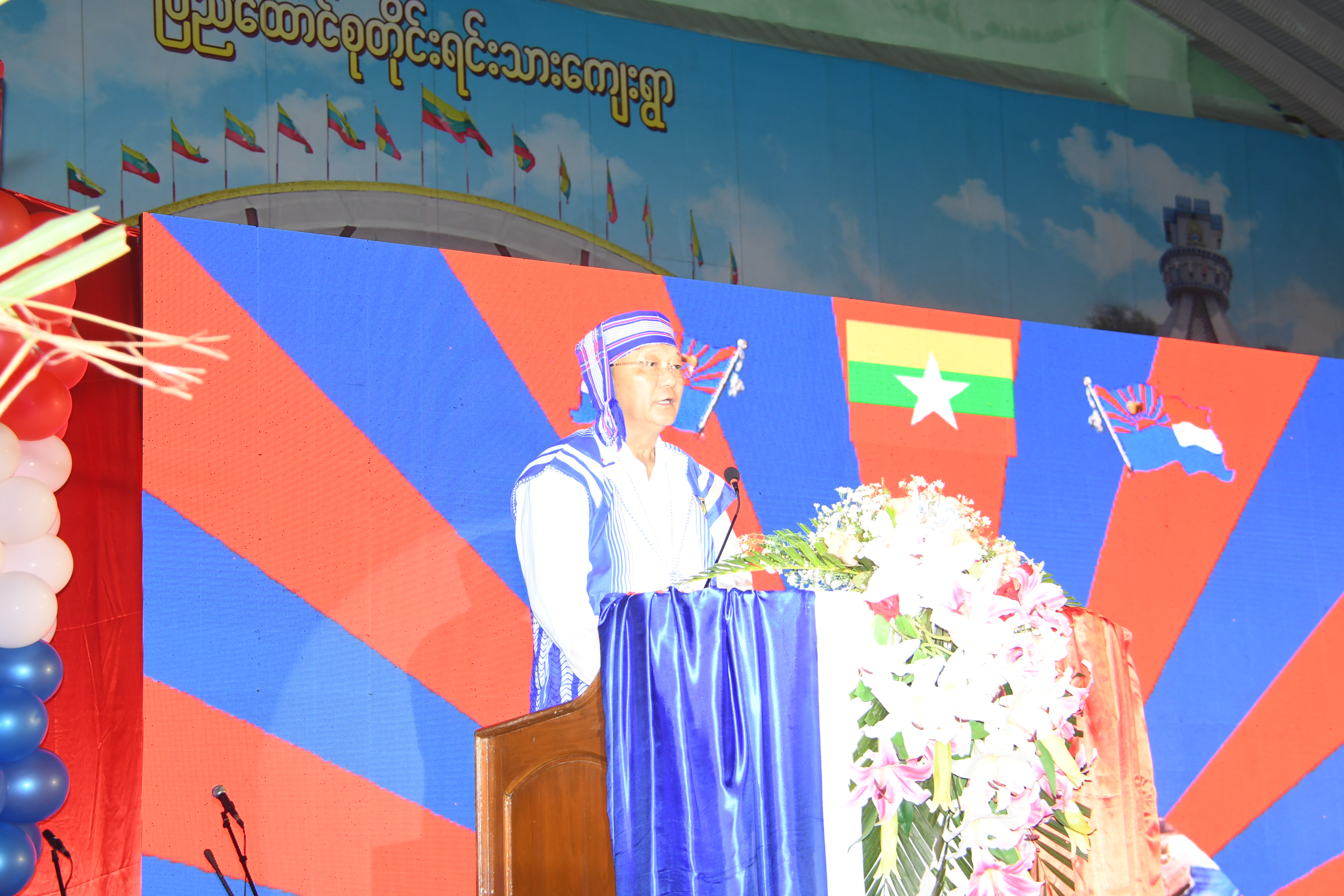 ဆက်လက်ပြီး ပထမဦးစွာ နိုင်ငံတော်စီမံအုပ်ချုပ်ရေးကောင်စီ ဗဟိုအကြံပေး အဖွဲ့ခေါင်းဆောင် ဦးစောထွန်းအောင်မြင့်က နှုတ်ခွန်းဆက်စကားပြောကြားပြီးနောက် ပြည်ထောင်စုဝန်ကြီး Jeng Phang နော်တောင်က နှုတ်ခွန်းဆက်စကားပြောကြားရာတွင် မြန်မာသက္ကရာဇ် ဝါခေါင်လဆန်း (၁) ရက်နေ့မှစတင်ပြီး ဝါခေါင်လပြည့်နေ့အထိ ကျင်းပလေ့ ရှိကြသည့် ကရင်ရိုးရာဝါခေါင်လချည်ဖြူဖွဲ့မင်္ဂလာအခမ်းအနားသည် ကရင်တိုင်းရင်းသား ဘိုးဘွားမိဘများ၏ အစဉ်အလာမပျက် လက်ဆင့်ကမ်းခဲ့ကြသည့် မင်္ဂလာတရားများနှင့် ပြည့်စုံသည့် ရိုးရာအမွေအနှစ်တစ်ခုပင်ဖြစ်ပါကြောင်း၊ မိသားစုများအားလုံး စည်းစည်း လုံးလုံးဖြင့် ပြန်လည်တွေ့ဆုံပြီး လက်ရည်တပြင်တည်းဖြစ်ခြင်း၊ နွေးနွေးထွေးထွေးဖြင့် ချစ်ကြည်ရင်းနှီးစည်းလုံးမှုများတိုးပွားစေခြင်းနှင့် ရိုးရာယဉ်ကျေးမှုထုံးတမ်းအစဉ်အလာ များကို ထိန်းသိမ်းဖော်ထုတ်ခြင်းတို့ဖြင့် ထူးမြတ်သည့်မင်္ဂလာအခမ်းအနားဖြစ်ပါကြောင်း၊ “ချည်ဖြူဖွဲ့မင်္ဂလာကျင်းပခြင်းဖြင့်” မကောင်းသည့်ဖြစ်ပျက်မှု၊ ဖြစ်စဉ်အကြောင်းအရာများ ပျောက်ပျက်ပြီး ကောင်းမွန်သည့်မင်္ဂလာတရားများ မိမိတို့ထံ သက်ဝင်ရောက်ရှိလာစေရန် ဆောင်ရွက်ကြသည့် ပွဲတော်လည်းဖြစ်ပါကြောင်း၊ ပွဲတော်အတွက် လိုအပ်သည့်အရာများမှာ ငှက်ပျောသီး၊ ကောက်ညှင်းထုပ်၊ ထမင်းဆုပ်၊ နတ်ပန်းညို၊ ချည်ဖြူ၊ သန့်စင်သောရေနှင့် ကြံပိုင်းတို့ဖြစ်ကြပြီး စနစ်တကျဆောင်ရွက်သည့် ပွဲတော်လည်းဖြစ်ပါကြောင်း၊ ဤအရာ များကိုကြည့်ခြင်းအားဖြင့် ကရင်တိုင်းရင်းသားများ၏စနစ်တကျစုပေါင်းညီညာ ဆောင်ရွက် တတ်မှု၊ လက်ဆင့်ကမ်းအမွေအနှစ်များ လွှဲပြောင်းပေးအပ်ခံယူတတ်မှုနှင့် ရိုးရာယဉ်ကျေးမှု များကို စနစ်တကျထိန်းသိမ်းဆောင်ရွက်တတ်မှုများကို တွေ့ရှိရမည်ဖြစ် ပါကြောင်း၊ မိမိတို့ တိုင်းရင်းသားလူမျိုးများရေးရာဝန်ကြီးဌာနအနေဖြင့် နိုင်ငံတော်စီမံ အုပ်ချုပ်ရေးကောင်စီ၏ ဦးတည်ချက် (၉)ရပ်အနက် လူမှုရေးဦးတည်ချက်ပါ တစ်နိုင်ငံလုံး အသိပညာအတတ်ပညာ မြင့်မားတိုးတက်စေရေးနှင့် ကုန်ထုတ်လုပ်မှုအထောက်အကူပြု ပညာရှင်များထွန်းကား လာစေရေးတို့အတွက် လူတိုင်းလက်လှမ်းမီသည့် ဘက်စုံပညာရေးစနစ်ကို အကောင်အထည် ဖော်ဆောင်ရေးဆိုသည့် ဦးတည်ချက်ကို အထောက်အကူပြုစေရန်အတွက် တိုင်းဒေသကြီး/ ပြည်နယ်များတွင် တိုင်းရင်းသားဘာသာစာပေသင်ကြားမှုကို ပညာရေးဝန်ကြီးဌာနနှင့် ပေါင်းစပ်ညှိနှိုင်းဆောင်ရွက်ပေးလျက်ရှိပါကြောင်း၊ တိုင်းရင်းသားစာပေနှင့်ယဉ်ကျေးမှု အဖွဲ့များ အသင်းအဖွဲ့မှတ်ပုံတင်ခြင်းဆိုင်ရာဥပဒေနှင့်အညီ စနစ်တကျ မှတ်ပုံတင်နိုင်ရေး ကိစ္စနှင့် တိုင်းရင်းသားများအတွက် တိုက်ရိုက်အကျိုးခံစားစေမည့် 