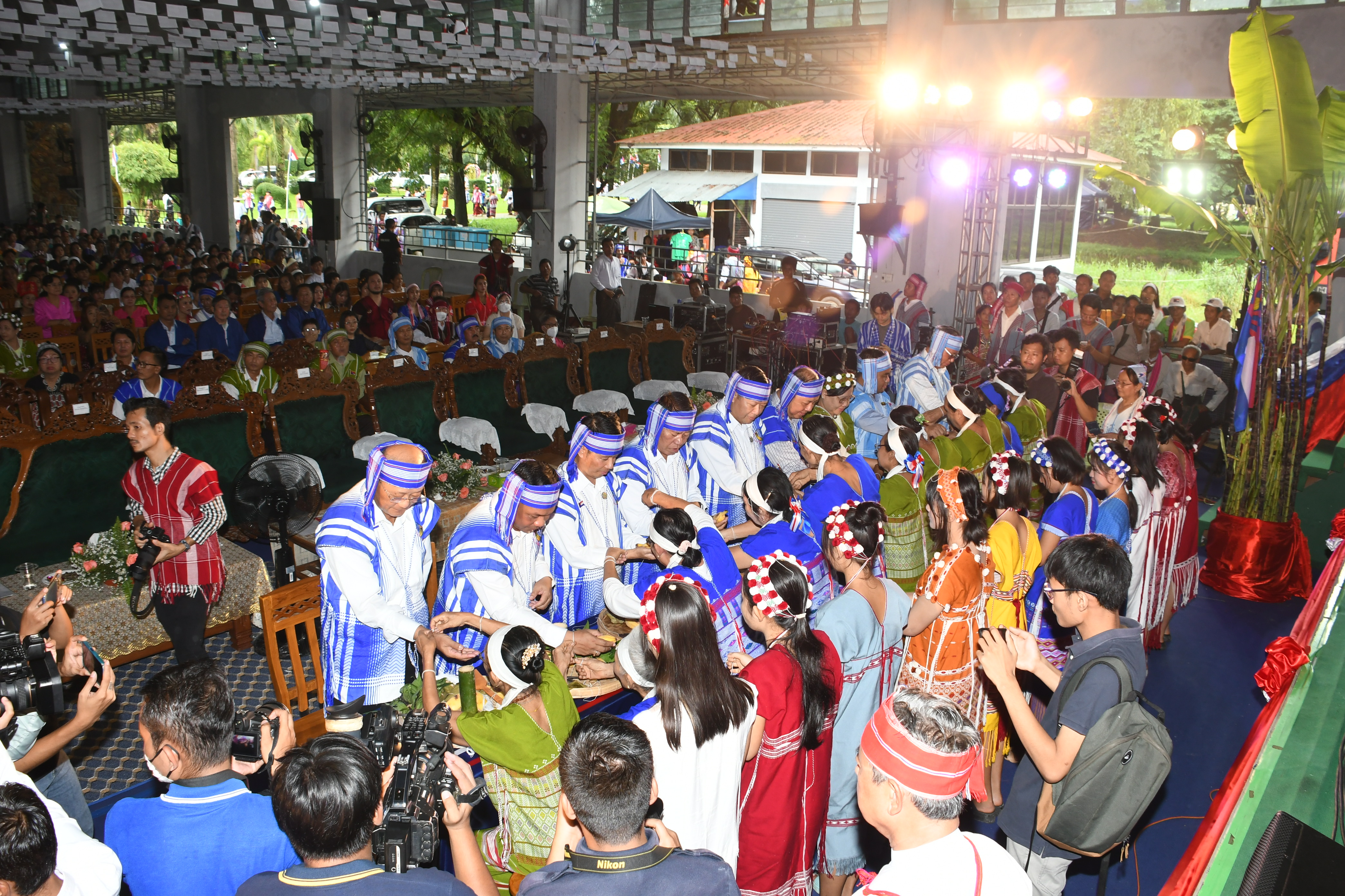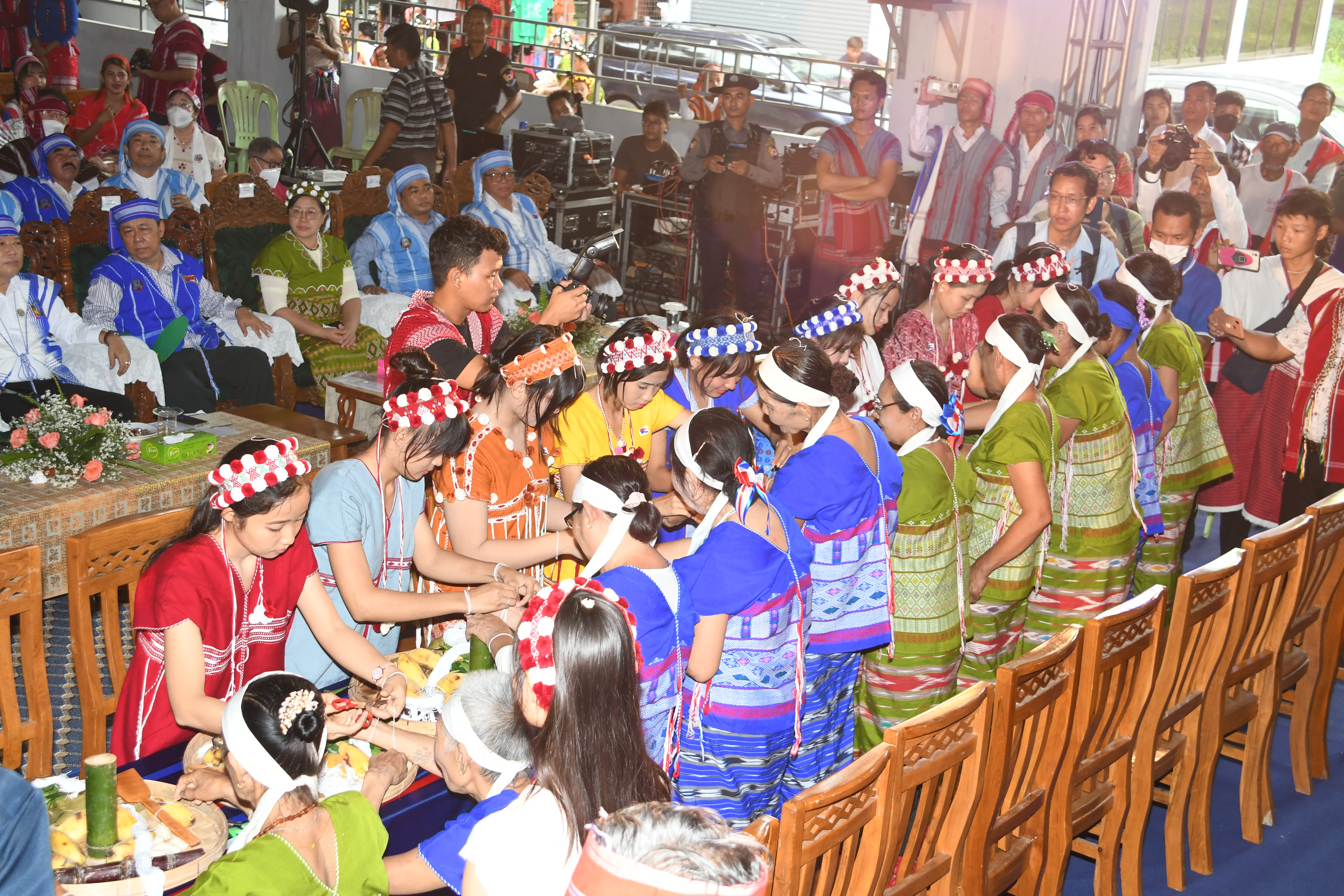၎င်းနောက် ပြည်ထောင်စုဝန်ကြီး Jeng Phang နော်တောင်နှင့် ရန်ကုန်တိုင်း ဒေသကြီးအစိုးရအဖွဲ့ လုံခြုံရေးနှင့်နယ်စပ်ရေးရာဝန်ကြီး ဗိုလ်မှူးကြီး ဝင်းတင့်တို့က ပွဲတော်ကျင်းပရေးကောင်မတီနှင့် တိုင်းရင်းသားရိုးရာအကအဖွဲ့များထံသို့ ထောက်ပံ့ငွေများ ပေးအပ်ခဲ့ပါသည်။ ထို့နောက် ကရင်ဘိုးဘွားများက အခမ်းအနားသို့ တက်ရောက်လာ ကြသည့် ဧည့်သည်တော်များနှင့် တိုင်းရင်းသားညီအစ်ကိုမောင်နှမများအားလုံးတို့ကို ကရင်ရိုးရာချည်ဖြူဖွဲ့ပေးခဲ့ ကြပါသည်။
