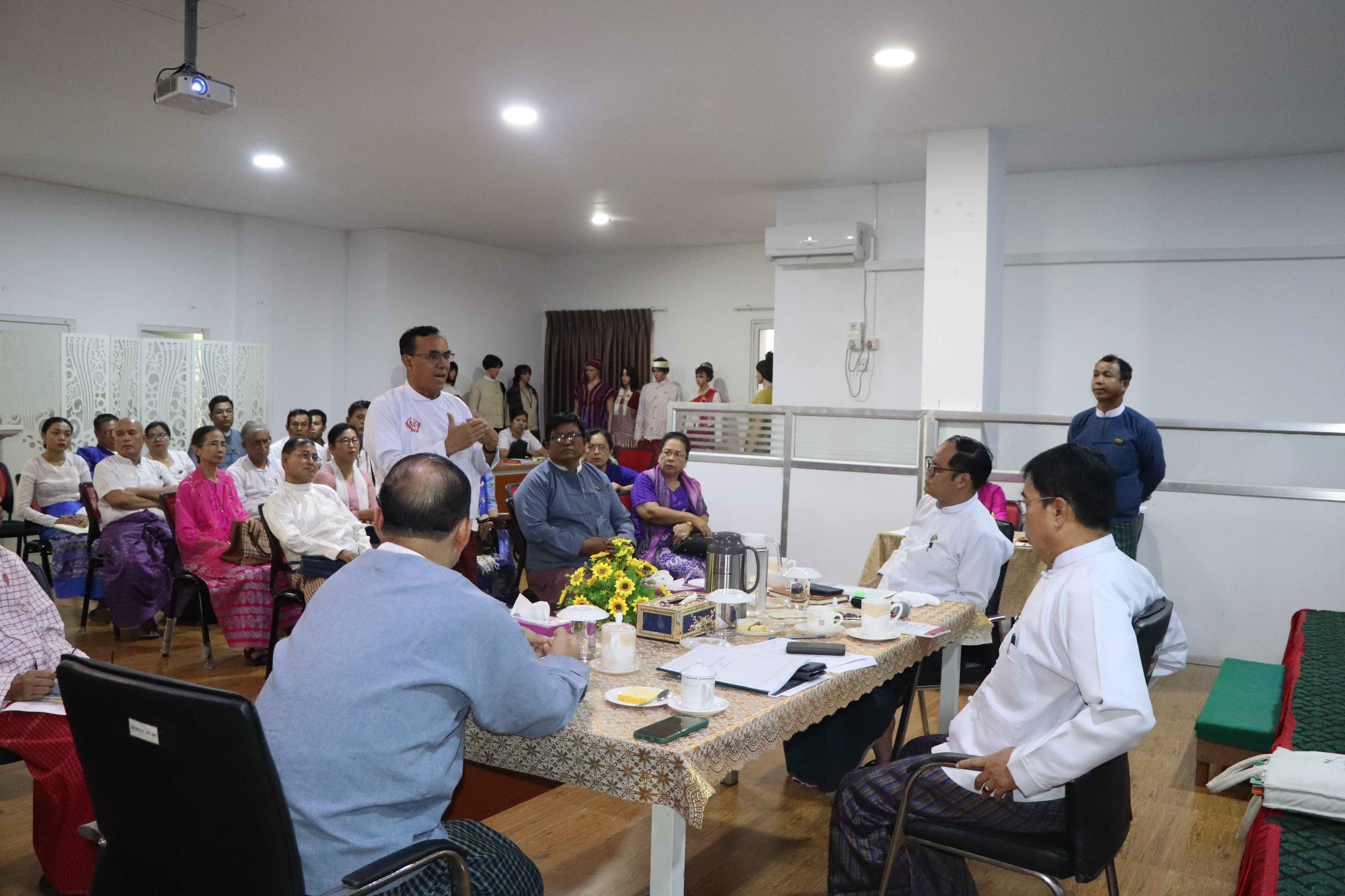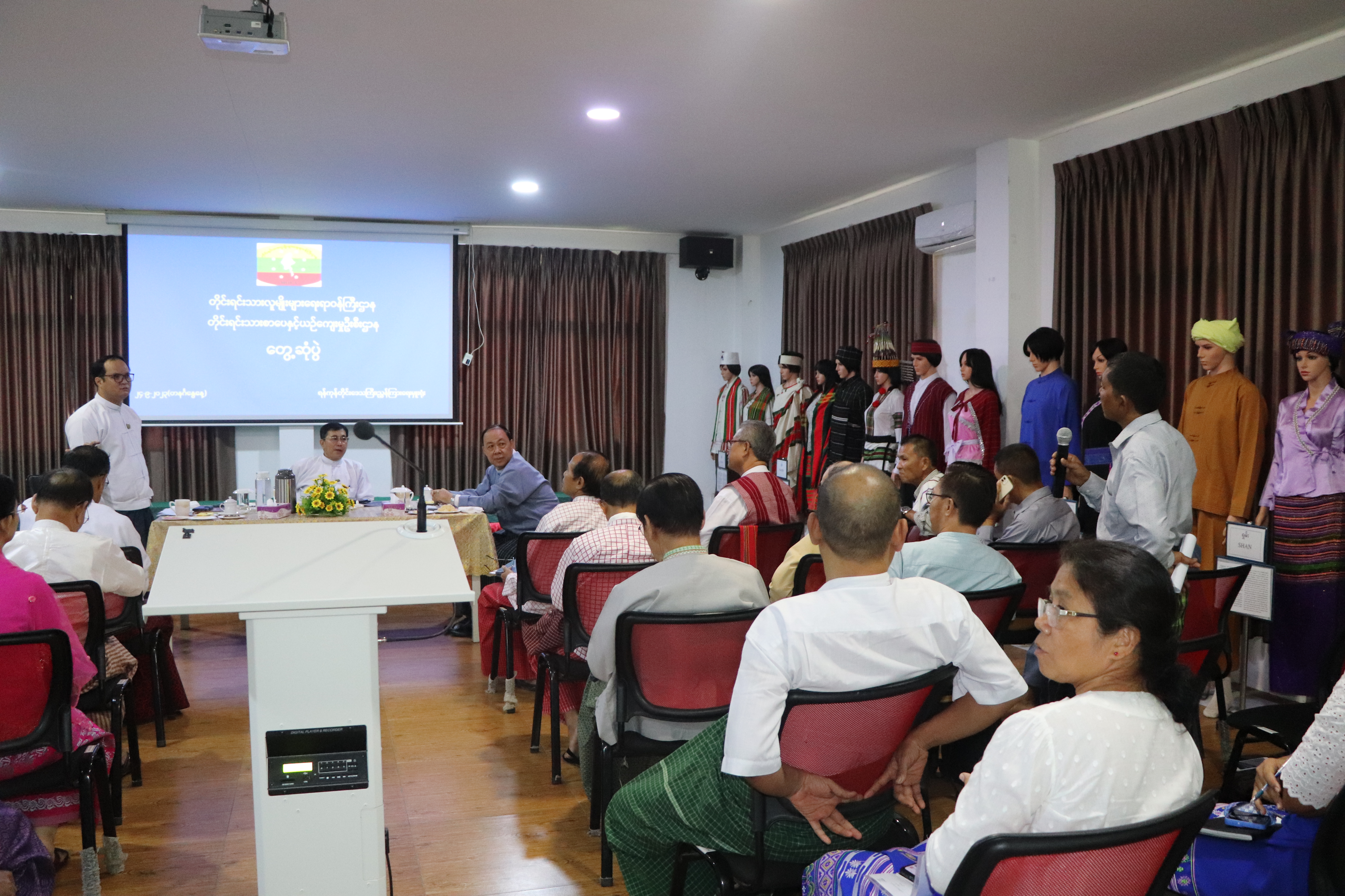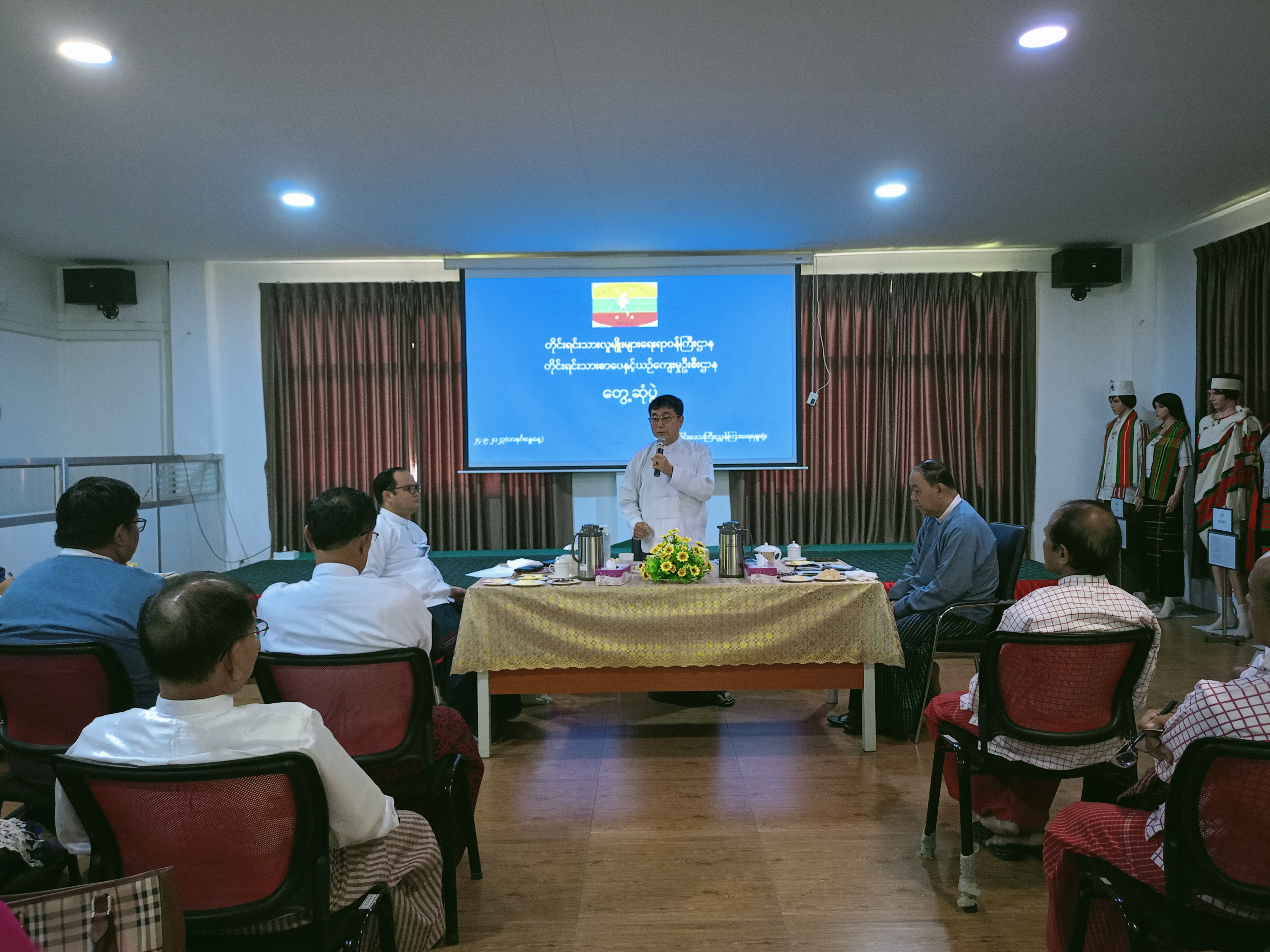 ထို့နောက် တိုင်းဒေသကြီး တိုင်းရင်းသားရေးရာဝန်ကြီး ဦးစောဂျက်ကော့ထူးက အသင်းအဖွဲ့ မှတ်ပုံတင်ရေးဥပဒေအရ မှတ်ပုံတင်နိုင်ရေးဆောင်ရွက်နေမှုများနှင့် တိုင်းရင်းသားရေးရာ ကိစ္စ ရပ်များကို ဆွေးနွေးတင်ပြပြီး တက်ရောက်လာသည့် တိုင်းရင်းသားစာပေနှင့် ယဉ်ကျေးမှု အဖွဲ့များမှ တာဝန်ရှိသူများက လိုအပ်ချက်နှင့်ကူညီဆောင်ရွက်ပေးရမည့် အချက်များကို ဆွေးနွေးတင်ပြကြရာ ဒုတိယဝန်ကြီးက ညှိနှိုင်းပေါင်းစပ်ပေးခဲ့ကြောင်းသတင်းရရှိပါသည်။