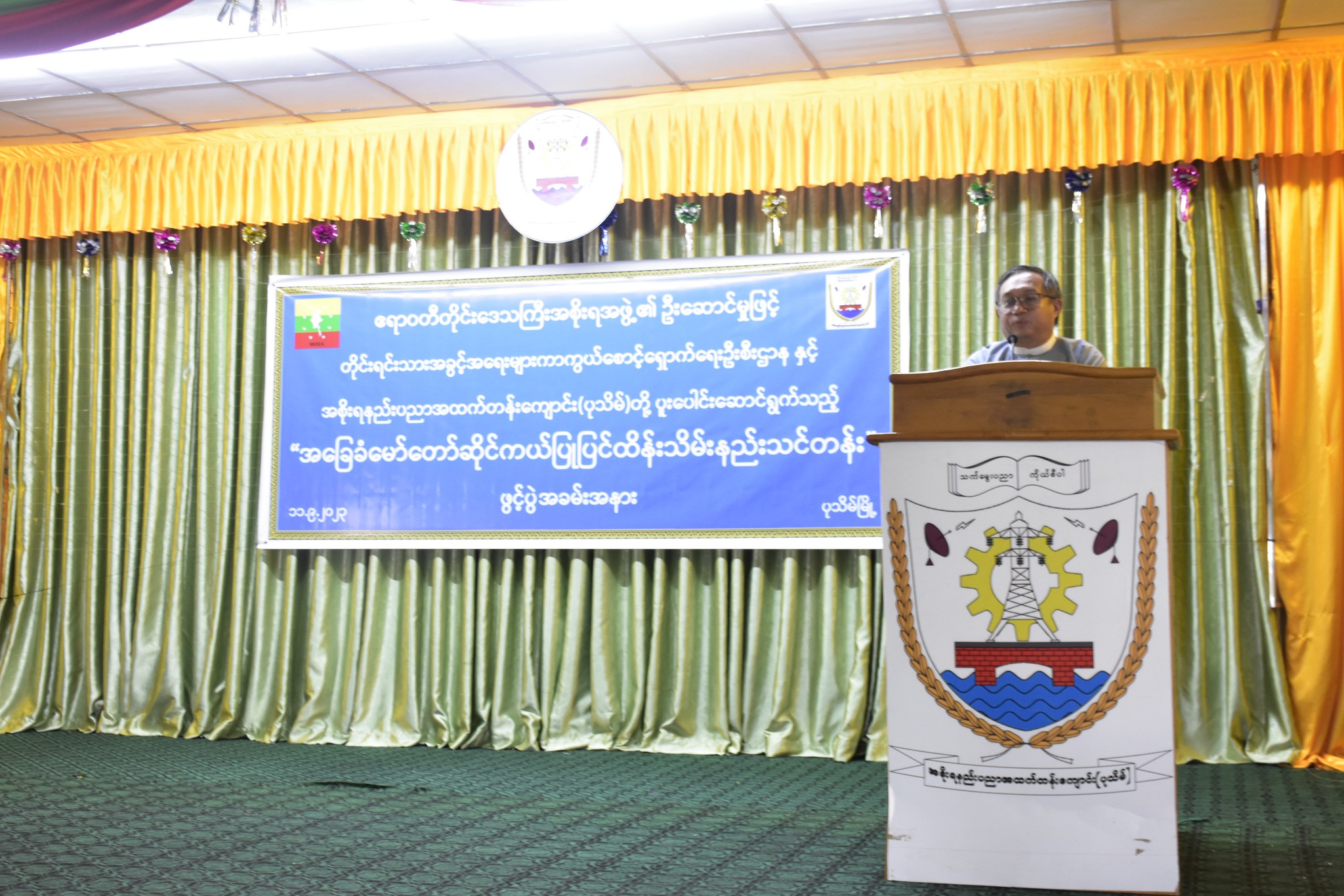 အစီအစဉ်အရ တိုင်းဒေသကြီးအစိုးရအဖွဲ့ဝင် တိုင်ရင်းသားရေးရာဝန်ကြီး ဦးစောလင်းခယ်က အဖွင့်အမှာစကားပြောကြားခဲ့ပြီးနောက် အစိုးရနည်းပညာအထက်တန်း ကျောင်း(ပုသိမ်)မှ ကျောင်းအုပ် ဆရာကြီး ဦးအေးမင်းထွန်းက သင်တန်းနှင့် စပ်လျဉ်း၍ အကဲဖြတ်စစ်ဆေးမှုအစီအစဉ်များ၊ သင်တန်းတွင် ထူးချွန်သူများအားဆုချီးမြှင့်ခြင်း အစီအစဉ်များနှင့် သင်တန်းတွင် ပို့ချမည့် အကြောင်းအရာများကို လည်းကောင်း ရှင်းလင်းပြောကြားခဲ့ပါသည်။