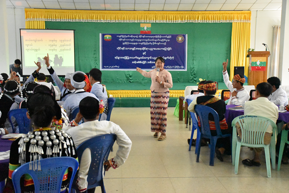 “တိုင်းရင်းသားအခွင့်အရေးဆိုင်ရာ အသိပညာပေးဟောပြောခြင်းနှင့် ရပ်ရွာအခြေပြု အသက်မွေးဝမ်း ကျောင်းပညာလိုအပ်ချက်တို့ကို ဆန်းစစ်စီမံခြင်း” အစီအစဉ်ကို ကချင်ပြည်နယ်တွင် ကျင်းပပြုလုပ် မြစ်ကြီးနား၊ အောက်တိုဘာ ၁၇