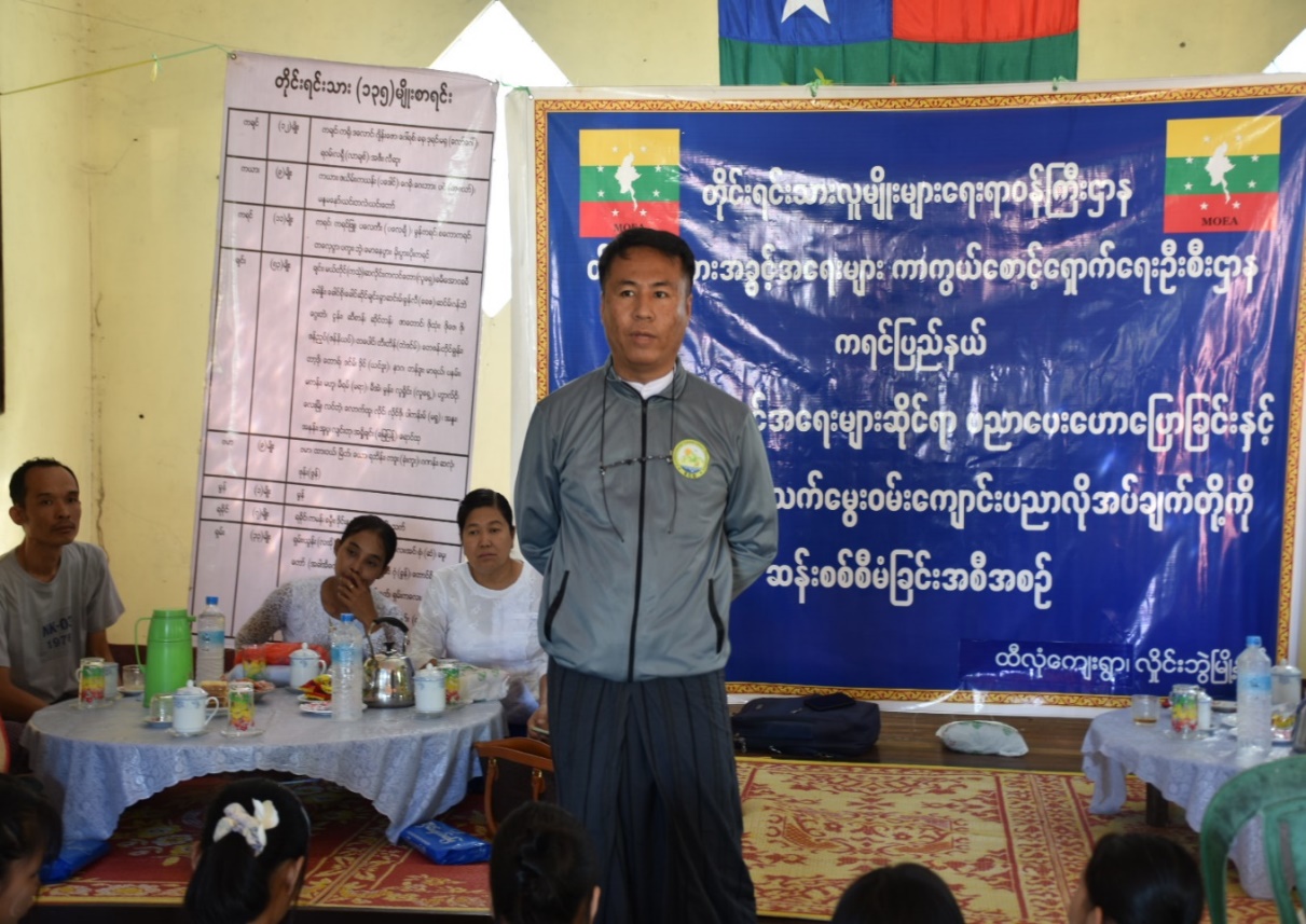 ထို့နောက် တိုင်းရင်းသားစာပေနှင့်ယဉ်ကျေးမှုဦးစီးဌာန၊ ကရင်ပြည်နယ်၊ ညွှန်ကြားရေး မှူးရုံးမှ ဦးစီးအရာရှိ ဒေါ်သန္တာတင့်က တိုင်းရင်းသားဘာသာသင် ဆရာ/ ဆရာမ Teaching Assistant (TA)နှင့် Language Teacher (LT) များခန့်အပ်ထားမှုကိစ္စများ၊ တိုင်းရင်းသားစာပေ နှင့်ယဉ်ကျေးမှုဦးစီးဌာန၊ ပြည်နယ်ညွှန်ကြားရေးမှူးရုံး၏ လုပ်ငန်းဆောင်ရွက်နေမှုများကိုလည်း ကောင်း၊ တိုင်းရင်းသားအခွင့်အရေးများကာကွယ်စောင့်ရှောက်ရေးဦးစီးဌာန၊ ကရင်ပြည်နယ်၊ ညွှန်ကြားရေးမှူးရုံးမှ အငယ်တန်းစာရေး ဦးအောင်ဖြိုးသော်က အမုန်းစကားနှင့် အကြမ်းဖက်မှု ဖြစ်စေရန် လှုံ့ဆော်မှုကို တားဆီးခြင်းဆိုင်ရာ အသိပညာပေးခြင်းကိစ္စများ ဒေသခံတိုင်းရင်းသား များနှင့် ကျောင်းသား၊ သူများအားဆွေးနွေးပြောဆိုခဲ့ပြီး ရပ်ရွာအခြေပြု အသက်မွေးဝမ်းကျောင်း ပညာလိုအပ်ချက်တို့ကို ဆန်းစစ်စီမံခြင်း စစ်တမ်းကောက်ယူရခြင်း ရည်ရွယ်ချက်နှင့် စစ်တမ်း ဖြေဆိုပုံ မေးခွန်းများကို ရှင်းလင်းပြောကြားခဲ့ပါသည်။