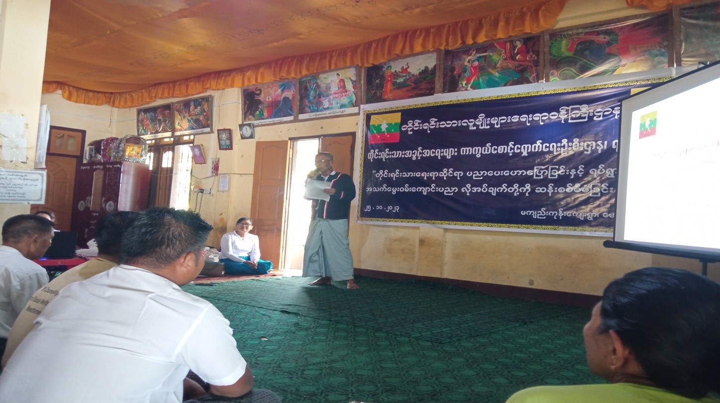 တိုင်းရင်းသားအခွင့်အရေးဆိုင်ရာ အသိပညာပေးဟောပြောခြင်းနှင့် ရပ်ရွာအခြေပြုအသက်မွေးဝမ်း ကျောင်းပညာလိုအပ်ချက်တို့ကို ဆန်းစစ်စီမံခြင်းအစီအစဉ်ကို ရခိုင်ပြည်နယ်တွင် ကျင်းပပြုလုပ် စစ်တွေ အောက်တိုဘာ ၂၅