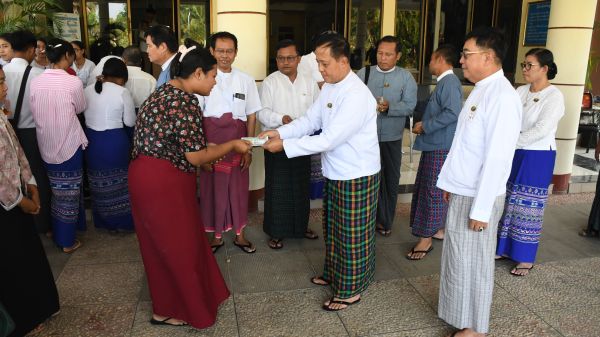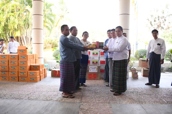 ညနေပိုင်းတွင် ပြည်ထောင်စုဝန်ကြီး၊ ဒုတိယဝန်ကြီးနှင့်အဖွဲ့တို့သည် နိုင်ငံတော်နှင့် နိုင်ငံတကာမှ ငလျင်ဘေးသင့်ဝန်ထမ်းနှင့် ဝန်ထမ်းမိသားစုများအတွက် ကူညီပေးအပ်သော ပစ္စည်းများ၊ အလှူရှင်များမှ တိုင်းရင်းသားလူမျိုးများရေးရာဝန်ကြီးဌာနသို့ ပေးအပ်သော လှူဒါန်းငွေများနှင့် ပစ္စည်းများအား ဝန်ထမ်းများသို့ စနစ်တကျ ခွဲဝေပေးအပ်ခဲ့ကြောင်း သတင်းရရှိပါသည်။