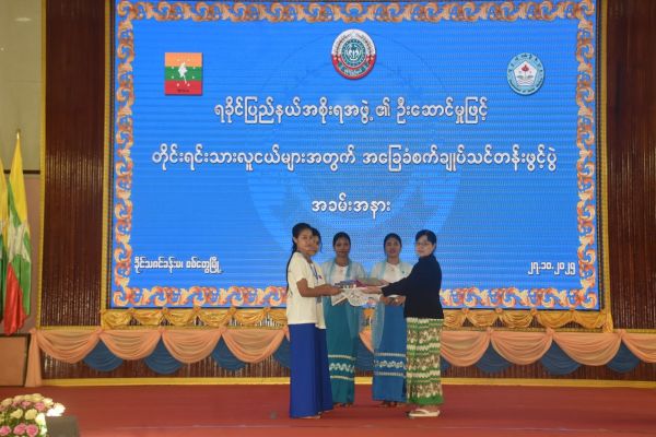 အခမ်းအနားတွင် ရခိုင်ပြည်နယ်အစိုးရအဖွဲ့၊ ပြည်နယ်ဝန်ကြီးချုပ်(ကိုယ်စား) ပြည်နယ်လုံခြုံရေးနှင့်နယ်စပ်ရေးရာဝန်ကြီး၊ ဗိုလ်မှူးကြီးကျော်သူရက အဖွင့်အမှာစကားပြောကြားခဲ့ပြီး အခြေခံစက်ချုပ်သင်တန်းအတွက် ထောက်ပံ့ငွေကျပ် (၁၉၆) သိန်းကို တိုင်းရင်းသားအခွင့်အရေးများ ကာကွယ်စောင့်ရှောက်ရေးဦးစီးဌာန ရခိုင်ပြည်နယ်၊ ညွှန်ကြားရေးမှူးရုံးမှ လက်ထောက်ညွှန်ကြားရေးမှူး ဒေါ်မီမီဝင်းရွှေနှင့် အိမ်တွင်းမှုသက်မွေးလုပ်ငန်းပညာသင်ကျောင်းမှ ကျောင်းအုပ်ဆရာမကြီးတို့ထံ ပေးအပ်ခဲ့ပါသည်။