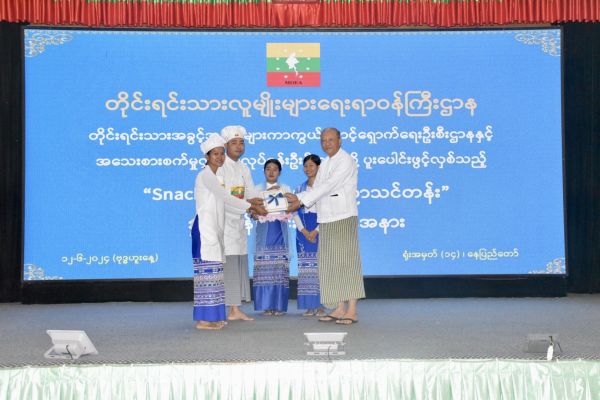 တိုင်းရင်းသားလူမျိုးများရေးရာဝန်ကြီးဌာန၊ တိုင်းရင်းသားအခွင့်အရေးများ ကာကွယ် စောင့်ရှောက်ရေးဦးစီးဌာနနှင့် သမဝါယမနှင့်ကျေးလက်ဖွံ့ဖြိုးရေးဝန်ကြီးဌာန၊ အသေးစားစက်မှု လက်မှုလုပ်ငန်းဦးစီးဌာနတို့ ပူးပေါင်း၍ ကျင်းပပြုလုပ်သည့် Snack & Bakery နည်းပညာ သင်တန်းဆင်းပွဲ အခမ်းအနားကို ယနေ့မွန်းလွဲပိုင်းတွင် တိုင်းရင်းသားလူမျိုးများရေးရာဝန်ကြီး ဌာန၊ အစည်းအဝေးခန်းမ၌ ကျင်းပရာ တိုင်းရင်းသားလူမျိုးများရေးရာဝန်ကြီးဌာန၊ ပြည်ထောင်စု ဝန်ကြီး Jeng Phang နော်တောင်၊ ဒုတိယဝန်ကြီး ဦးဇော်အေးမောင်၊ ညွှန်ကြားရေးမှူးချုပ်များ၊ ဒုတိယအမြဲတမ်းအတွင်းဝန်၊ ဒုတိယညွှန်ကြားရေးမှူးချုပ်များ၊ အရာထမ်း အမှုထမ်းများ၊ သင်တန်းနည်းပြများနှင့် သင်တန်းသား၊ သင်တန်းသူများ တက်ရောက်ကြပါသည်။