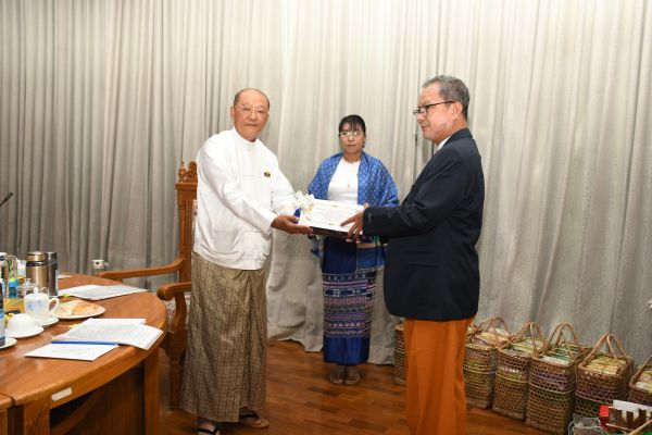 ထို့နောက် ပြည်ထောင်စုဝန်ကြီးက တိုင်းရင်းသားယဉ်ကျေးမှုဆိုင်ရာ စာအုပ်စာတမ်း များကို တိုင်းဒေသကြီးနှင့်ပြည်နယ်အစိုးရအဖွဲ့ တိုင်းရင်းသားရေးရာဝန်ကြီးများ ကိုယ်စား ကချင်ပြည်နယ် တိုင်းရင်းသားရေးရာဝန်ကြီးနှင့် စစ်ကိုင်းတိုင်းဒေသကြီး တိုင်းရင်းသားရေးရာ ဝန်ကြီးတို့အား ပေးအပ်ခဲ့ပါသည်။