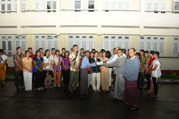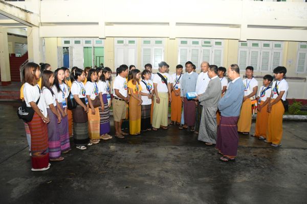 ပထမဦးစွာ ပြည်ထောင်စုဝန်ကြီးနှင့် ဒုတိယဝန်ကြီးများက တိုင်းရင်းသားယဉ်ကျေးမှု အကအဖွဲ့များအား တွေ့ဆုံနှုတ်ခွန်းဆက်စကား ပြောကြားခဲ့ပြီး ပြည်ထောင်စုဝန်ကြီးနှင့် ဒုတိယဝန်ကြီးများသည် တိုင်းရင်းသားယဉ်ကျေးမှုအကအဖွဲ့များအား စာပေနှင့်ယဉ်ကျေးမှု မြှင့်တင်ရေးလုပ်ငန်းများဆောင်ရွက်ရန်အတွက် တိုင်းရင်းသားလူမျိုးများရေးရာဝန်ကြီးဌာနမှ တစ်ဖွဲ့လျှင် ကျပ် (၁၀)သိန်းတိတိ ထောက်ပံ့ငွေများပေးအပ်ကာ ရင်းရင်းနှီးနှီးဖြင့် လိုက်လံ နှုတ်ဆက်ကြပါသည်။