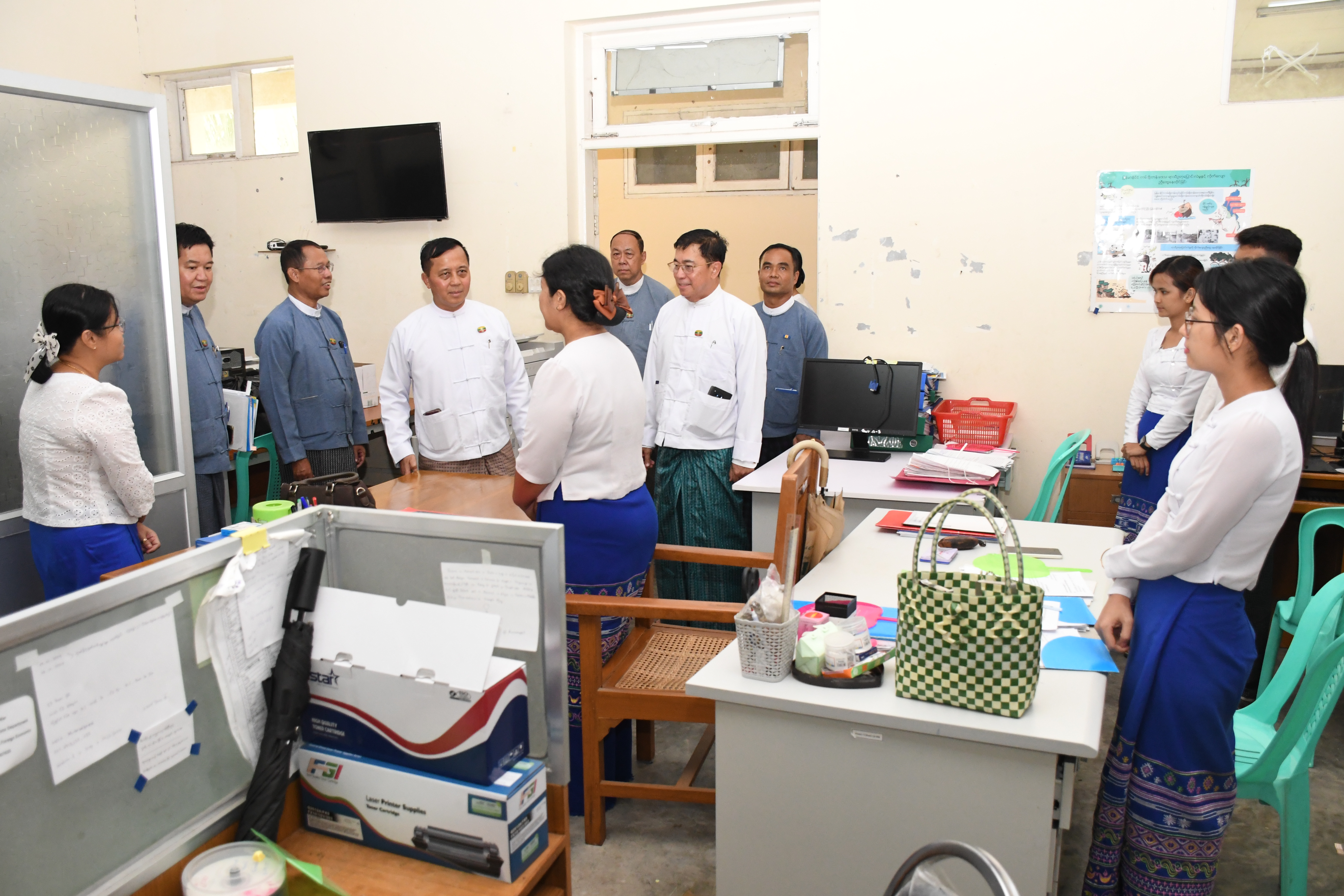 တိုင်းရင်းသားလူမျိုးများရေးရာဝန်ကြီးဌာန၊ ပြည်ထောင်စုဝန်ကြီး ခွန်သန့်ဇော်ထူးနှင့် ဒုတိယဝန်ကြီး ဦးဇော်အေးမောင်တို့သည် တာဝန်ရှိသူများလိုက်ပါလျက် ဧပြီလ (၂၂)ရက်နေ့ နံနက်ပိုင်းတွင် တိုင်းရင်းသားလူမျိုးများရေ ဝန်ကြီးဌာန၊ ပြည်ထောင်စုဝန်ကြီးရုံးနှင့် ဦးစီးဌာန (၂)ခုတို့မှ ဝန်ထမ်းများ၏ ရုံးလုပ်ငန်းများ ပုံမှန်ပြန်လည်ဆောင်ရွက်နေမှု အခြေအနေများအား လိုက်လံကြည့်ရှုစစ်ဆေးခဲ့ပြီး လိုအပ်သည်များကို မှာကြားခဲ့ပါသည်။ ဆက်လက်၍ ပြည်ထောင်စုဝန်ကြီးနှင့် ဒုတိယဝန်ကြီးတို့သည် ဌာနအကြီးအကဲများ၊ ဌာနခွဲ တာဝန်ခံများနှင့် တွေ့ဆုံပြီး ပြည်ထောင်စုဝန်ကြီးက မိမိတို့ဝန်ထမ်းများအနေဖြင့် မူလရုံးခန်းများတွင် တာဝန်များကို စနစ်တကျ ထမ်းဆောင်နေသည်ကိုတွေ့ရပြီး အချို့ပြင်ဆင်ရန် လိုအပ်သည့် အခန်းများအတွက်လည်း အမြန်ဆုံး ပြန်လည်ပြင်ဆင်ပြီး မူလအတိုင်း တာဝန် ထမ်းဆောင်နိုင်ရန် ဆောင်ရွက်သွားမည်ဖြစ်ကြောင်း၊ ဝန်ထမ်းအိမ်ယာများအတွက်လည်း နိုင်ငံတော်မှ မူလအတိုင်း တိုက်များဖြင့် ပြန်လည်နေထိုင်နိုင်ရန် ဆောင်ရွက်နေစဉ်ကာလ အတွင်း မိသားစုအလိုက် လွတ်လွတ်လပ်လပ် လုံလုံခြုံခြုံ နေထိုင်နိုင်ရန် ယာယီလုံးချင်းတဲ များကို ရေ၊ မီး၊ မိလ္လာအပြည့်အစုံဖြင့် တည်ဆောက်ပေးလျက်ရှိကြောင်း၊ မူလတာဝန်များ ဆောင်ရွက်ရာတွင်လည်း လိုအပ်ချက်များကို ဆင့်ကဲတင်ပြပြီး တက်ညီလက်ညီ ဝိုင်းဝန်း ဖြေရှင်းသွားရန်လိုကြောင်းနှင့် ဆက်လက်ဆောင်ရွက်ရမည့် ကိစ္စရပ်များကို ပေါင်းစပ်ညှိနှိုင်း ပေးခဲ့ပါသည်။ ဆက်လက်၍ ပြည်ထောင်စုဝန်ကြီး၊ ဒုတိယဝန်ကြီးနှင့် တာဝန်ရှိသူများသည် နိုင်ငံတော် အစိုးရ၊ နိုင်ငံတကာနှင့် ပြည်တွင်းအလှူရှင်များမှ ငလျင်ဘေးသင့် ဝန်ထမ်းများအတွက် ကူညီ ပေးအပ်သော စားသောက်ကုန်ပစ္စည်းများနှင့် လူသုံးကုန်ပစ္စည်းများအား ဝန်ထမ်းများသို့ စနစ်တကျ ခွဲဝေပေးအပ်နေသည်ကို သွားရောက်ကြည့်ရှုအားပေးခဲ့ပါသည်။ ညနေပိုင်းတွင် ပြည်ထောင်စုဝန်ကြီး၊ ဒုတိယဝန်ကြီးနှင့် တာဝန်ရှိသူများသည် ရုံးမြေဧရိယာ အတွင်း ဝန်ထမ်းမိသားစုများ တစ်နှစ်ကျော်ခန့် စည်းစည်းလုံးလုံး လုံလုံခြုံခြုံ နေထိုင်နိုင်ရန် အတွက် ဆောက်လုပ်လျက်ရှိသော လုံးချင်းယာယီတဲများ၊ သုံးရေသွယ်တန်းထားရှိမှု၊ လျှပ်စစ်မီး သွယ်တန်းနေမှု၊ အရန်မီးအဖြစ် အသုံးပြုနိုင်ရန်အတွက် Solar တပ်ဆင်ထားရှိမှု နှင့်ယင်လုံအိမ်သာ ဆောက်လုပ်ထားရှိမှု အခြေအနေတို့ကို ကြည့်ရှုစစ်ဆေးခဲ့ပြီး လိုအပ်သည် များကို ဖြည့်ဆည်း ဆောင်ရွက်ပေးခဲ့ကြောင်း သတင်းရရှိပါသည်။