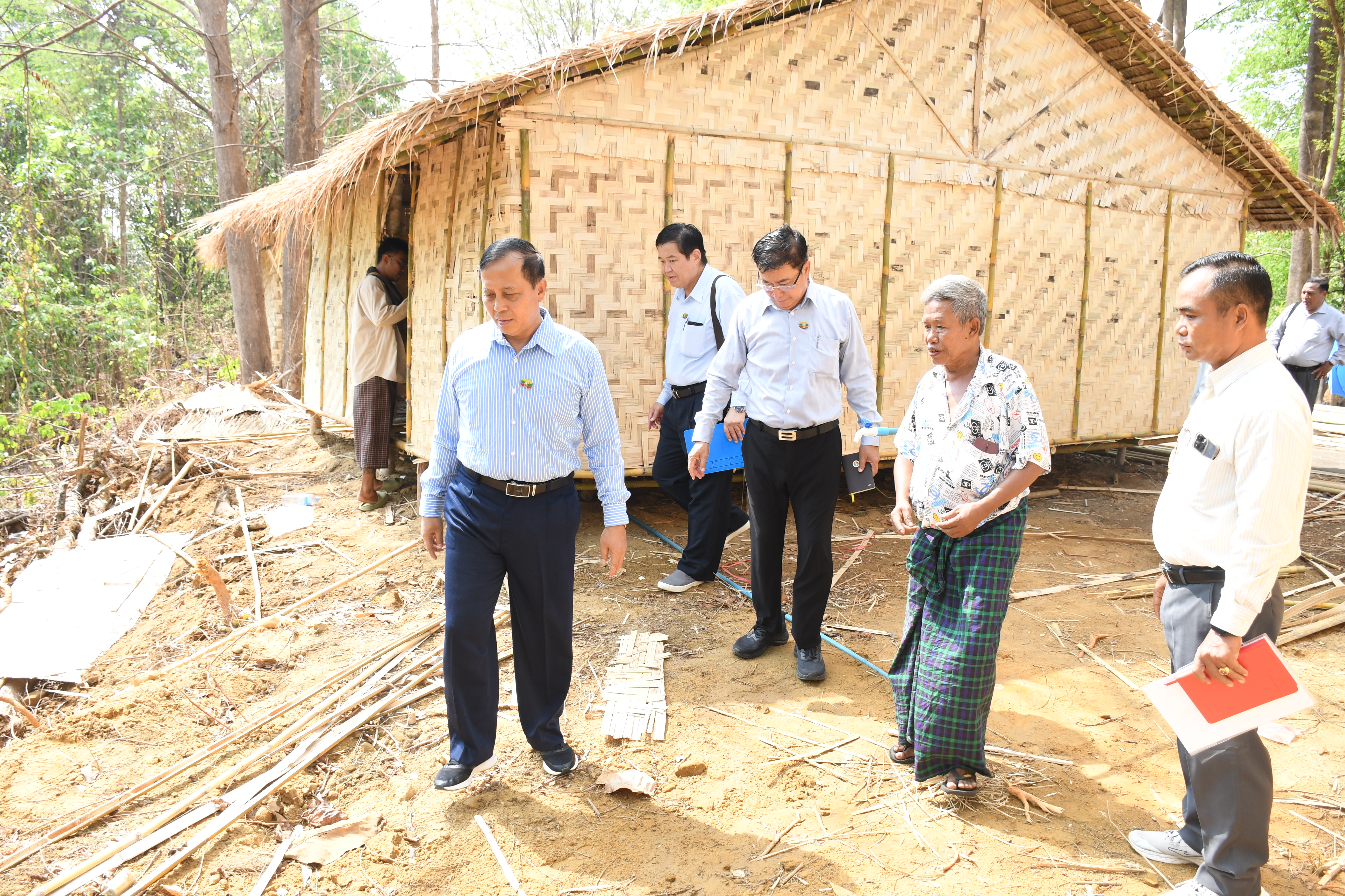 တိုင်းရင်းသားလူမျိုးများရေးရာဝန်ကြီးဌာန၊ ပြည်ထောင်စုဝန်ကြီး ခွန့်သန့်ဇော်ထူးနှင့် ဒုတိယဝန်ကြီး ဦးဇော်အေးမောင်တို့သည် အမြဲတမ်းအတွင်းဝန်၊ ညွှန်ကြားရေးမှူးချုပ်များ၊ ဒုတိယ ညွှန်ကြားရေးမှူးချုပ်များနှင့် တာဝန်ရှိသူများသည် ဧပြီလ (၅) ရက်နေ့ နံနက်ပိုင်းတွင် တိုင်းရင်းသား လူမျိုးများရေးရာ ဝန်ကြီးဌာန၊ ရုံးမြေဧရိယာအတွင်း၌ ငလျင်ဒဏ်ကြောင့် ပြည်ထောင်စု ဝန်ကြီးရုံးနှင့် ဦးစီးဌာနများမှ ဝန်ထမ်းများနှင့် ဝန်းထမ်းမိသားစုများအား နေထိုင်ရန်အတွက် ယာယီတဲများ တက်ဆင် ပေး နိုင်ရေး မြေညှိခြင်းလုပ်ငန်း ဆောင်ရွက်နေမှုများအား သွားရောက်ကြည့်ရှုစစ်ဆေးခဲ့ပ်သည်။ ဦးစွာ ပြည်ထောင်စုဝန်ကြီး၊ ဒုတိယဝန်ကြီးနှင့် အဖွဲ့သည် တိုင်းရင်းသား လူမျိုးများရေးရာ ဝန်ကြီးဌာန၊ ရုံးမြေဧရိယာအတွင်းရှိ ခြောက်ခန်းတွဲ ဝန်ထမ်းအိမ်ရာဝန်းကျင်၌ ယာယီတဲများ တည်ဆောက်ပေးနိုင်ရေး၊ သုံးရေများ လုံလောက်စွာရရှိရန်အတွက် ‌ရေသွယ်တန်းမည့်စနစ်များ၊ ယာယီ သန့်စင်ခန်းတည်ဆောက်ပေးမည့်နေရာများသို့ ကြည်ရှုစစ်ဆေးခဲ့ပြီး လုပ်ငန်းများ အမြန်ဆုံး အကောင် အထည်ဖော် ‌ဆောင်ရွက်နိုင်ရေး တာဝန်ရှိသူများက အဆင့်ဆင့် ကြီးကြပ်ကွပ်ကဲရန် မှာကြားခဲ့ကြောင်း သိရှိရပါသည်။
