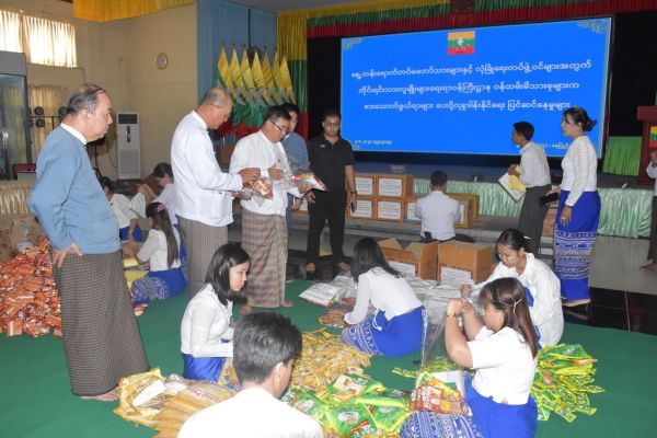 ပြည်ထောင်စုမပြိုကွဲရေး၊ တိုင်းရင်းသားစည်းလုံးညီညွတ်မှု မပြိုကွဲရေးတို့အတွက် နိုင်ငံတော်ကာကွယ်ရေးနှင့် လုံခြုံရေးတာဝန်များကို မိမိတို့၏အသက်ကို ပဓာနမထားပဲ ရဲရင့်စွာ စွမ်းစွမ်းတမံထမ်းဆောင်နေကြသည့် ရှေ့တန်းရောက်တပ်မတော်သားများနှင့် လုံခြုံရေးတပ်ဖွဲ့ဝင် များအတွက် စေတနာရှင်ပြည်သူများနှင့် ဝန်ကြီးဌာနဝန်ထမ်းမိသားစုများက အလှူငွေများနှင့် စားသောက်ဖွယ်ရာများကို ပေးပို့လှူဒါန်းလျက်ရှိသည်။ ထိုသို့ နိုင်ငံတော်ကာကွယ်ရေးတာဝန်များကို ထမ်းဆောင်နေကြသည့် ရှေ့တန်းရောက် တပ်မတော်သားများနှင့် လုံခြုံရေးတပ်ဖွဲ့ဝင်များအတွက် ယနေ့နံနက်ပိုင်းတွင် တိုင်းရင်းသား လူမျိုးများရေးရာဝန်ကြီးဌာန၊ ဝန်ထမ်းမိသားစုများက စာနာမှု၊ စေတနာ၊ မေတ္တာ ပြည့်ဝစွာဖြင့် စုပေါင်းချက်ပြုတ် ကြော်လှော်ကြပြီး စားသောက်ဖွယ်ရာများ ပေးပို့လှူဒါန်းနိုင်ရေး စိတ်အားထက်သန်စွာဖြင့် ပြင်ဆင်ဆောင်ရွက် ထုပ်ပိုးနေမှုများကို ပြည်ထောင်စုဝန်ကြီး Jeng Phang နော်တောင်နှင့် ဒုတိယဝန်ကြီး ဦးဇော်အေးမောင်တို့ လိုက်လံကြည့်ရှုအားပေး သည်။ တိုင်းရင်းသားလူမျိုးများရေးရာဝန်ကြီးဌာနမှ ဝန်ထမ်းမိသားစုများက ရှေ့တန်းရောက် တပ်မတော်သားများနှင့် လုံခြုံရေးတပ်ဖွဲ့ဝင်များအတွက် ငါးနီတူ အသားတု မြေပဲ ဘာလချောင်ကြော်၊ ငါးနီတူ ပဲပုပ် ဘာလချောင်ကြော်၊ ကော်ဖီ/လက်ဖက်ရည်ထုပ်၊ ကောင်းသန့်ဆန်ပြုတ်ထုပ်၊ မားမားခေါက်ဆွဲခြောက်ထုပ်၊ အသင့်စားဇလုံကြီးချဉ်ပေါင်ကြော်၊ ရှမ်းရွှေတောင်ရှူးရှဲလက်ဖက်၊ ဘုရင်ဘီစကစ်၊ Love သကြားလုံး၊ ကျောက်ဆူး ဆေးပေါ့လိပ်များကို ပေးပို့လှူဒါန်းသွားမည် ဖြစ်သည့်အပြင် ဝန်ကြီးဌာနမှ အရာထမ်း၊ အမှုထမ်းများက ရှေ့တန်းရောက် တပ်မတော်သားများ စိတ်ဓာတ်ခွန်အား တက်ကြွစေရန် “တိုင်းရင်းသားစည်းလုံးညီညွတ်ရေးအတွက် တိုက်ပွဲဝင် နေသော ပြည်ချစ်စစ်သည်များ၏ တရားသောစစ် မုချအောင်ရမည်”၊ “လှေခွက်ချည်းကျန် အလံမလှဲသည့် စိတ်ဓာတ်ဖြင့် ရဲရဲဝံ့ဝံ့ တိုက်ပွဲဝင်နေသော တပ်မတော်သားများအားလုံး ဘုရား၊ တရား၊ သံဃာ၊ မိဘ၊ ဆရာသမားများ၏ ဂုဏ်ကျေးဇူးတော်ကြောင့် ကျန်းမာပါစေ၊ ဘေးအန္တရာယ် ကင်းရှင်းပါစေ၊ ဆင်နွှဲသည့်စစ်ပွဲတိုင်းအောင်မြင်ကြပါစေ” အစရှိသည့် ဆုတောင်းမေတ္တာစာလွှာ များကို ရေးသားထည့်သွင်းခဲ့ကြပြီး ငွေကျပ် ၅၇,၀၀,၀၀၀ိ/- (ကျပ် ငါးဆယ့်ခုနှစ်သိန်းတိတိ) တန်ဖိုးရှိ စားသောက်ဖွယ်ရာ (၁၀) မျိုးပါဝင်သော အထုပ်ပေါင်း (၅၀၀) နှင့် လှူဒါန်းငွေကျပ် ၄၂,၀၀,၀၀၀ိ/- (ကျပ် လေးဆယ့်နှစ်သိန်းတိတိ)၊ စုစုပေါင်းငွေကျပ် ၉၉,၀၀,၀၀၀ိ/- (ကျပ် ကိုးဆယ့်ကိုးသိန်းတိတိ) တန်ဖိုးရှိသည့် အလှူငွေနှင့် စားသောက်ဖွယ်ရာများကို ယနေ့ မွန်းလွဲပိုင်းတွင် နေပြည်တော်တိ