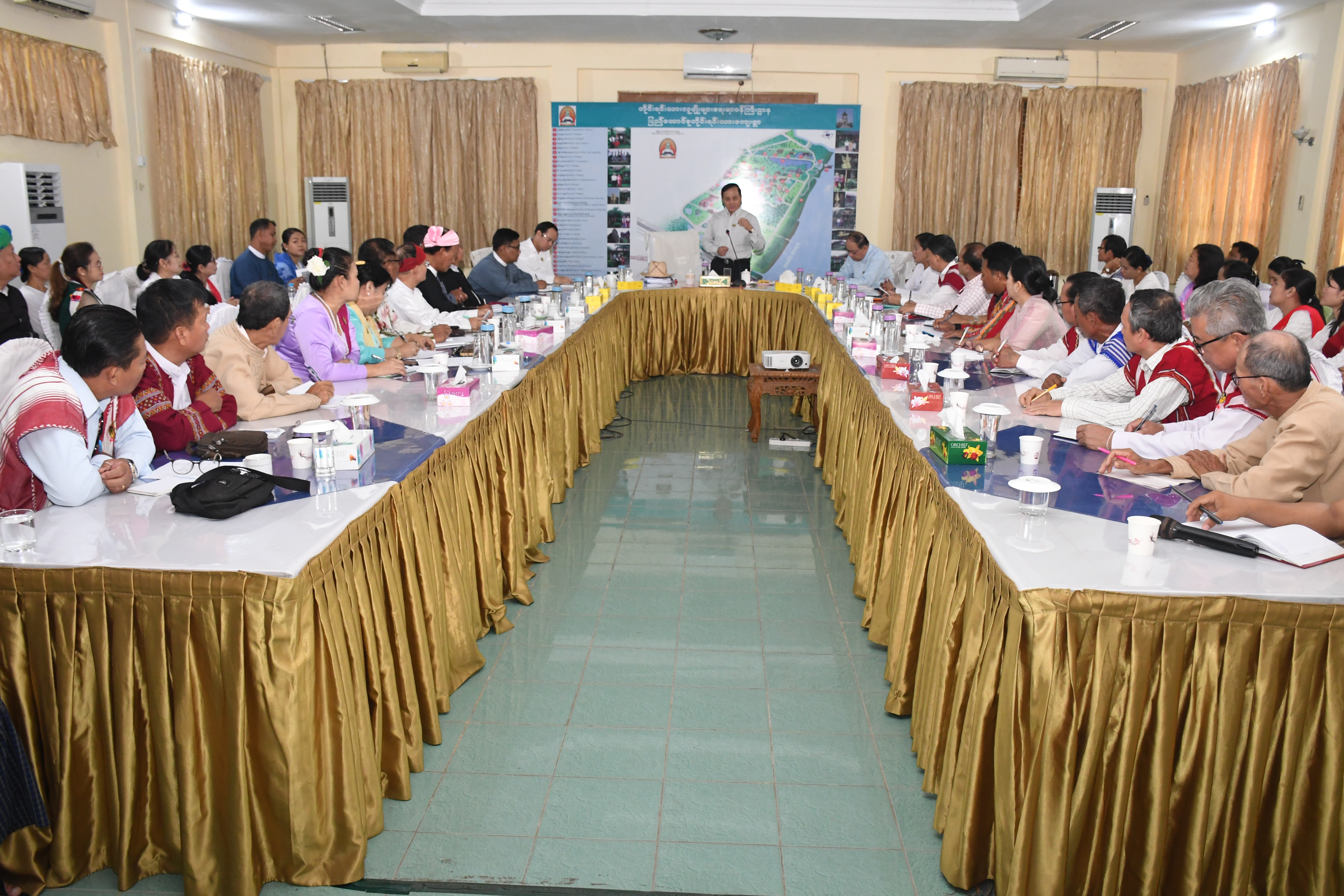 နှစ် (၅၀) ပြည့် ရွှေရတု ရခိုင်ပြည်နယ်နေ့ အခမ်းအနားသို့ တက်ရောက်ရန်အတွက် ရခိုင်ပြည်နယ်၊ စစ်တွေမြို့တွင် ရောက်ရှိနေသော တိုင်းရင်းသားလူမျိုးများရေးရာဝန်ကြီးဌာန၊ ပြည်ထောင်စုဝန်ကြီး Jeng Phang နော်တောင်နှင့် ဒုတိယဝန်ကြီး ဦးဇော်အေးမောင်တို့သည် ဒီဇင်ဘာလ (၁၅)ရက်နေ့ နေ့လယ်ပိုင်းတွင် ရခိုင်ပြည်နယ်အစိုးရအဖွဲ့ဝင် တိုင်းရင်းသားရေးရာဝန်ကြီး ဦးတင်လှနှင့် တာဝန်ရှိသူများလိုက်ပါလျက် စစ်တွေမြို့၊ ရခိုင်ပြည်နယ်အစိုးရ ဧည့်ရိပ်သာ၊ အစည်းအဝေးခန်းမ၌ ရခိုင်ပြည်နယ်အတွင်းရှိ တိုင်းရင်းသားစာပေနှင့်ယဉ်ကျေးမှုအသင်းအဖွဲ့များနှင့် တွေ့ဆုံဆွေးနွေးခဲ့ပါသည်။ ပထမဦးစွာ ပြည်ထောင်စုဝန်ကြီး Jeng Phang နော်တောင်က တွေ့ဆုံအမှာစကား ပြောကြားရာတွင် မိမိတို့ဝန်ကြီးဌာနအနေဖြင့် တိုင်းရင်းသားများ၏ စာပေနှင့်ယဉ်ကျေးမှုများကို ထိန်းသိမ်းမြှင့်တင်ခြင်း၊ တိုင်းရင်းသားရေးရာများကိုဆောင်ရွက်ခြင်းနှင့် စစ်မှန်သော မျိုးချစ် စိတ်ဓာတ်ဖြစ်သည့် ပြည်ထောင်စုစိတ်ဓာတ် တိုးတက်ခိုင်မာလာစေရေးအတွက် ကျန်းမာရေး၊ ပညာရေးနှင့် လူမှုစီးပွားဘဝဖွံ့ဖြိုးတိုးတက်စေရန် လုပ်ငန်းတာဝန်များကို နိုင်ငံတော်က ပြဋ္ဌာန်းထားရှိသည့် ဥပဒေ၊ နည်းဥပဒေများနှင့်အညီ ချမှတ်ဆောင်ရွက်လျက်ရှိပါကြောင်း၊ နိုင်ငံတော်စီမံအုပ်ချုပ်ရေးကောင်စီ၏ ဦးတည်ချက် (၉)ရပ်အနက် လူမှုရေးဦးတည်ချက်ပါ “တစ်နိုင်ငံလုံး အသိပညာအတတ်ပညာ မြင့်မားတိုးတက်စေရေး၊ ကုန်ထုတ်လုပ်မှု အထောက်အကူပြု ပညာရှင်များထွန်းကားလာစေရေးတို့အတွက် လူတိုင်းလက်လှမ်းမီသည့် ဘက်စုံ ပညာရေးစနစ်ကို အကောင်အထည်ဖော်ဆောင်ရေး” ဆိုသည့် ဦးတည်ချက်ကို အထောက် အကူပြုစေရန်အတွက် တိုင်းဒေသကြီး/ ပြည်နယ်များတွင် တိုင်းရင်းသားဘာသာ စာပေ သင်ကြားနိုင်စေရန်အတွက် ပညာရေးဝန်ကြီးဌာနနှင့် ပေါင်းစပ်ညှိနှိုင်းဆောင်ရွက်ပေးလျက်ရှိပါကြောင်း၊ တိုင်းရင်းသားစာပေနှင့်ယဉ်ကျေးမှုအသင်းအဖွဲ့များအနေဖြင့် တရားဝင်သတ်မှတ်ချက် ဥပဒေနှင့်အညီ မှတ်ပုံတင်ထားရှိရန်လိုအပ်ပါကြောင်း၊ မိမိတို့ဝန်ကြီးဌာနအနေဖြင့် အသင်းအဖွဲ့ မှတ်ပုံတင်ခြင်းဆိုင်ရာဥပဒေနှင့်အညီ စနစ်တကျ မှတ်ပုံတင်နိုင်ရေးကိစ္စနှင့် တိုင်းရင်းသား များအတွက် တိုက်ရိုက်အကျိုးခံစားရစေမည့်လုပ်ငန်းများကို နိုင်ငံတော်၏ လုံခြုံရေးနှင့် အမျိုးသားအကျိုးစီးပွားတို့ကိုမထိခိုက်စေဘဲ ဥပဒေနှင့်အညီ စိစစ်ဆောင်ရွက်ပေးလျက်ရှိ ပါကြောင်း၊ တိုင်းရင်းသားဒေသများတွင် စီမံကိန်းများ အကောင်အထည်ဖော်ဆောင်ရွက်ရာ၌ မြေလွတ်၊ မြေလပ်၊ မြေရိုင်းများတွင် ဆောင်ရွက်မည့်လုပ်ငန်းများတွင်လည်း တိုင်းရင်းသား များ၏ ရိုးရာယဉ်ကျေးမှုဓလေ့ထုံးတမ်းစဉ်လာအရ သက်ဆိုင်သည