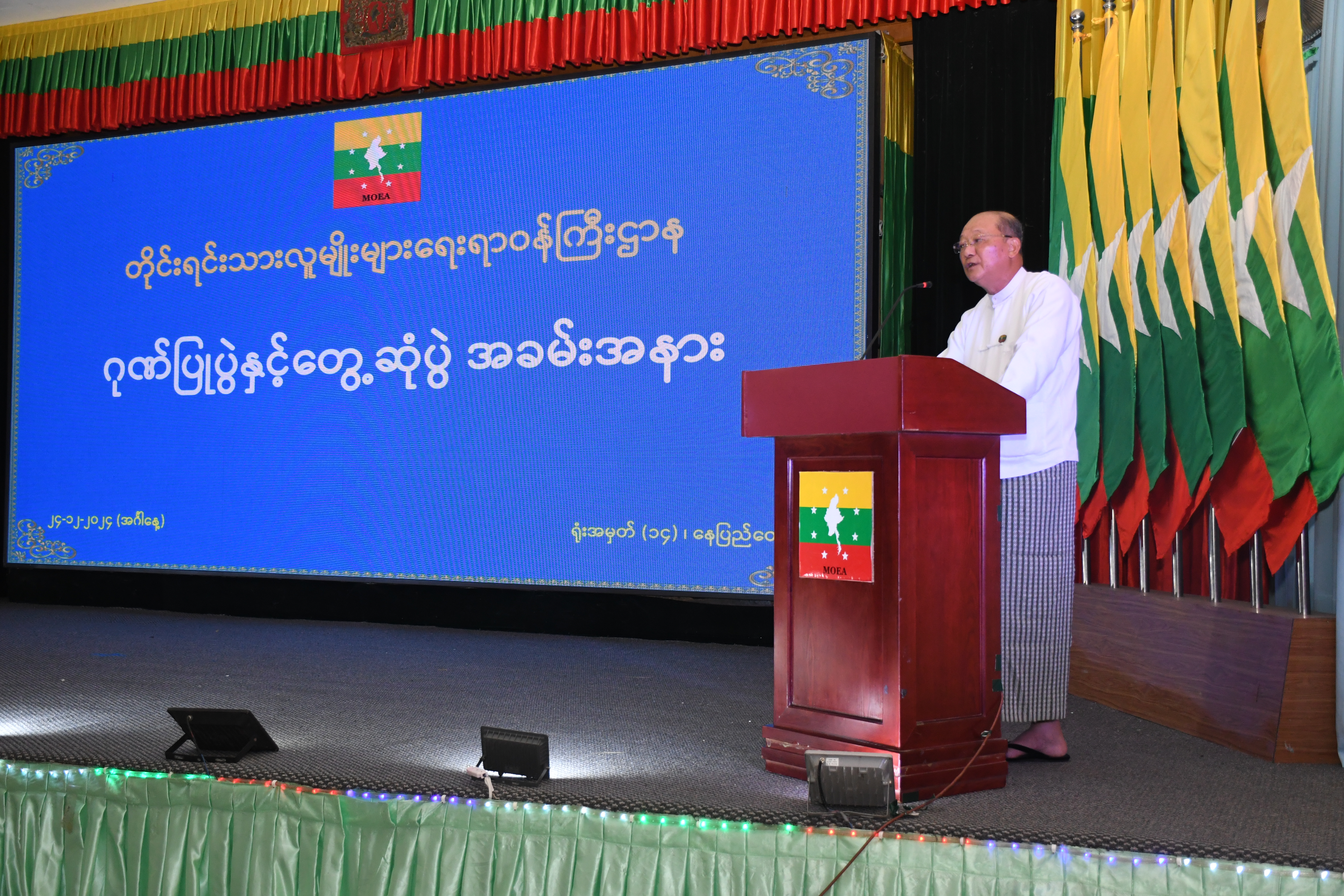 တိုင်းရင်းသားလူမျိုးများရေးရာဝန်ကြီးဌာန၊ ဥပဒေအသိပညာပြန့်ပွားရေးနှင့် စာဖတ်ရှိန် မြှင့်တင်ရေးဖွင့်ပွဲအခမ်းအနားကို တိုင်းရင်းသားလူမျိုးများရေးရာဝန်ကြီးဌာန၊ အစည်းအဝေး ခန်းမ၌ ကျင်းပရာ ပြည်ထောင်စုဝန်ကြီး Jeng Phang နော်တောင်၊ ဒုတိယဝန်ကြီး ဦးဇော်အေးမောင် အမြဲတမ်းအတွင်းဝန်၊ ညွှန်ကြားရေးမှူးချုပ်များ၊ ဒုတိယအမြဲတမ်းအတွင်းဝန်၊ ဒုတိယညွှန်ကြားရေးမှူးချုပ်နှင့် အရာထမ်း၊ အမှုထမ်းများ တက်ရောက်ကြပြီး တိုင်းဒေသကြီးနှင့် ပြည်နယ် ညွှန်ကြားရေးမှူးရုံးများမှ အရာထမ်း၊ အမှုထမ်းများက Online စနစ်ဖြင့် တက်ရောက် ကြပါသည်။ ရှေးဦးစွာ ပြည်ထောင်စုဝန်ကြီးက အဖွင့်အမှာစကားပြောကြားရာတွင် နိုင်ငံတော် အကြီးအကဲ၏ မူဝါဒနှင့်အညီ ဝန်ကြီးဌာနရှိ ဝန်ထမ်းများအနေဖြင့် တည်ဆဲဥပဒေများ၊ နည်းဥပဒေများကို သိရှိနိုင်ရန်နှင့် စာဖတ်ရှိန်မြှင့်တင်နိုင်ရေးအတွက် ယခုအစီအစဉ်ကို ကျင်းပ ပြုလုပ်ရခြင်းဖြစ်ပါကြောင်း၊ ယနေ့ဆွေးနွေးပွဲတွင် ဖွဲ့စည်းပုံအခြေခံဥပဒေ (၂၀၀၈ ခုနှစ်)၊ တိုင်းရင်းသားလူမျိုးများ၏ အခွင့်အရေးကာကွယ်စောင့်ရှောက်သည့်ဥပဒေနှင့် နည်းဥပဒေများကို ရှင်းလင်းဆွေးနွေးမှုများမှ လေ့လာမှတ်သားကြရမည့် အခြေခံအချက်များ ရရှိလာမည်ဖြစ်ပြီး ဆက်လက်၍ လေ့လာနိုင်စေရန် အစပျိုးပေးသည့် အစီအစဉ်လည်းဖြစ်ပါကြောင်း၊ နိုင်ငံ့ဝန်ထမ်း တစ်ဦးအနေဖြင့် မသိမဖြစ်သိရှိရမည့် ဥပဒေ၊ နည်းဥပဒေများကို လေ့လာမှတ်သားရမည်ဖြစ်ပြီး မိမိတို့ဝန်ကြီးဌာနက ကျင့်သုံးလျက်ရှိသော ဥပဒေ၊ နည်းဥပဒေများအပြင် ဆက်စပ်ဆောင်ရွက် ရသည့် အခြားသောဝန်ကြီးဌာနများ၏ ဥပဒေ၊ နည်းဥပဒေများကိုလည်း သိရှိလေ့လာရန် လိုအပ် မည်ဖြစ်ပါကြောင်း၊ ဝန်ထမ်းများအနေဖြင့် မိမိတို့ဆောင်ရွက်ရသည့် လုပ်ငန်းများကို စည်းမျဉ်း စည်းကမ်းများနှင့် ဥပဒေဘောင်အတွင်းမှ ဆောင်ရွက်ရန်၊ ပွင့်လင်းမြင်သာမှုရှိရန်၊ ရာထူး၊ နေရာ အလိုက် စီမံခန့်ခွဲတတ်စေရန်နှင့် ပူးပေါင်းဆောင်ရွက်တတ်စေရန် လိုအပ်ပါကြောင်း၊ နိုင်ငံတော်က ချမှတ်ထားသည့် မူဝါဒများ၊ ထုတ်ပြန်ထားရှိသည့် ဥပဒေ၊ နည်းဥပဒေ၊ စည်းမျဉ်းစည်းကမ်းများ၊ အမိန့်နှင့်ညွှန်ကြားချက်များ၊ လုပ်ထုံးလုပ်နည်းများနှင့်အညီ တိုင်းရင်းသားများ၏ လူမှုစီးပွား ဘဝမြင့်မားတိုးတက်စေရေးအတွက် ဆောင်ရွက်ကြရမည်ဖြစ်ပါကြောင်း၊ ထို့အပြင် စာဖတ်ရှိန် မြှင့်တင်ရေးနှင့်ပတ်သက်၍ ပြောကြားရာတွင် ဗဟုသုတသိမှတ်ဖွယ်ရာများကို လေ့လာဖတ်ရှု မှတ်သားခြင်းသည် ဉာဏ်ရည်ဖွံ့ဖြိုးတိုးတက်မှုကို အထောက်အကူဖြစ်စေပြီး ရသစာပေဖတ်ရှု ခြင်းအားဖြင့် ကိုယ်ချင်းစာစိတ်၊ အပြန်အလှန်လေးစားမှု၊ ယဉ်ကျေးမှု၊ သိမ်မွေ့မှု၊ ညှာတာ သနားစိတ်စသည့် နှလုံးသားအာဟာရများက