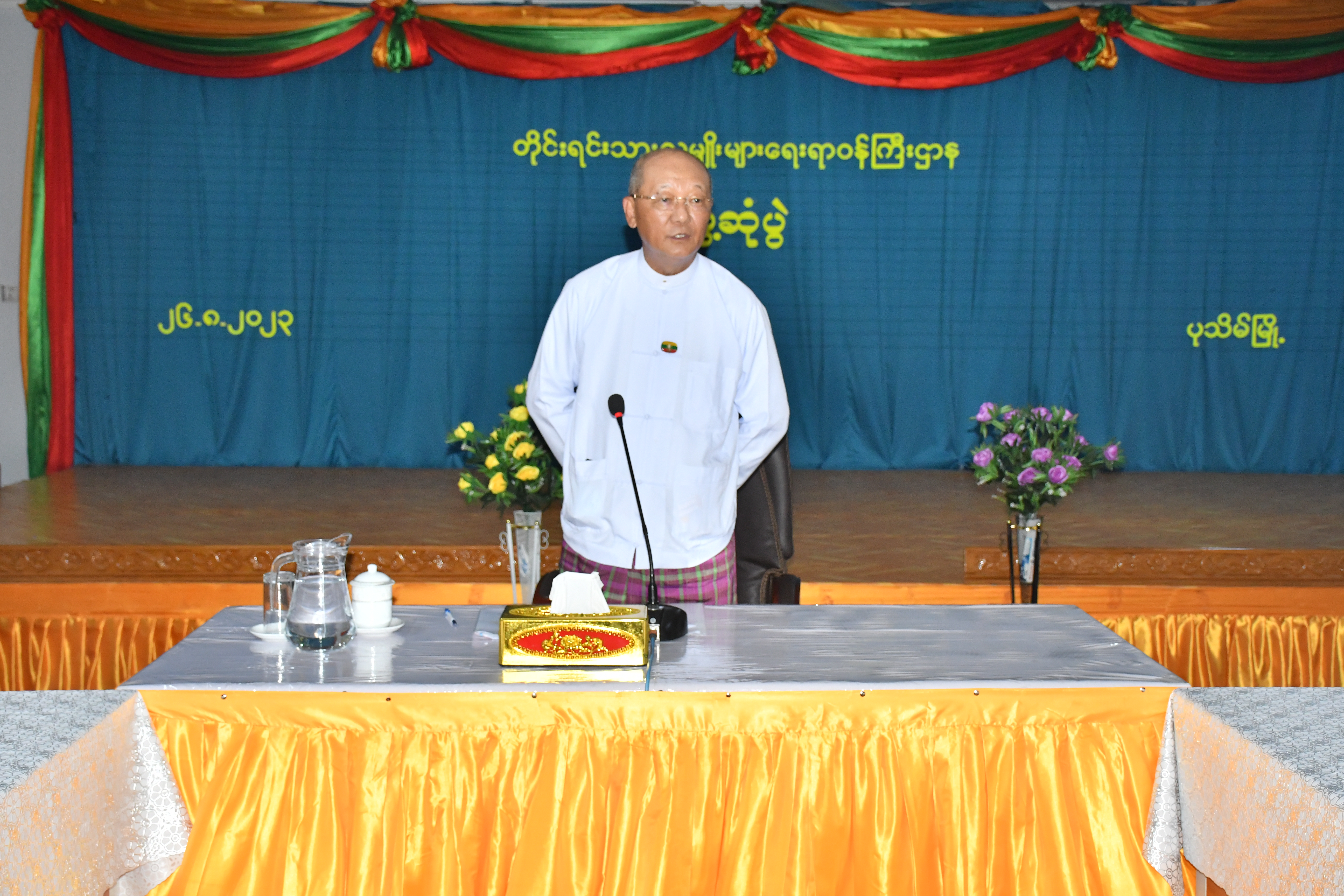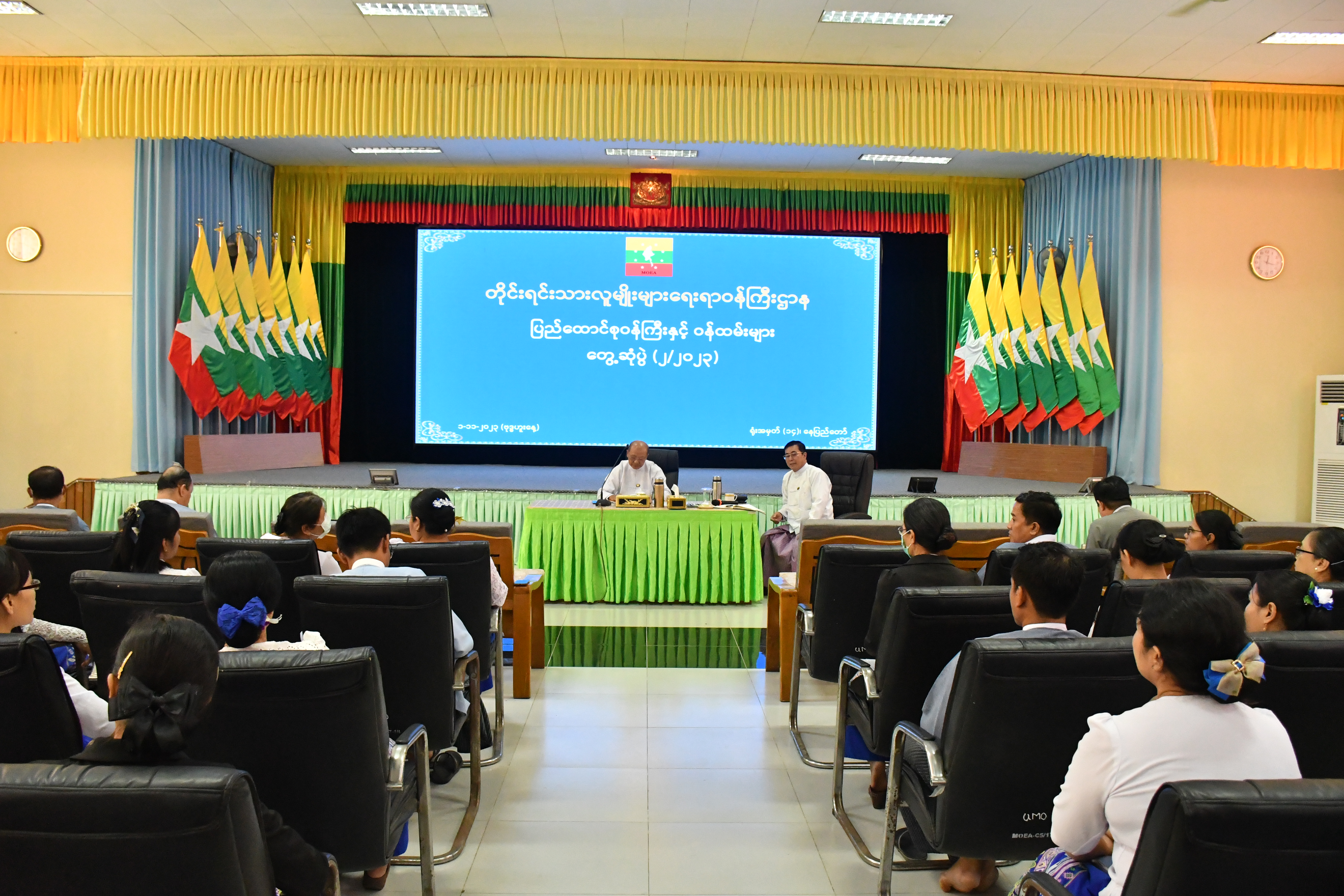 တိုင်းရင်းသားလူမျိုးများရေးရာဝန်ကြီးဌာန ပြည်ထောင်စုဝန်ကြီးနှင့် တိုင်းဒေသကြီး/ ပြည်နယ်ဦးစီးဌာန ညွှန်ကြားရေးမှူးရုံးများမှ တာဝန်ခံအရာရှိများ၏ လုပ်ငန်းညှိနှိုင်း အစည်းအဝေးကို ယနေ့နံနက်ပိုင်းတွင် နေပြည်တော်ရှိ ပြည်ထောင်စုဝန်ကြီးရုံး အစည်းအဝေး ခန်းမ၌ ကျင်းပရာ တိုင်းရင်းသားလူမျိုးများရေးရာဝန်ကြီးဌာန၊ ပြည်ထောင်စုဝန်ကြီး Jeng Phang နော်တောင်၊ ဒုတိယဝန်ကြီး ဦးဇော်အေးမောင်၊ အမြဲတမ်းအတွင်းဝန်၊ ညွှန်ကြားရေး မှူးချုပ်များ၊ ဒုတိယအမြဲတမ်းအတွင်းဝန်၊ ဒုတိယညွှန်ကြားရေးမှူးချုပ်များနှင့် တာဝန်ရှိ သူများ၊ တိုင်းဒေသကြီး/ ပြည်နယ် ဦးစီးဌာနညွှန်ကြားရေးမှူးရုံးများမှ တာဝန်ခံအရာရှိများ တက်ရောက်ခဲ့ကြပါသည်။ ရှေးဦးစွာ ပြည်ထောင်စုဝန်ကြီး Jeng Phang နော်တောင်က အဖွင့်အမှာစကား ပြောကြားရာတွင် လုပ်ငန်းညှိနှိုင်းအစည်းအဝေး ပြုလုပ်ရခြင်းမှာ တိုင်းဒေသကြီး/ ပြည်နယ် ဦးစီးဌာန ညွှန်ကြားရေးမှူးရုံးများမှ တာဝန်ခံအရာရှိများက တင်ပြလာသည့် လုပ်ငန်း ဆောင်ရွက်ချက်များအပေါ်မူတည်၍ တိုင်းဒေသကြီး/ ပြည်နယ်များရှိ တိုင်းရင်းသားများ၏ လူမှုစီးပွားဘဝ ဖွံ့ဖြိုးတိုးတက်စေရေးအတွက် ရှေ့ဆက်ဆောင်ရွက်ရမည့်ကိစ္စရပ်တို့ကို ညှိနှိုင်းဆွေးနွေးကြရန်ဖြစ်ပါကြောင်း၊ တိုင်းဒေသကြီး/ ပြည်နယ် တာဝန်ခံများ၏ လုပ်ငန်း စွမ်းဆောင်ရည်သည် လွန်စွာအရေးကြီးပြီး မိမိတို့ဝန်ကြီးဌာန၏ မျှော်မှန်းချက်၊ ရည်မှန်းချက် များနှင့်အညီ တိုင်းဒေသကြီး/ ပြည်နယ်များ၏ နယ်မြေအခြေအနေအလိုက် ဖြစ်ပေါ်လာ နိုင်သည့် တိုင်းရင်းသားရေးရာကိစ္စများကို လိမ္မာပါးနပ်စွာ၊ ခေါင်းဆောင်မှု အရည်အချင်း ပြည့်ဝစွာဖြင့် ဖြေရှင်းဆောင်ရွက်ကြရန်ဖြစ်ပါကြောင်း၊ မိမိတို့ဌာနအလိုက် လုပ်ငန်း ဆောင်ရွက်ချက်များအပေါ် အားနည်းချက်၊ အားသာချက်များကို ပြန်လည်သုံးသပ်ပြီး ပြင်ဆင် သင့်သည်များကို ပြင်ဆင်သွားကြရန် ဖြစ်ပါကြောင်းနှင့် မိမိတို့ဝန်ကြီးဌာနသည် နှီးနွယ်ဝန်ကြီး ဌာနများ၊ တိုင်းဒေသကြီး/ ပြည်နယ် အစိုးရအဖွဲ့များနှင့် တိုင်းရင်းသားရေးရာကိစ္စရပ်များကို ပူးပေါင်းဆောင်ရွက်လျက်ရှိပြီး တိုင်းဒေသကြီး/ ပြည်နယ် တာဝန်ခံများအနေဖြင့် နိုင်ငံတော်မှ ပြဌာန်းထားရှိသည့် ဌာနဆိုင်ရာ လုပ်ထုံး လုပ်နည်းများ၊ ဘဏ္ဍာရေးဆိုင်ရာ စည်းမျဉ်း စည်းကမ်းများအပြင် နိုင်ငံ့ဝန်ထမ်းဥပဒေ၊ နည်းဥပဒေနှင့် နိုင်ငံ့ဝန်ထမ်းများ လိုက်နာရမည့် ကျင့်ဝတ် (၃၀)ပါးနှင့် နိုင်ငံ့ဝန်ထမ်းသစ္စာအဓိဋ္ဌာန် (၆) ချက်တို့ကို စောင့်ထိန်းလိုက်နာပြီး မိမိတို့၏ ရှေ့လုပ်ငန်းစဉ် လုပ်ငန်းတာဝန်များကို စစ်မှန်သော ပြည်ထောင်စုစိတ်ဓာတ်ကို ခံယူလျက် ကျရာကဏ္ဍမှ အစွမ်းကုန်ကြိုးပမ်း ဆောင်ရွက်က