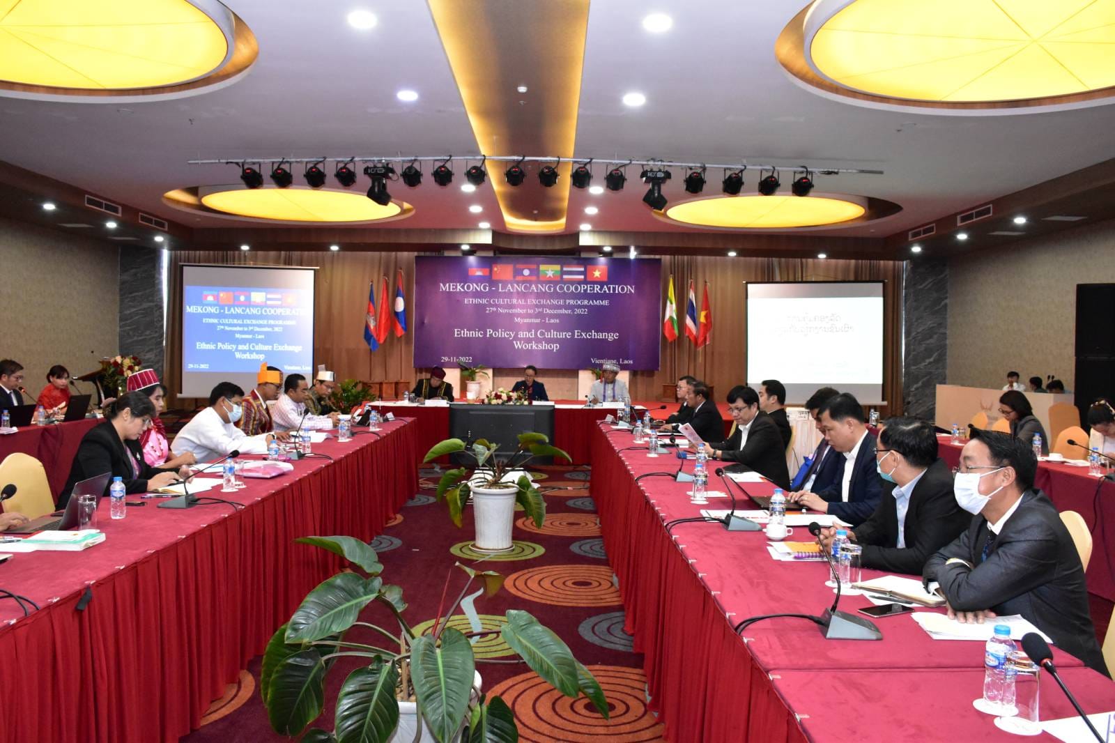 ၂၉-၁၁-၂၀၂၂ ရက်နေ့၊ နံနက်(၁ဝးဝဝ)နာရီ၌ လာအိုပြည်သူ့ဒီမိုကရက်တစ်သမ္မတနိုင်ငံ၊ Vientiane မြို့ရှိ Muong Thanh Hotel ၊ အစည်းအဝေးခန်းမတွင် မဲခေါင်-လန်ချန်းပူးပေါင်း ဆောင်ရွက်မှု အစီအစဉ်အရ ကျင်းပပြုလုပ်သည့် တိုင်းရင်းသားရေးရာယဉ်ကျေးမှုဆိုင်ရာ နှီးနှောဖလှယ်ပွဲကို ဆက်လက်ကျင်းပခဲ့ရာ ပြည်ထဲရေးဝန်ကြီးဌာန ဒုတိယဝန်ကြီး Mme.Livong Laoly က တက်ရောက်ခဲ့ပြီး အဖွင့်အမှာစကားပြောကြားရာတွင် လာအိုနိုင်ငံသို့ လာရောက်သည့်မြန်မာကိုယ်စားလှယ်အဖွဲ့ကို ဝမ်းမြောက်နွေးထွေးစွာကြိုဆိုပါကြောင်း၊ တိုင်းရင်းသားရေးရာ ယဉ်ကျေးမှုဖလှယ်ရေးအစီအစဉ်ကို မြန်မာနှင့်လာအိုတို့ ပထမဆုံးဆောင်ရွက်ကြခြင်းဖြစ်ပါကြောင်း၊ တိုင်းရင်းသားရေးရာကိစ္စသည် နိုင်ငံတော်အတွက်လည်း အရေးကြီးသည့်ကိစ္စဖြစ်ပါကြောင်း၊ ယခုလိုနှစ်နိုင်ငံတိုင်းရင်းသားရေးရာဆိုင်ရာ အတွေ့အကြုံများကို နှစ်ဖက်ဖလှယ်နိုင်၍ မဲခေါင်ဒေသအတွင်းချစ်ကြည်ရင်းနှီးနားလည်မှုများ တိုးပွားလာနိုင်မည်ဟုမျှော်လင့်ပါကြောင်းပြောကြားခဲ့ပါသည်။တိုင်းရင်းသားလူမျိုးများရေးရာဝန်ကြီးဌာန၊ ဒုတိယဝန်ကြီး ဦးဇော်အေးမောင်က အဖွင့်အမှာစကားပြောကြားရာတွင် မြန်မာနိုင်ငံ၏ ဖွဲ့စည်းပုံအခြေခံဥပဒေ ၂၀၀၈ နိုင်ငံတော်၏အခြေခံမူတွင် တိုင်းရင်းသားများအရေးကို ထည့်သွင်းဖော်ပြထားပါကြောင်း၊ ထိုအခြေခံမူအရ တိုင်းရင်းသားလူမျိုးများ၏အခွင့်အရေးများကာကွယ်စောင့်ရှောက်သည့်ဥပဒေကို၂၀၁၅ ခုနှစ်တွင် ပြဋ္ဌာန်းခဲ့ပြီး ယင်းဥပဒေအရ တိုင်းရင်းသားလူမျိုးများရေးရာဝန်ကြီးဌာနကို ၂၀၁၆ခုနှစ်တွင့်ဖွဲ့စည်းခဲ့ပါကြောင်း၊ နည်းဥပဒေကို ၂၀၁၉ခုနှစ်တွင်ထုတ်ပြန်နိုင်ခဲ့ပါကြောင်း၊ မိမိတို့ဝန်ကြီးဌာနသည်သက်တမ်းအားဖြင့် ၆ နှစ်ခန့်သာရှိသေးသည့်အတွက် မူဝါဒနှင့်အတွေ့အကြုံများကို ဖလှယ်နိုင်ရေး ယခုကဲ့သို့ အစီအစဉ်ကို မဲခေါင်-လျန်ချန်းပူးပေါင်းဆောင်ရွက်ရေးအထူးရန်ပုံငွေ ၂၀၂၀ဖြင့် ဆောင်ရွက်ခြင်းဖြစ်ပါကြောင်း၊ နှစ်နိုင်ငံ၏ တူညီသောတိုင်းရင်းသားယဉ်ကျေးမှုများနှင့် ရေးရာကိစ္စများကို အမြင်ခြင်းဖလှယ်ပြီး နောင်အနာဂါတ်တွင်ပိုမိုပူးပေါင်းဆောင်ရွက်နိုင်ပြီး ရင်းနှီချစ်ကြည်သည့် ကွန်ယက်ကိုတည်ထောင်နိုင်ရန်မျှော်လင့်ပါကြောင်းပြောကြားခဲ့ပါသည်။၎င်းနောက် ဆွေးနွေးပွဲကိုဆက်လက်ကျင်းပရာ လာအိုနိုင်ငံ၊ ပြည်ထဲရေးဝန်ကြီးဌာန ၊ တိုင်းရင်းသားနှင့်သာသနာရေးရာဌာန(Department of Ethnic and Religious Affairs)၊ ညွှန်ကြားရေးမှူးချုပ် Mr. Sosonephith Phanouvong က “လာအိုနိုင်ငံ၏ တိုင်းရင်းသား မျိုးနွယ်စုများနှင့်ယဉ်ကျေးမှုများ” ခေါင်းစဉ်ဖြင့် လည်းကောင်း၊ တိုင်းရင်းသားလူမျိုးများရေးရာ ဝန်ကြီးဌာန၊ ပြည်ထောင်စုဝန်ကြီးရုံးမှ လက်ထောက်အတွင်းဝန် ဦး