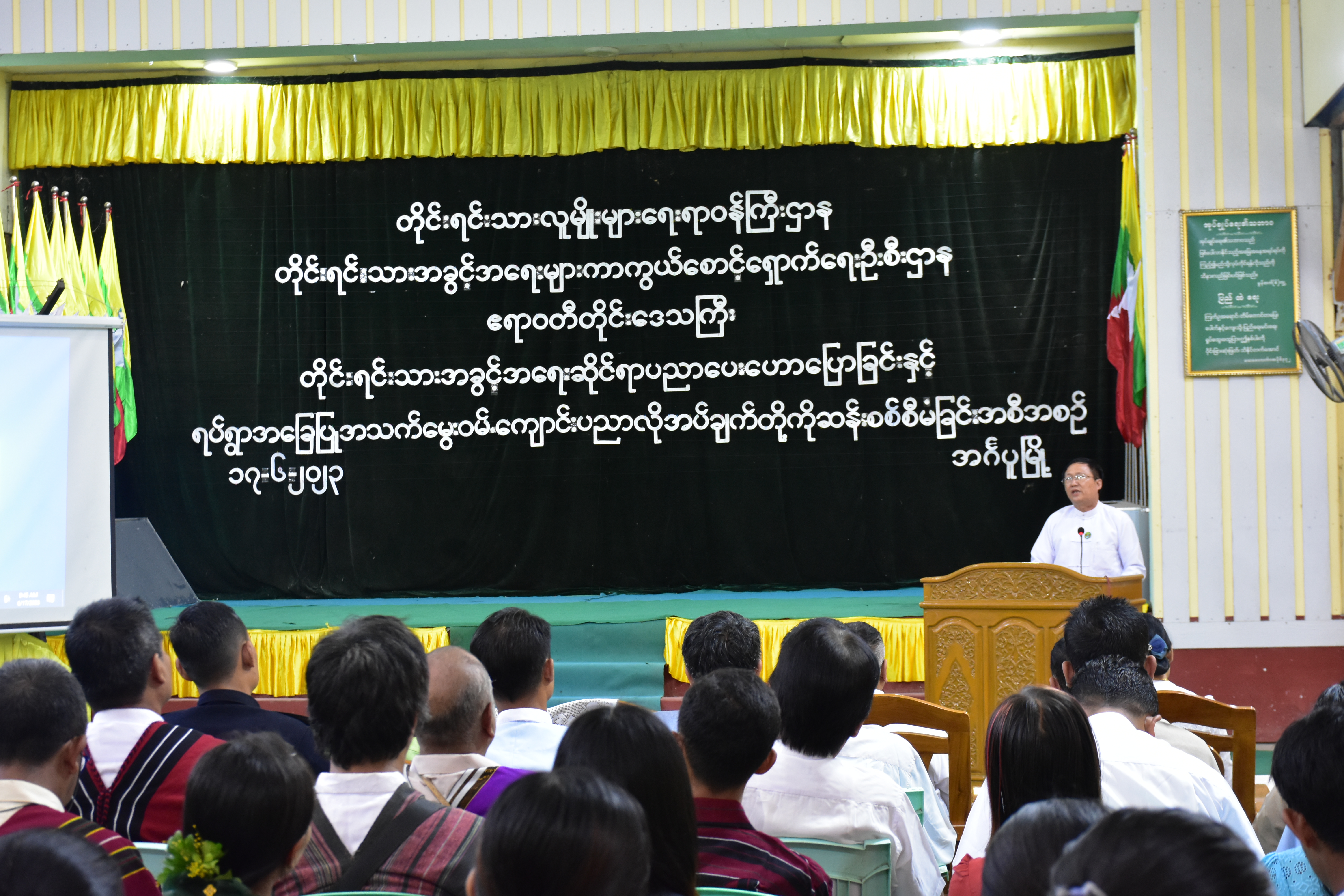 တိုင်းရင်းသားများအား ဥပဒေဆိုင်ရာအသိပညာဗဟုသုတများ ရရှိစေရန်ရည်ရွယ်၍ ဥပဒေအသိပညာပေးဟောပြောပွဲအခမ်းအနားကို ဇူလိုင်လ (၆) ရက်နေ့နံနက်ပိုင်းကထားဝယ်မြို့၊ တိုင်းရင်းသားလူမျိုးများရေးရာဝန်ကြီးဌာန၊ တနင်္သာရီတိုင်းဒေသကြီး ညွှန်ကြားရေးမှူးရုံး၌ ကျင်းပပြုလုပ်ခဲ့ပါသည်။အခမ်းအနားတွင် တိုင်းရင်းသားရေးရာဝန်ကြီး ဦးစောမာတင်လူသာက တိုင်းရင်းသားများအား ဥပဒေ ဆိုင်ရာအသိပညာများ ကျယ်ကျယ်ပြန့်ပြန့်သိရှိစေရန်နှင့် လူမှုစီးပွားဘဝများ မြင့်မားတိုးတက်လာစေရန် အတွက် ဥပဒေဆိုင်ရာသိမှတ်ဖွယ်ရာများကို လာရောက်ပို့ချပေးပါသော တိုင်းဒေသကြီးဥပဒေချုပ်ရုံးမှဥပဒေပညာရှင်များအား အထူးပင်ကျေးဇူးတင်ရှိပါကြောင်း၊ တိုင်းရင်းသားကိုယ်စားလှယ်များကလည်း စိတ်ပါဝင်စားစွာ တက်ရောက်ကြသည့်အတွက် ဝမ်းသာပီတိဖြစ်ရပါကြောင်း၊ ဆွေးနွေးပွဲမှ ရရှိလာသည့် အသိပညာဗဟုသုတများကို မိမိတို့ရပ်ရွာ၊ မိမိတို့ဒေသရှိ တိုင်းရင်းသားလူမျိုးများအား ပြန်လည်မျှဝေပြီး နိုင်ငံ့အကျိုးအတွက် ဝိုင်းဝန်းကြိုးပမ်းဆောင်ရွက်ကြရန် လိုအပ်ပါကြောင်း ပြောကြားခဲ့ပါသည်။ဆက်လက်ပြီး ဆွေးနွေးပွဲတွင် ဖွဲ့စည်းပုံအခြေခံဥပဒေ (၂၀၀၈) ခုနှစ်၊ တစ်လင်တစ်မယားစနစ်ကျင့်သုံးခြင်း ဆိုင်ရာဥပဒေ၊ ရာဇသတ်ကြီး၊ ဥပဒေဆိုင်ရာသိမှတ်ဖွယ်ရာနှင့်အထွေထွေ၊ တိုင်းရင်းသားလူမျိုးများ၏ အခွင့်အရေးကာကွယ်စောင့်ရှောက်သည့်ဥပဒေ၊ လယ်ယာမြေဥပဒေ၊ မူးယစ်ဆေးဝါးနှင့်စိတ်ကိုပြောင်းလဲ စေသော ဆေးဝါးများဆိုင်ရာဥပဒေ စသည့်အကြောင်းအရာများကို ဥပဒေပညာရှင်များမှ ဟောပြောပို့ချ ခဲ့ကြပါသည်။ ထို့နောက် တက်ရောက်လာသည့် တိုင်းရင်းသားများမှ သိရှိလိုသည်များကိုမေးမြန်းဆွေးနွေးခဲ့ကြပြီးဥပဒေပညာရှင်များက ပြန်လည်ဖြေကြားပေးခဲ့ပါသည်။ ၎င်းနောက် တက်ရောက်လာကြသူများနှင့် စုပေါင်းမှတ်တမ်းဓါတ်ပုံရိုက်ကူးပြီး အခမ်းအနားကို ရုပ်သိမ်းခဲ့ကြောင်း သတင်းရရှိပါသည်။