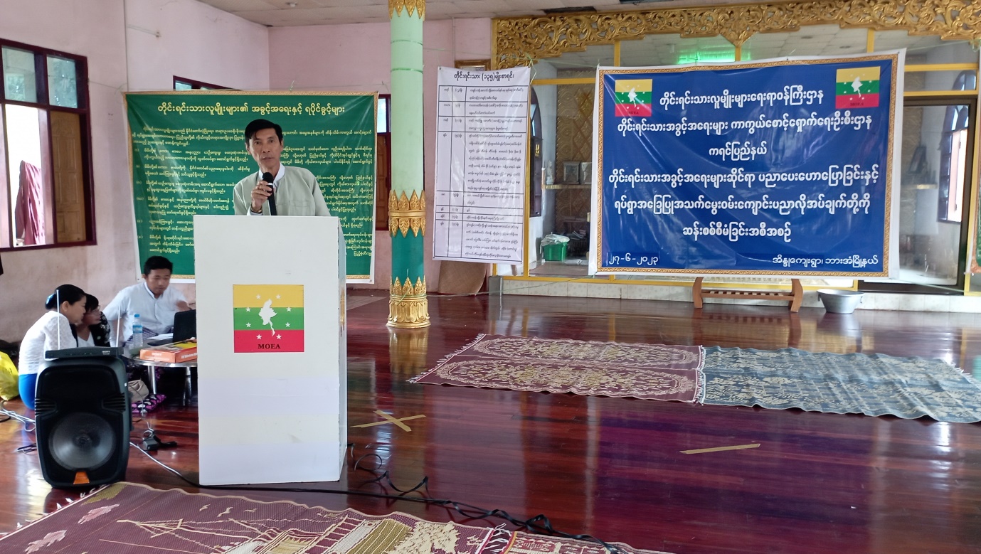 တိုင်းရင်းသားအခွင့်အရေးများကာကွယ်စောင့်ရှောက်ရေးဦးစီးဌာန၊ ဧရာဝတီတိုင်းဒေသကြီး၊ ညွှန်ကြားရေးမှူးရုံးက ဉီးဆောင်၍ “တိုင်းရင်းသားအခွင့်အရေးဆိုင်ရာ အသိပညာပေးဟောပြောခြင်းနှင့် ရပ်ရွာအခြေပြုအသက်မွေးဝမ်းကျောင်း ပညာလိုအပ်ချက်တို့ကို ဆန်းစစ်စီမံခြင်းအစီအစဉ်”ကို ၂၀၂၃ ခုနှစ်၊ ဇွန်လ ၂၄ ရက်နေ့တွင် ဧရာဝတီတိုင်းဒေသကြီး၊ လပွတ္တာခရိုင်၊ မော်လမြိုင်ကျွန်းမြို့၊ မြို့နယ် အထွေထွေအုပ်ချုပ်ရေးဦးစီးဌာန၊ အစည်းအဝေးခန်းမ၌ ကျင်းပပြုလုပ်ခဲ့ပါသည်။ အခမ်းအနားတွင် တိုင်းရင်းသားရေးရာဝန်ကြီး ဦးစောလင်းခယ်က အဖွင့်အမှာစကား ပြောကြား ခဲ့ပြီး လပွတ္တာခရိုင်အုပ်ချုပ်ရေးမှူး ဦးဇော်မျိုးညွန့်က မိတ်ဆက်စကားပြောကြားခဲ့ပါသည်။ ဆက်လက်၍ တိုင်းရင်းသားအခွင့်အရေးများကာကွယ်စောင့်ရှောက်ရေးဦးစီးဌာန၊ ဧရာဝတီတိုင်းဒေသကြီး၊ ညွှန်ကြား ရေးမှူးရုံးမှ ဒုတိယညွှန်ကြားရေးမှူး ဒေါ်စန်းက ဝန်ကြီးဌာနပေါ်ပေါက်လာပုံ၊ တိုင်းရင်းသားလူမျိုးများ ၏အခွင့်အရေးကာကွယ်စောင့်ရှောက်သည့် ဥပဒေ၊ နည်းဥပဒေများအကြောင်း၊ စစ်တမ်းကောက်ယူရ သည့် ရည်ရွယ်ချက်တို့ကိုလည်းကောင်း၊ လူမှုဝန်ထမ်းဦးစီးဌာန၊ တိုင်းဦးစီးမှူးရုံးမှ ဒုတိယညွှန်ကြားရေး မှူး ဒေါ်မိုးမိုးမင်းက အမျိုးသမီးအခွင့်အရေး၊ ကလေးသူငယ်အခွင့်အရေး၊ မသန်စွမ်းအခွင့်အရေးများနှင့် လူမှုရေးရာကိစ္စရပ်များကိုလည်းကောင်း၊ တိုင်းရင်းသားစာပေနှင့်ယဉ်ကျေးမှုဦးစီးဌာန၊ ဧရာဝတီတိုင်း ဒေသကြီး၊ ညွှန်ကြားရေးမှူးရုံးမှ လက်ထောက်ညွှန်ကြားရေးမှူး နန့်အေးအေးအောင်က ဦးစီးဌာန၏ လုပ်ငန်းဆောင်ရွက်ချက်များနှင့် TA/LT ခန့်ထားခြင်းဆိုင်ရာကိစ္စရပ်များကိုလည်းကောင်း အသိပညာ ပေးဟောပြောခဲ့ပါသည်။ ထို့နောက် တိုင်းရင်းသားအခွင့်အရေးများကာကွယ်စောင့်ရှောက်ရေးဦးစီးဌာန၊ ဧရာဝတီတိုင်း ဒေသကြီး၊ ညွှန်ကြားရေးမှူးရုံးမှ ဦးစီးအရာရှိ ဦးမြင့်မောင်မောင်က နိုင်ငံသားအခွင့်အရေး၊ တိုင်းရင်းသား များ၏ ဝိသေသရှေ့ဆောင် စကားလုံးများမှန်ကန်စွာ ရေးသွင်းဆောင်ရွက်နိုင်ရေး၊ အမုန်းစကားနှင့် အကြမ်းဖက်မှုဖြစ်စေရန် လှုံ့ဆော်မှုကို တားဆီးရေးဆိုင်ရာကိစ္စရပ်များ၊ လူမျိုးပြုန်းတီးမှု တားဆီးရေးနှင့် ပြစ်ဒဏ်ပေးရေး နိုင်ငံတကာသဘောတူစာချုပ်ပါ လိုက်နာဆောင်ရွက်ရန် အချက်များကို ရှင်းလင်း ပြောကြားခဲ့ပြီး စိုက်ပျိုးရေးဦးစီးဌာန၊ မော်လမြိုင်ကျွန်းမြို့နယ်ဦးစီးမှူး ဦးမောင်မောင်သွင်က စပါးသီးနှံ အထွက်တိုးစေရေးနှင့် ပိုးမွှားရောဂါကာကွယ်ရေးဆိုင်ရာ ကိစ္စရပ်များကိုလည်းကောင်း၊ မွေးမြူရေးနှင့် ကုသရေးဦးစီးဌာန၊ မော်လမြိုင်ကျွန်းမြို့နယ်ဦးစီးမှူး ဒေါက်တာဖြူဖြူဝင်းက တိုင်းရင်းကြက်မွေ