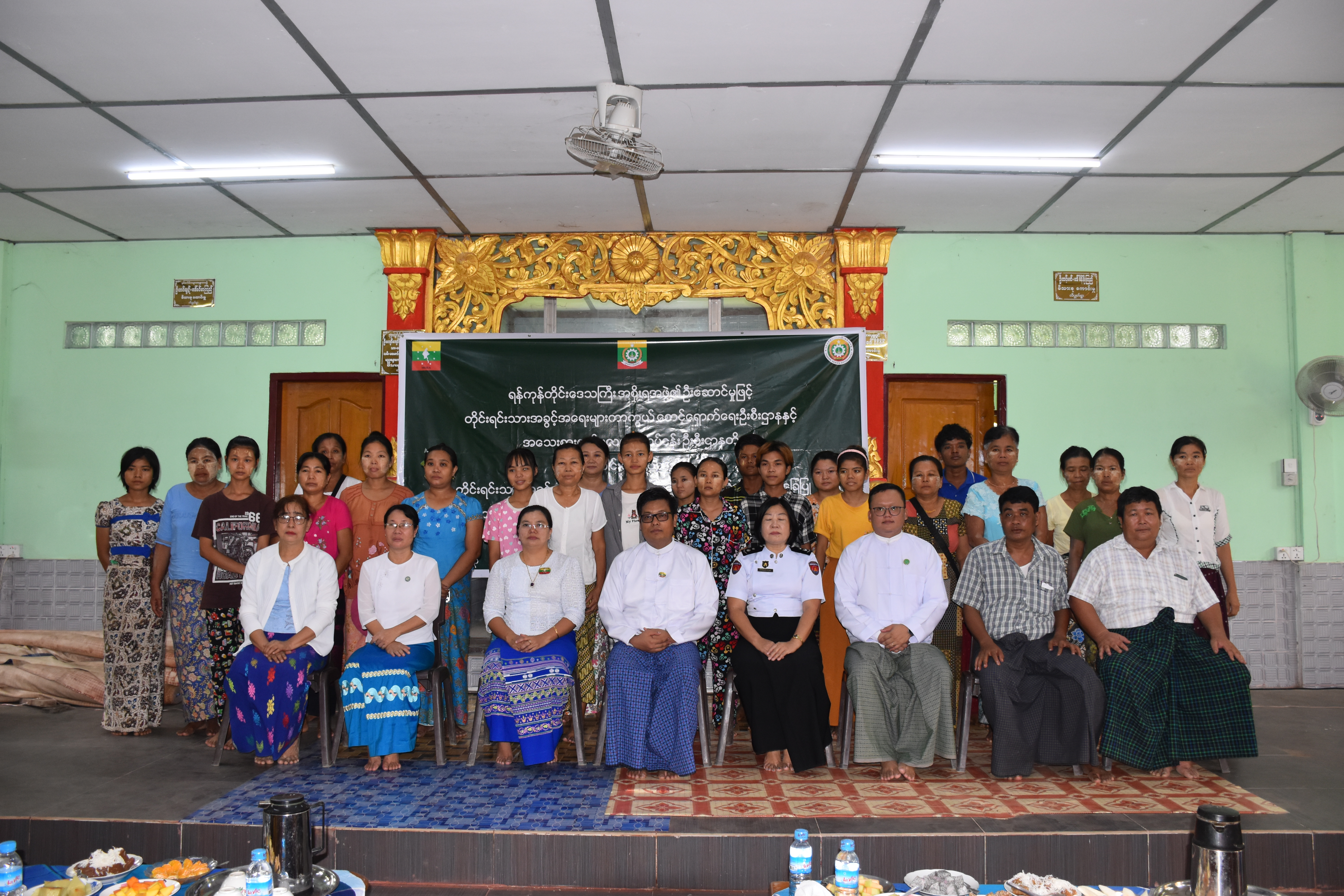 ရန်ကုန်တိုင်းဒေသကြီးအစိုးရအဖွဲ့၊ တိုင်းရင်းသားရေးရာဝန်ကြီး ဦးဆောင်၍ တိုင်းရင်းသား အခွင့်အရေးများကာကွယ်စောင့်ရှောက်ရေးဦးစီးဌာန၊ ရန်ကုန်တိုင်းဒေသကြီး၊ ညွှန်ကြားရေးမှူးရုံးမှ ကြီးမှူးကျင်းပသော “တိုင်းရင်းသားအခွင့်အရေးဆိုင်ရာအသိ ပညာပေးဟောပြောခြင်းနှင့် ရပ်ရွာ အခြေပြုအသက်မွေးဝမ်းကျောင်းပညာ လိုအပ်ချက်တို့ကို ဆန်းစစ်စီမံခြင်း အစီအစဉ်”နှင့် “ဆပ်ပြာရည်၊ ခေါင်းလျှော်ရည်၊ ဆပ်ပြာခဲ၊ လက်သန့်ဆေးရည် လူသုံးကုန်ထုတ်လုပ်မှုနည်း ပညာသင်တန်းဖွင့်ပွဲအခမ်းအနား”ကို (၃၀-၆-၂၀၂၃) ရက်နေ့တွင် ရန်ကုန်တိုင်းဒေသကြီး၊ မှော်ဘီမြို့ နယ်၊ လိပ္ပုတ်ကျေးရွာ၊ ဓမ္မာရုံ၌ ကျင်းပပြုလုပ်ခဲ့ပါသည်။ အခမ်းအနားတွင် ရန်ကုန်တိုင်းဒေသကြီး တိုင်းရင်းသားစာပေနှင့်ယဉ်ကျေးမှုဦးစီးဌာန၊ ညွှန်ကြားရေးမှူးရုံးမှ ညွှန်ကြားရေးမှူး ဦးပြေဟိန်းနိုင်က တိုင်းရင်းသားလူမျိုးများရေးရာဝန်ကြီး ဌာနအကြောင်း မိတ်ဆက်ခြင်း၊ တိုင်းရင်းသားဘာသာသင် TA/LT ဆရာများခန့်ထားခြင်းဆိုင်ရာ ကိစ္စရပ်များကိုလည်းကောင်း၊ တိုင်းရင်းသားအခွင့်အရေးများကာကွယ်စောင့်ရှောက်ရေးဦးစီးဌာနမှ ဒုတိယညွှန်ကြားရေးမှူး၊ ဒေါ်ဖြူဖြူဝင်းက တိုင်းရင်းသားလူမျိုးများ၏ အခွင့်အရေးကာကွယ်စောင့် ရှောက်သည့်ဥပဒေ၊ နည်းဥပဒေများအကြောင်း၊ စစ်တမ်းများကောက်ယူရခြင်း ရည်ရွယ်ချက်များ ကိုလည်းကောင်း ရှင်းလင်းပြောကြားခဲ့ပါသည်။ဆက်လက်၍ လူဝင်မှုကြီးကြပ်ရေးနှင့် ပြည်သူ့အင်အားဝန်ကြီးဌာနမှ မြောက်ပိုင်းခရိုင်မှူး ဒေါ်ဉမ္မာညွှန့်က လူဝင်မှုကြီးကြပ်ရေးဦးစီးဌာန၏ လုပ်ငန်းဆောင်ရွက်နေမှု အခြေအနေများအား လည်းကောင်း၊ လူမှုဝန်ထမ်းဦးစီးဌာန၊ လက်ထောက်ညွှန်ကြားရေးမှူး၊ ဒေါ်ခင်စန်းမြင့်က လူမှုဝန် ထမ်းဦးစီးဌာနမှ ဖွင့်လှစ်ထားရှိသည့် သင်တန်းကျောင်းများအကြောင်း၊ အမျိုးသမီးအခွင့်အရေး၊ ကလေး သူငယ်အခွင့်အရေးများအကြောင်းတို့ကို ရှင်းလင်းပြောကြားခဲ့ပါသည်။ ထို့နောက် အသေးစား စက်မှုလက်မှုဦးစီးဌာနမှ လက်ထောက်ညွှန်ကြားရေးမှူး၊ ဦးရဲဇော်ထွန်းက အသေးစားစက်မှု လက်မှုဦးစီးဌာန၏ သင်တန်းဖွင့်လှစ်ပေးမှုအခြေအနေနှင့် သင်တန်းဖွင့်လှစ်ရခြင်း၏ ရည်ရွယ် ချက်၊ သင်တန်းတွင် သင်ကြားပေးမည့် အကြောင်းအရာများနှင့် အမျိုးအစားတို့ကို ရှင်းလင်း ပြောကြားခဲ့ပါသည်။ ဆပ်ပြာရည်၊ ခေါင်းလျှော်ရည်၊ ဆပ်ပြာခဲ၊ လက်သန့်ဆေးရည် လူသုံးကုန်ထုတ်လုပ်မှု နည်းပညာသင်တန်းကို သင်တန်းသား(၃)ဦး၊ သင်တန်းသူ(၁၇)ဦး စုစုပေါင်း (၂၀) ဦး တက် ရောက်ကြမည်ဖြစ်ပြီး (၃၀-၆-၂၀၂၃) ရက်နေ့မှ (၄-၇-၂၀၂၃) ရက်နေ့ထိ (၅) ရက်ကြာ စာတွေ့၊ လက်တွေ့ သင်ကြား ပို့ချသွားမည်ဖြစ်ပါသည်။ ဆက်လက်၍ တိုင်းရင်းသားအခွင့်အရေးများကာက