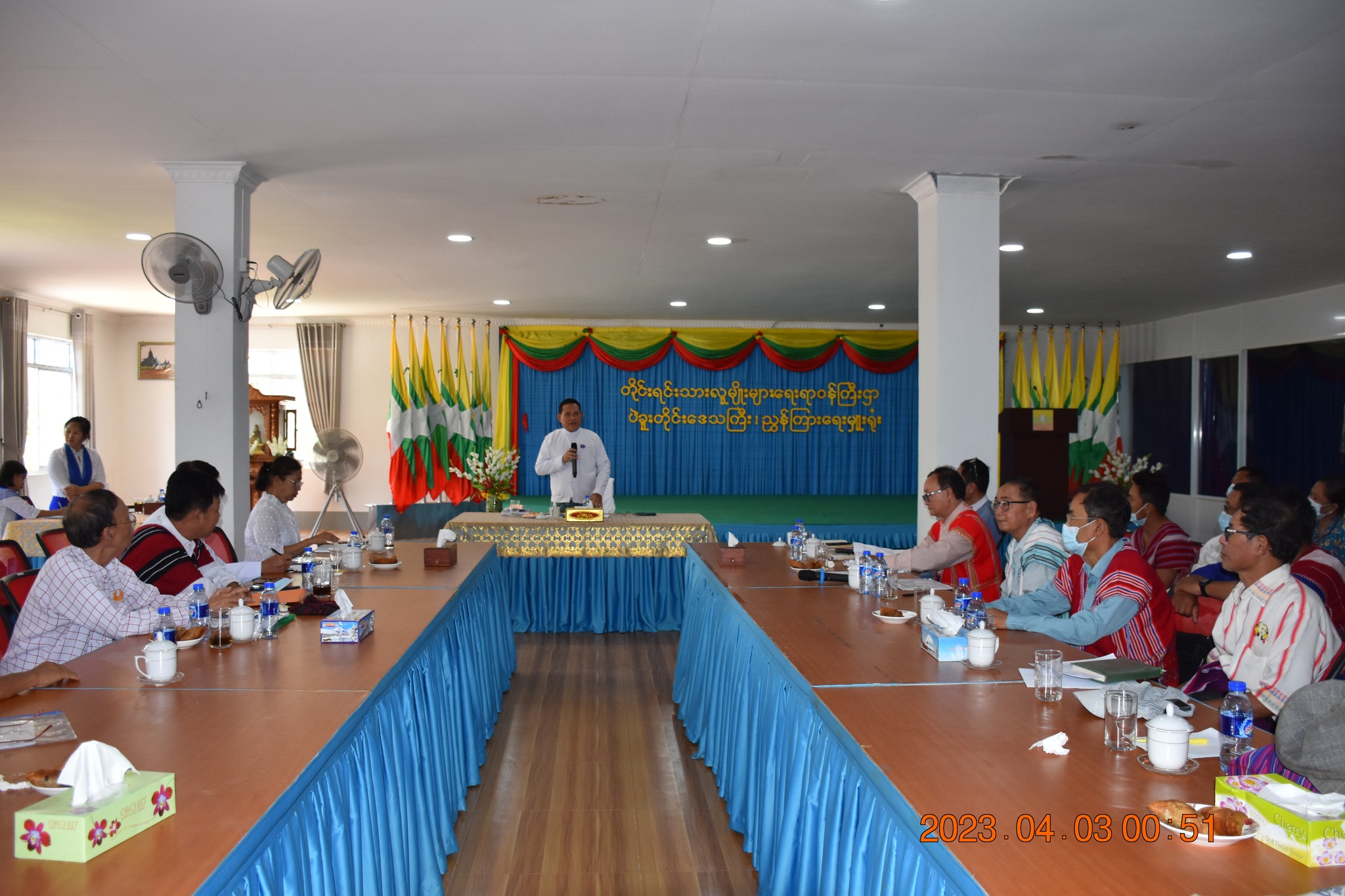တိုင်းရင်းသားလူမျိုးများရေးရာဝန်ကြီးဌာန၊ တိုင်းရင်းသားစာပေနှင့်ယဉ်ကျေးမှုဦးစီးဌာန၊ တိုင်းရင်းသားရေးရာဝန်ကြီး၊ ပဲခူးတိုင်းဒေသကြီး အစိုးရအဖွဲ့နှင့် ပဲခူးတိုင်းဒေသကြီးအတွင်းရှိ တိုင်းရင်းသားစာပေနှင့်ယဉ်ကျေးမှုကော်မတီအဖွဲ့ များတွေ့ဆုံ၍ အခြေခံပညာသင်ကျောင်းများမှ တိုင်းရင်းသားဘာသာစာပေသင် TA/LT ဆရာ/ ဆရာမများနှင့် ကျောင်းသား/ ကျောင်းသူများ အတွက် နွေရာသီမွမ်းမံသင်တန်းများ ပြုလုပ်ဆောင်ရွက်နိုင်ရေး လုပ်ငန်းညှိနှိုင်းအစည်းအဝေးကို ၂၀၂၃ခုနှစ်၊ ဧပြီလ ၃ ရက်နေ့က ပဲခူးတိုင်းဒေသကြီး၊ ညွှန်ကြားရေးမှူးရုံးအပေါ်ထပ် အစည်း အဝေးခန်းမ၌ ကျင်းပပြုလုပ်ခဲ့ပါသည်။ အဆိုပါအခမ်းအနား၌ ပဲခူးတိုင်းဒေသကြီး အစိုးရအဖွဲ့ဝင် တိုင်းရင်းသားရေးရာဝန်ကြီး ဦးစောလင်းအောင်မှ အဖွင့်အမှာစကား ပြောကြားပြီး နွေရာသီမွမ်းမံ သင်တန်းကျင်းပပြုလုပ်ရာတွင် ဆောင်ရွက်ရမည့် လုပ်ငန်းစဉ်အဆင့်ဆင့်ကို လမ်းညွှန်မှာကြား ခဲ့ပါသည်။ ၎င်းနောက် TA/LT ကိစ္စရပ်များနှင့်ပတ်သက်၍ တိုင်းရင်းသားစာပေနှင့်ယဉ်ကျေးမှု ကော်မတီများ၏ မေးမြန်းချက်များကို တာဝန်ရှိသူများက ပြန်လည်ဆွေးနွေးခဲ့ပါသည်။ ဆက်လက်ပြီး တိုင်းဒေသကြီးပညာရေးမှူးရုံးမှ တာဝန်ရှိသူများ၊ ပဲခူးတိုင်းဒေသကြီးအတွင်းရှိ ကရင်(စကော)၊ အရှိုချင်း၊ မွန်၊ ရှမ်း၊ ပအိုဝ်း တိုင်းရင်းသားစာပေနှင့်ယဉ်ကျေးမှုကော်မတီ အဖွဲ့များနှင့် တိုင်းရင်းသားစာပေနှင့်ယဉ်ကျေးမှုဦးစီးဌာနမှ တာဝန်ခံ ညွှန်ကြားရေးမှူးတို့က လိုအပ်သည်များကို ဖြည့်စွက်ဆွေးနွေးခဲ့ကြပြီး အစည်းအဝေးကို ရုတ်သိမ်းခဲ့ပါသည်။