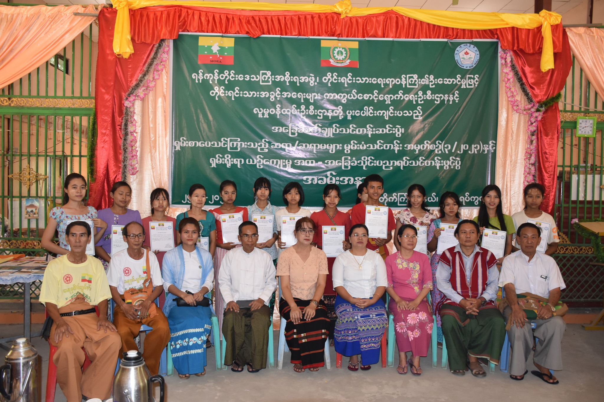 ရန်ကုန်တိုင်းဒေသကြီးအစိုးရအဖွဲ့၊ တိုင်းရင်းသားရေးရာဝန်ကြီး ဦးစောဂျက်ကော့ထူး၏ ဦးဆောင်မှုဖြင့် တိုင်းရင်းသားအခွင့်အရေးများကာကွယ်စောင့်ရှောက်ရေးဦးစီးဌာနနှင့် လူမှုဝန်ထမ်းဦးစီးဌာနတို့ပူးပေါင်းကျင်းပသော “အခြေခံစက်ချုပ်နှင့်မော်တာနင်းသင်တန်း(၁/၂၀၂၃) သင်တန်းဆင်း လက်မှတ်ပေးအပ်ခြင်း” အခမ်းအနားကို (၆-၄-၂၀၂၃) ရက်နေ့နံနက် (၁၀:၀၀) နာရီ အချိန်တွင် တိုက်ကြီးမြို့နယ်၊ သဲဖြူအုပ်စု၊ ကျောင်းစုကျေးရွာ၊ ဘုရားကျောင်းခန်းမ၌ ကျင်းပ ပြုလုပ်ခဲ့ပါသည်။ အခမ်းအနားသို့ တိုင်းရင်းသားလူမျိုးများရေးရာဝန်ကြီးဌာန၊ ရန်ကုန်တိုင်းဒေသကြီး၊ ညွှန်ကြားရေးမှူးရုံးရှိ တိုင်းရင်းသားအခွင့်အရေးများကာကွယ်စောင့်ရှောက်ရေး ဦးစီးဌာနမှ ဒုတိယညွှန်ကြားရေးမှူး၊ လူမှုဝန်ထမ်းဦးစီးဌာနမှ သင်တန်းနည်းပြ၊ ရန်ကုန်တိုင်းဒေသကြီး၊ တိုက်ကြီးမြို့နယ် ကရင်စာပေနှင့် ယဉ်ကျေးမှုအသင်းမှ တာဝန်ရှိပုဂ္ဂိုလ်များနှင့် အဖွဲ့ဝင်များ၊ မှော်ဘီမြို့နယ်အတွင်းရှိ ဒေသခံတိုင်းရင်းသားများနှင့် သင်တန်းသူများအပါအဝင် စုစုပေါင်း (၅၀)ဦး တက်ရောက်ခဲ့ကြပါသည်။ ပထမဦးစွာ တိုင်းရင်းသားအခွင့်အရေးများကာကွယ်စောင့်ရှောက်ရေးဦးစီးဌာနမှ ဒုတိယ ညွှန်ကြားရေးမှူး၊ ဒေါ်ဖြူဖြူဝင်းက တိုင်းရင်းသားအခွင့်အရေးများကာကွယ်စောင့်ရှောက်ရေး ဦးစီးဌာန၏ လုပ်ငန်းတာဝန်များ၊ သင်တန်းဖွင့်လှစ်ပေးသည့်အခြေအနေနှင့် စက်ချုပ်သင်တန်း ဖွင့်လှစ်ပေးရခြင်း၏ ရည်ရွယ်ချက်နှင့် တိုင်းရင်းသားတို့၏ လူမှုစီးပွားဖွံ့ဖြိုးတိုးတက်စေရန်နှင့် အလုပ်အကိုင်အခွင့်အလမ်းများ ရရှိလာစေရေးများတို့ကို ရှင်းလင်းပြောကြားခြင်း၊ ကရင်စာပေနှင့် ယဉ်ကျေးမှု အသင်း၊နာယက ဦးစောတင်စိုးမှ သင်တန်းသူများအား ယနေ့ခတ်တွင် လက်မှု၊စက်မှု အတက်ပညာ များ တက်မြောက်မှုရှိစေရန်နှင့် မည်သည့်အတက်ပညာမဆို တက်မြောက်မှုရှိလျှင် လိုအပ်လာပါက မည်သည့်နေရာ၌မဆို လုပ်ဆောင်နိုင်မည်ဖြစ်ကြောင်း ပြောကြားခြင်း၊ လူမှု ဝန်ထမ်းဦးစီးဌာန၊ လက်ထောက်နည်းပြ ဒေါ်ဆုမွန်ကျော်မှ သင်တန်းသူများအား သင်ကြား တက်မြောက်ထားသော ပညာရပ်အား ဆက်လက်လေ့ကျင်ကြစေရန် ရှင်းလင်းပြောကြားခြင်း၊ တိုက်ကြီးမြို့နယ် ကရင်စာပေနှင့် ယဉ်ကျေးမှုအသင်း၊ ဥက္ကဌ ဦးစောနိကယ်က အခြေခံစက်ချုပ် နှင့် မော်တာနင်းသင်တန်း ဖွင့်လှစ်ရခြင်း၏ ရည်ရွယ်ချက်အား ရှင်းလင်းပြောကြားခဲ့ပါသည်။ ယင်းနောက် တိုင်းရင်းသားအခွင့်အရေးများကာကွယ်စောင့်ရှောက်ရေးဦးစီးဌာနမှ ဒုတိယ ညွှန်ကြားရေးမှူး၊ ဒေါ်ဖြူဖြူဝင်းမှ သင်တန်းနည်းပြ ဒေါ်ဆုမွန်ကျော်အား နည်းပြဂုဏ်ပြုငွေ ပေးအပ်ခဲ့ပါသည်။ ထို့နောက် သင်တန်း၌ ဆုရရှိသူများအား တိုင်းရင်းသားအခွင့်အရေး