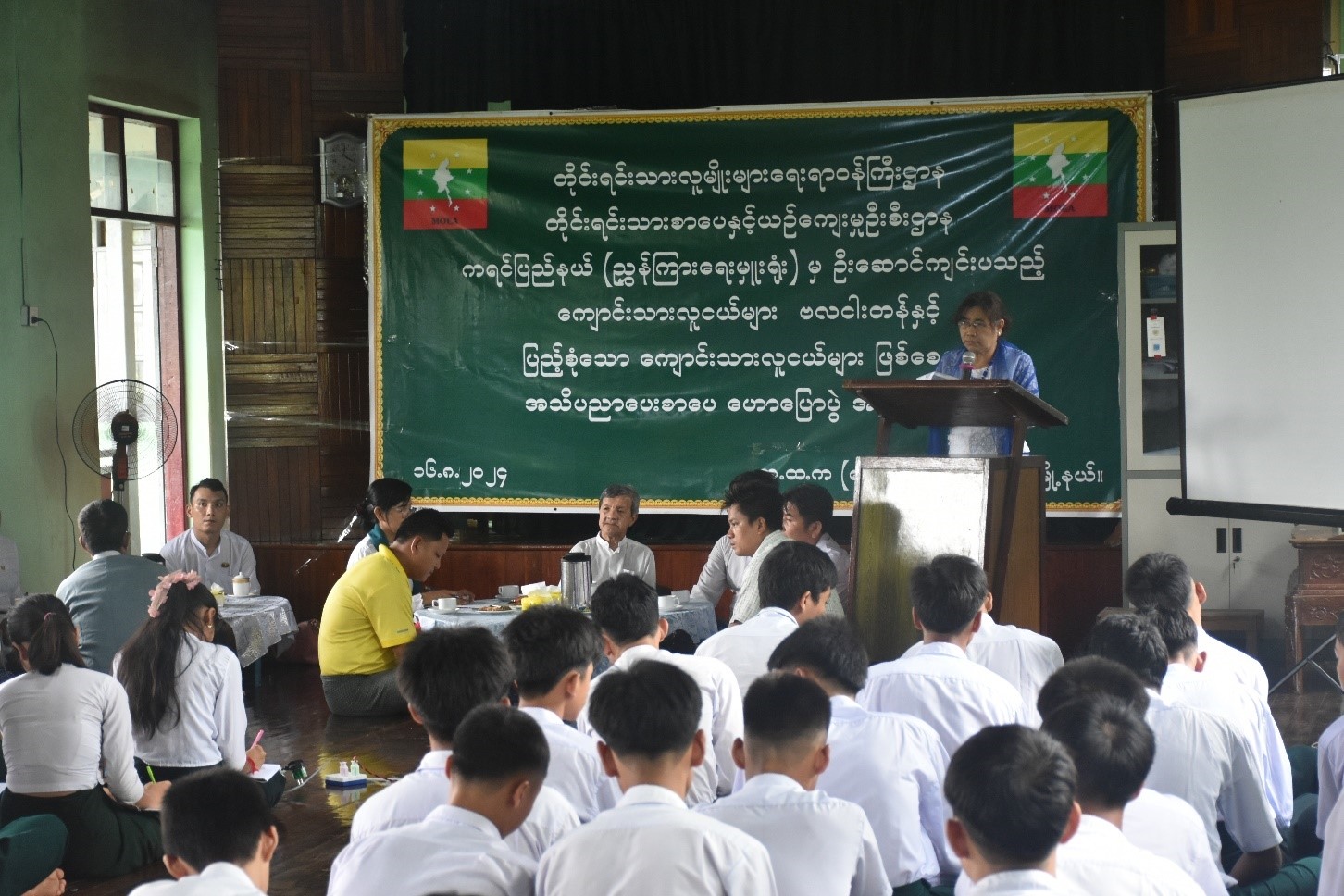 တိုင်းရင်းသားလူမျိုးများရေးရာဝန်ကြီးဌာန၊ တိုင်းရင်းသားအခွင့်အရေးများကာကွယ်စောင့် ရှောက်ရေးဦးစီးဌာန၊ မွန်ပြည်နယ်၊ ညွှန်ကြားရေးမှူးရုံးမှ ဦးဆောင်ကျင်းပပြုလုပ်သော “ တိုင်းရင်း သားရေးရာအသိပညာပေးဟောပြောခြင်းနှင့် ရပ်ရွာအခြေပြုအသက်မွေးဝမ်းကျောင်းပညာလိုအပ်ချက်တို့ကို ဆန်းစစ်စီမံခြင်းအခမ်းအနား” ကို (၁၂-၆-၂၀၂၄) ရက်နေ့ နံနက် (၀၉:၀၀) နာရီအချိန် တွင် မွန်ပြည်နယ်၊ မော်လမြိုင်မြို့နယ်၊ မင်းရွာကျေးရွာ၊ တိုင်းရင်းသားလူမျိုးများရေးရာဝန်ကြီး ဌာန၊ ညွှန်ကြားရေးမှူးရုံး၊ အစည်းအဝေးခန်းမ၌ ကျင်းပပြုလုပ်ခဲ့ရာ အခမ်းအနားသို့ မွန်ပြည်နယ် အစိုးရအဖွဲ့ဝင် တိုင်းရင်းသားရေးရာဝန်ကြီး ဦးခင်မောင်ဦး၊ ပြည်နယ်/ မြို့နယ်အဆင့် ဌာနဆိုင်ရာ ဝန်ထမ်းများ၊ မင်းရွာကျေးရွာအုပ်ချုပ်ရေးမှူးနှင့်အဖွဲ့ဝင်များ၊ ဒေသခံတိုင်းရင်းသားများ တက်ရောက်ခဲ့ ပါသည်။အခမ်းအနားတွင် မွန်ပြည်နယ်အစိုးရအဖွဲ့ဝင် တိုင်းရင်းသားရေးရာဝန်ကြီး ဦးခင်မောင်ဦးမှ အဖွင့်အမှာစကားပြောကြားခဲ့ပါသည်။ ဆက်လက်၍ တိုင်းရင်းသားအခွင့်အရေးများကာကွယ်စောင့် ရှောက်ရေးဦးစီးဌာန၊ မွန်ပြည်နယ် ညွှန်ကြားရေးမှူးရုံးမှ လက်ထောက်ညွှန်ကြားရေးမှူး ဒေါ်လေးလေးနွယ်က တိုင်းရင်းသားလူမျိုးများရေးရာဝန်ကြီးဌာန၏ လုပ်ငန်းဆောင်ရွက်မှုများ၊ အမုန်းစကားနှင့် အကြမ်းဖက်မှု ဖြစ်စေရန် လှုံ့ဆော်မှုကို တားဆီးခြင်းဆိုင်ရာ အသိပညာပေးကိစ္စ ရပ်များအားလည်းကောင်း၊ ဦးစီးအရာရှိ ဒေါ်ဌေးမို့မို့က တိုင်းရင်းသားလူမျိုးများ၏ အခွင့်အရေးကာကွယ်စောင့်ရှောက်သည့် ဥပဒေ ၊ နည်းဥပဒေများတွင် ပြဋ္ဌာန်းထားရှိသည့် တိုင်းရင်းသားအခွင့် အရေးဆိုင်ရာကိစ္စရပ်များ၊ လူမျိုးပြုန်းတီးမှု တားဆီးရေးနှင့် ပြစ်ဒဏ်ပေးရေး နိုင်ငံတကာ သဘော တူစာချုပ်ကို လိုက်နာဆောင်ရွက်ရေးနှင့် စပ်လျဉ်းသည့် အသိပညာပေးကိစ္စရပ်များကို လည်းကောင်း၊ တိုင်းရင်းသားစာပေနှင့်ယဉ်ကျေးမှုဦးစီးဌာန၊ မွန်ပြည်နယ်၊ ညွှန်ကြားရေးမှူးရုံးမှ ဦးစီးအရာရှိ ဒေါ်တင်မမမျိုးက အခြေခံပညာကျောင်းများတွင် တိုင်းရင်းသားစာပေသင်ကြားသည့် ဆရာ၊ ဆရာမ ခန့်ထားခြင်းဆိုင်ရာ ကိစ္စရပ်များကိုလည်းကောင်း၊ မော်လမြိုင်ခရိုင် လူဝင်မှုကြီး ကြပ်ရေးနှင့်ပြည်သူ့အင်အားဝန်ကြီးဌာနမှ ဒုတိယညွှန်ကြားရေးမှူး ဦးသန်းအေးက နိုင်ငံသား အခွင့်အရေးနှင့် တိုင်းရင်းသားလူမျိုးများ၏ အမည်ရှေ့တွင် ဝိသေသရှေ့ဆောင်စကားလုံးများ ပါဝင်ရေးသွင်းနိုင်ရေး ကိစ္စရပ်များကိုလည်းကောင်း၊ မွန်ပြည်နယ် လူမှုဝန်ထမ်းဦးစီးဌာနမှ လက်ထောက်ညွှန်ကြားရေးမှူး ဒေါ်ဝင်းဝင်းမာက အမျိုးသမီး အခွင့်အရေး၊ မသန်စွမ်းအခွင့်အရေး ၊ ကလေးသူငယ်အခွင့်အရေး၊ လူငယ