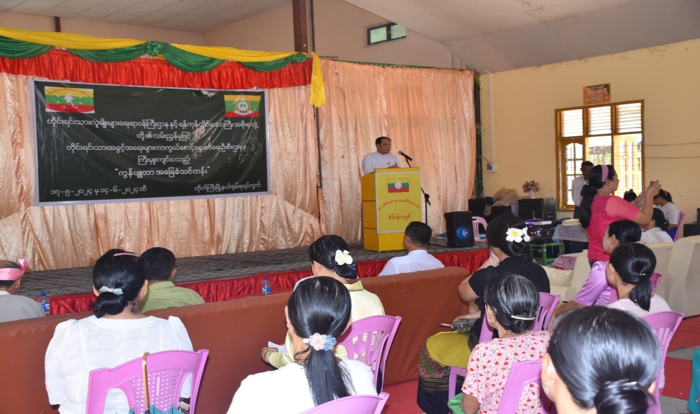တိုင်းရင်းသားအခွင့်အရေးများကာကွယ်စောင့်ရှောက်ရေးဦးစီးဌာန၊ ရန်ကုန်တိုင်းဒေသကြီး၊ ညွှန်ကြားရေးမှူးရုံးမှ ဦီးစီး၍ “တိုင်းရင်းသားရေးရာအသိပညာပေးဟောပြောပွဲနှင့် ရပ်ရွာအခြေပြု အသက်မွေးဝမ်းကျောင်းပညာလိုအပ်ချက်တို့ကိုဆန်းစစ်စီမံခြင်း” အစီအစဉ်ကို (၂၀-၅-၂၀၂၄) ရက်နေ့တွင် ကွမ်းခြံကုန်းမြို့နယ်၊ ထင်းပုံကျေးရွာ၊ ကရင်စာပေနှင့် ယဉ်ကျေးမှုရုံးတွင် ကျင်းပ ပြုလုပ်ခဲ့ပါသည်။ အခမ်းအနားတွင် တိုင်းရင်းသားအခွင့်အရေးများကာကွယ်စောင့်ရှောက်ရေးဦးစီးဌာနမှ ညွှန်ကြားရေးမှူး၊ ဒေါ်ဖြူဖြူဝင်းက တိုင်းရင်းသားလူမျိုးများရေးရာဝန်ကြီးဌာနအကြောင်း တိုင်းရင်းသားလူမျိုးများ၏အခွင့်အရေးကာကွယ်စောင့်ရှောက်သည့်ဥပဒေ၊ နည်းဥပဒေများအကြောင်း၊ ရပ်ရွာအခြေပြု အသက်မွေးဝမ်း ကျောင်းပညာလိုအပ်ချက် စစ်တမ်းကောက်ယူရခြင်း အကြောင်း အရာများကိုလည်းကောင်း၊ လူဝင်မှုကြီးကြပ်ရေးနှင့် ပြည်သူ့အင်အားဦးစီးဌာန၊ မြို့နယ်ဦးစီးမှူး ဦးကျော်သူရက လူဝင်မှုကြီးကြပ်ရေးဦးစီးဌာန၏ လုပ်ငန်းဆောင်ရွက်နေမှုအခြေအနေများ၊ နိုင်ငံသားစိစစ်ရေးကဒ်ပြားနှင့် အိမ်ထောင်စုဇယား ဆောင်ရွက်ရန်လိုအပ်မှုအခြေအနေ၊ ပန်းခင်း စီမံချက်ဆောင်ရွက်မှုအခြေအနေ၊ တိုင်းရင်းသားလူငယ်များ ကျောင်းစတင်အပ်နှံချိန်မှစ၍ မိမိတို့ လူမျိုးများ၏ ဝိသေသရှေ့ဆောင်စကားလုံးများ ပါဝင်ထည့်သွင်း၍ ကျောင်းအမည်စာရင်းသွင်းရန် အကြောင်းတို့ကို လည်းကောင်း၊ လူမှုဝန်ထမ်းဦးစီးဌာန၊ ဦးစီးအရာရှိ ဒေါ်အေးအိအိအောင်က အမျိုးသမီးများအခွင့်အရေး၊ လူငယ်ရေးရာမူဝါဒများ၊ လူမှုရေးပင်စင်အကြောင်းတို့ကိုလည်းကောင်း၊ သမဝါယမဦးစီးဌာန၊ မြို့နယ်ဦးစီးမှူး ဒေါ်စန်းအိမွန်က သမဝါယမဝန်ကြီးဌာန၏ သမဝါယမ အကြောင်း သိကောင်းစရာများကို လည်းကောင်း၊ ပတ်ဝန်းကျင်ထိန်းသိမ်းရေးဦးစီးဌာန၊ ဦးစီးအရာရှိ ဒေါ်ဥမ္မာလင်းက ပတ်ဝန်းကျင်ထိန်းသိမ်းရေးဦးစီးဌာန၏ လုပ်ငန်းစဉ်များအားလည်းကောင်း၊ တိုင်းရင်းသားစာပေနှင့် ယဉ်ကျေးမှုဦးစီးဌာန၊ ဦးစီးအရာရှိ ဦးသန့်ဇော်ထွန်းက ပုံပြပုံပြင်စာအုပ် ထုတ်ဝေပေးမှုနှင့် တိုင်းရင်းသားစာပေနှင့် ယဉ်ကျေးမှုအကြောင်း၊ Teaching Assistant (TA)နှင့် Language Teacher (LT) များခန့်အပ်ထားမှုကိစ္စများအကြောင်းတို့ကို လည်းကောင်း ရှင်းလင်းပြောကြားခဲ့ပါသည်။ဆက်လက်၍ တိုင်းရင်းသားအခွင့်အရေးများကာကွယ်စောင့်ရှောက်ရေးဦးစီးဌာနမှ ဝန်ထမ်းများက ရပ်ရွာအခြေပြု အသက်မွေးဝမ်းကျောင်းပညာလိုအပ်မှုဆန်းစစ်ချက် စစ်တမ်းမေးခွန်းလွှာများအား ရှင်းလင်းခြင်းနှင့် စစ်တမ်းကောက်ယူခြင်းတို့ကို ဆောင်ရွက်ခဲ့ရာ တက်ရောက်လာကြသူ (၆၀)ဦး ဖြေဆိုခဲ့ကြပါသည်။ အခမ်းအနားသို့ ကရင်စာပေနှင့် ယဉ်ကျေးမှုအသင်းမှ 
