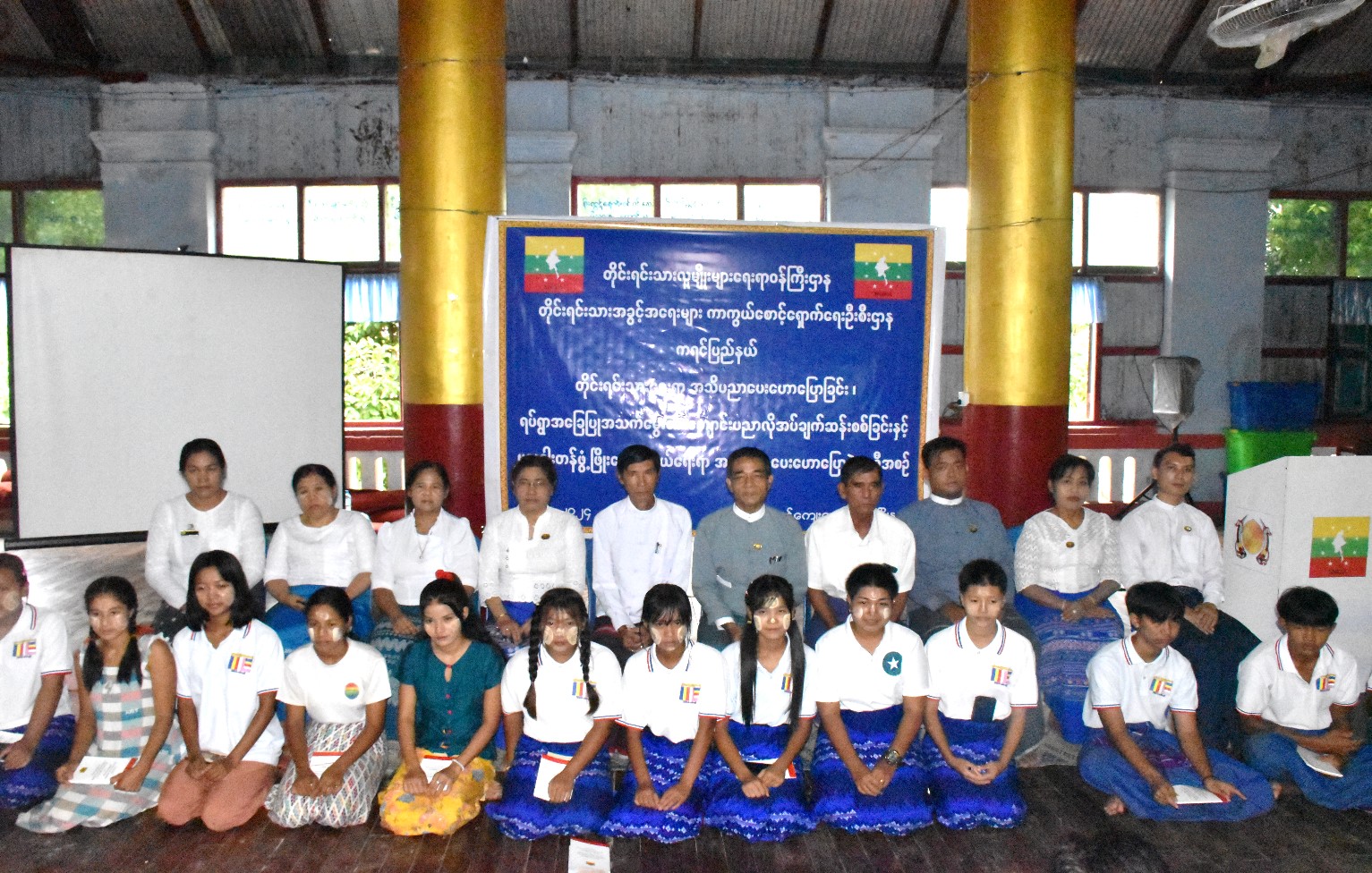တိုင်းရင်းသားအခွင့်အရေးများကာကွယ်စောင့်ရှောက်ရေးဦးစီးဌာန၊ ကရင်ပြည်နယ်၊ ညွှန်ကြား ရေးမှူးရုံးမှဦးစီး၍ “တိုင်းရင်းသားရေးရာအသိပညာပေးဟောပြောခြင်း၊ ရပ်ရွာအခြေပြု အသက်မွေးဝမ်း ကျောင်းပညာလိုအပ်ချက်တို့ကိုဆန်းစစ်စီမံခြင်းနှင့် ဗလငါးတန်ဖွံ့ဖြိုးစေရေးလူငယ်ရေးရာ အသိပညာ ပေးဟောပြောပွဲအခမ်းအနား” ကို (၂၇.၅.၂၀၂၄) ရက်နေ့တွင် ကရင်ပြည်နယ်၊ ဘားအံမြို့၊ ဝင်းကျန် ကျေးရွာ၊ ရွာလယ်ဘုန်းတော်ကြီးကျောင်း၌ ကျင်းပပြုလုပ်ခဲ့ပါသည်။အခမ်းအနားတွင် တိုင်းရင်းသားအခွင့်အရေးများကာကွယ်စောင့်ရှောက်ရေးဦးစီးဌာနမှ ညွှန်ကြားရေးမှူး ဦးကျော်စိုးက အဖွင့်အမှာစကားပြောကြားခဲ့ပြီး တိုင်းရင်းသားလူမျိုးများ၏ အခွင့်အရေး ကာကွယ်စောင့်ရှောက်သည့် ဥပဒေ/ နည်းဥပဒေများနှင့် ဦးစီးဌာန၏ ဆောင်ရွက်နေမှုလုပ်ငန်းများနှင့် ရှေ့ဆောင်ရွက်မည့်လုပ်ငန်းဆိုင်ရာကိစ္စရပ်များအား ရှင်းလင်းပြောကြားခဲ့ပါသည်။ထို့နောက် တိုင်းရင်းသားစာပေနှင့် ယဉ်ကျေးမှုဦးစီးဌာန၊ ကရင်ပြည်နယ်၊ ညွှန်ကြားရေးမှူးရုံးမှ ညွှန်ကြားရေးမှူး ဒေါ်ရီရီဝင်းက တိုင်းရင်းသားဘာသာသင် ဆရာ/ ဆရာမ Teacher Assistant (TA)နှင့် Language Teacher (LA) များ ခန့်ထားမှုကိစ္စများ၊ ဦးစီးဌာန၏ ဆောင်ရွက်နေမှုလုပ်ငန်းများနှင့် ရှေ့ဆောင်ရွက်မည့်လုပ်ငန်းဆိုင်ရာကိစ္စရပ်များအားလည်းကောင်း၊ ပြန်ကြားရေးနှင့်ပြည်သူ့ဆက်ဆံရေး ဦးစီးဌာနမှ ဒုတိယညွှန်ကြားရေးမှူး ဒေါ်တင်တင်ဦးက ဗလငါးတန် ဖွံ့ဖြိုးစေရေး လူငယ်ရေးရာကိစ္စ ရပ်များ၊ စာပေဖတ်ရှုခြင်းနှင့်လူငယ်၊ စာရိတ္တနှင့်လူငယ် စသည့်ခေါင်းစဉ်များဖြင့်လည်းကောင်း၊ ဘားအံ မြို့နယ်စီမံအုပ်ချုပ်ရေးအဖွဲ့မှ အဖွဲ့ဝင် (၂) ဦးဝင်းတင်က ကျေးလက်ဒေသန္တရဖွံ့ဖြိုးရေးဆိုင်ရာကိစ္စရပ် များ၊ တိုင်းရင်းသားလူငယ်များ၏ ပညာရေးကဏ္ဍဖွံ့ဖြိုးစေရေး ကိစ္စရပ်များအားလည်းကောင်း၊ လူမှု ဝန်ထမ်းဦးစီးဌာနမှ ဦးစီးအရာရှိ ဒေါ်စောဥမ္မာက ကလေးသူငယ်အခွင့်အရေး၊ အမျိုးသမီးအခွင့်အရေး၊ မသန်စွမ်းအခွင့်အရေး၊ လူမှုရေးပင်စင်များ၊ ကလေးအလုပ်သမားပပျောက်ရေးဆိုင်ရာကိစ္စရပ်များအား လည်းကောင်း၊ ပတ်ဝန်းကျင်ထိန်းသိမ်းရေးဦးစီးဌာနမှ ဦးစီးအရာရှိ ဒေါ်နှင်းအိက ပတ်ဝန်းကျင်စီမံ ခန့်ခွဲမှုနှင့် ရာသီဥတုပြောင်းလဲမှုဆိုင်ရာကိစ္စရပ်များ၊ သဲကန္တာရဖြစ်ထွန်းရသည့် အကြောင်းတို့ကို လည်းကောင်း ရှင်းလင်းပြောကြားခဲ့ပါသည်။ဆက်လက်၍ အားကစားနှင့် ကာယပညာဦးစီးဌာနမှ ဦးစီးအရာရှိ ဒေါ်နော်သြလျဖော် က လူငယ်နှင့် အားကစား၊ အားကစားနှင့် ကျန်းမာရေးဆိုင်ရာကိစ္စရပ်များအားလည်းကောင်း၊ တိုင်းရင်းသား အခွင့်အရေးများကာကွယ်စောင့်ရှောက်ရေးဦးစီးဌာနမှ ဦးစီးအရာရှိ ဦးဝေယံထက်က တိုင်းရင်းသား လူ