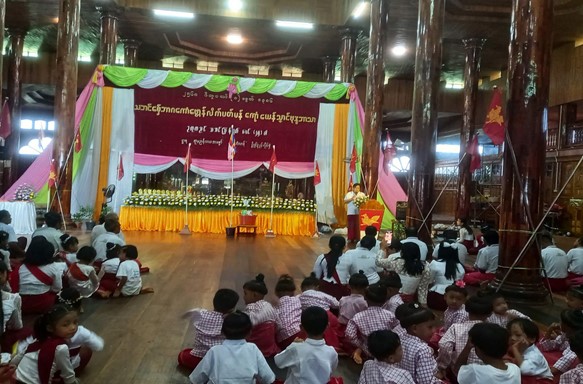 မွန်စာပေနှင့်ယဉ်ကျေးမှုသင်တန်းဆုပေးပွဲ အခမ်းအနားကို (၃၀.၅.၂၀၂၄)ရက်နေ့၊ နေ့လည်ပိုင်းတွင် ကရင်ပြည်နယ် လှိုင်းဘွဲမြို့နယ်၊ ဒေါ်လန်းကျွန်းကျေးရွာ၌ ကျင်းပပြုလုပ်ခဲ့ရာ တိုင်းရင်းသားစာပေနှင့်ယဉ်ကျေးမှုဦးစီးဌာန၊ ညွှန်ကြားရေးမှူးရုံး (ကရင်ပြည်နယ်)မှ တာဝန်ခံအရာရှိ ဒေါ်ရီရီဝင်းနှင့် အရာထမ်းများ တက်ရောက်ခဲ့ပါသည်။ အခမ်းအနားတွင် တိုင်းရင်းသားစာပေနှင့်ယဉ်ကျေးမှုဦးစီးဌာန၊ ညွှန်ကြားရေးမှူးရုံး (ကရင်ပြည်နယ်)မှ တာဝန်ခံအရာရှိ ဒေါ်ရီရီဝင်းမှ အဖွင့်အမှာစကားပြောကြားရာတွင် မွန်စာပေနှင့်ယဉ်ကျေးမှုသင်တန်းသို့ တက်ရောက်လာသည့် သင်တန်းသား/ သူများအား မိမိတို့ရဲ့စာပေ ယဉ်ကျေးမှုဓလေ့ထုံးတမ်းများ တန်ဖိုးထားတတ်စေရန်၊ နယ်မြေဒေသအသီးသီးတွင် မွန်စာပေနှင့်ယဉ်ကျေးမှု ရေရှည်ဖွံ့ဖြိုးတိုးတက်စေရန်အတွက် မျိုးဆက်သစ်မွန်တိုင်းရင်းသား ကလေးငယ်များအား မိမိတို့စာပေ၊ ဘာသာစကား၊ ယဉ်ကျေးမှုဓလေ့ထုံးတမ်းများအား ချစ်မြတ်နိုးတန်ဖိုးထားတတ်စေရေး ဆောင်ရွက်ကြစေလိုကြောင်း ပြောကြားခဲ့ပြီး မွန်စာပေနှင့်ယဉ်ကျေးမှုသင်တန်း ဆုပေးပွဲအခမ်းအနားအတွက် ကရင်ပြည်နယ်အစိုးရအဖွဲ့၏ ကူညီထောက်ပံ့ငွေ ကျပ်သိန်း (၁၅၀)အား ပေးအပ်ချီးမြှင့်ခဲ့ပါသည်။ အခမ်းအနားကို စုစုပေါင်းလူဦးရေ(၁၈၀)ကျော် တက်ရောက်ခဲ့ပါသည်။