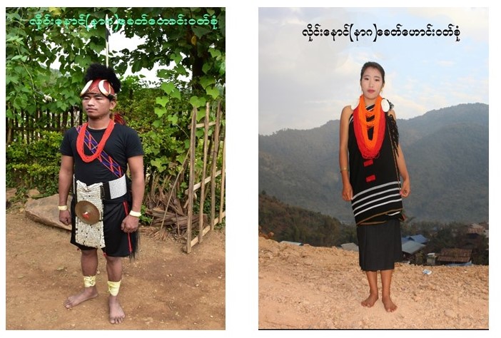 မိမိတို့ရိုးရာထုံးတမ်းစဉ်လာအရ ယောကျ်ားဝတ်ဆင်ပုံနှင့် မိန်းမ အဝတ်တန်ဆာ ဆင်ယင်ပုံရှိသည်။ ဓာတ်ပုံဖြင့်ပူးတွဲဖော်ပြပါသည်။