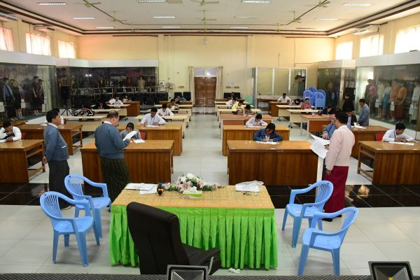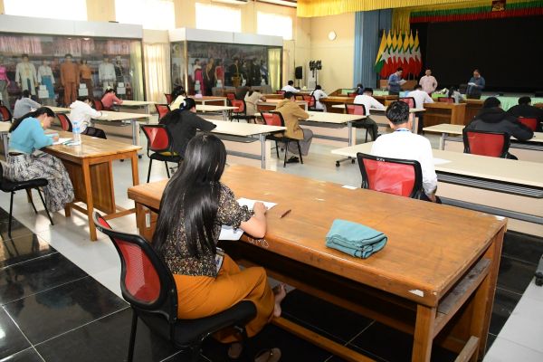 တိုင်းရင်းသားလူမျိုးများရေးရာဝန်ကြီးဌာန ဒုတိယဝန်ကြီး ဦးဇော်အေးမောင်၊ အမြဲတမ်းအတွင်းဝန်နှင့် ညွှန်ကြားရေးမှူးချုပ်တို့က ပြည်ထောင်စုဝန်ကြီးရုံးတွင် လစ်လပ်လျက်ရှိသည့် ဒုတိယဦးစီးမှူးအဆင့် ရာထူး (၁၁) နေရာအတွက် ရေးဖြေ စာမေးပွဲ ဖြေဆိုနေမှုအား ကြည့်ရှုစစ်ဆေးသည့် ဓာတ်ပုံမှတ်တမ်းများ